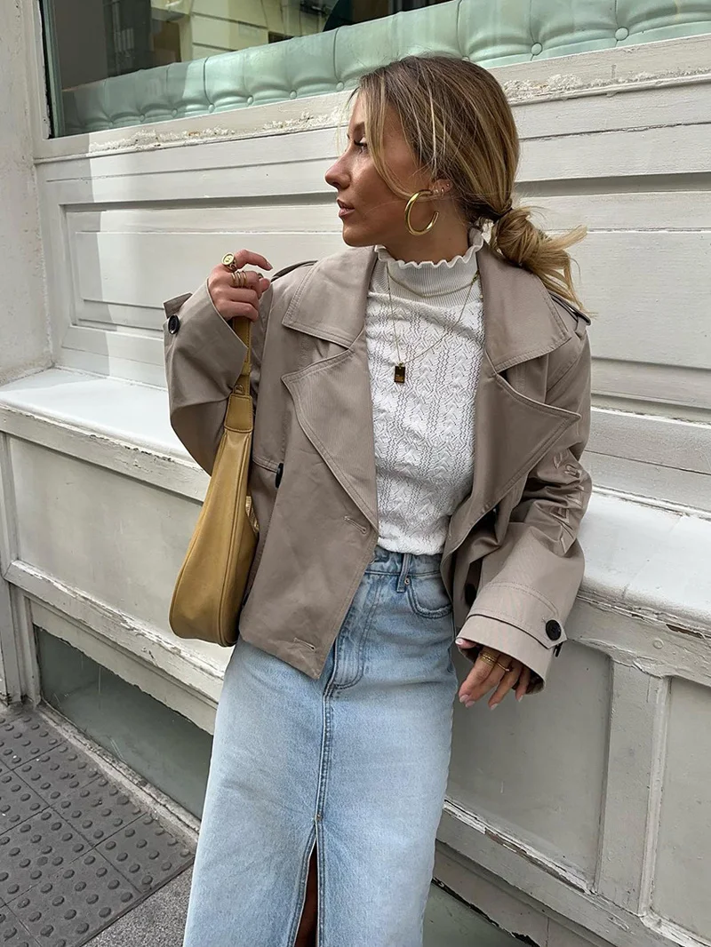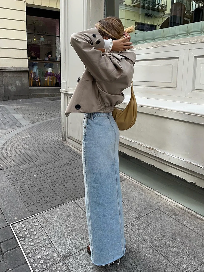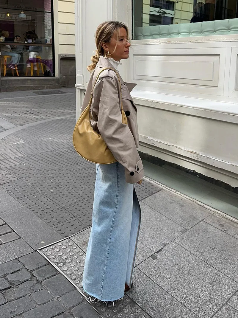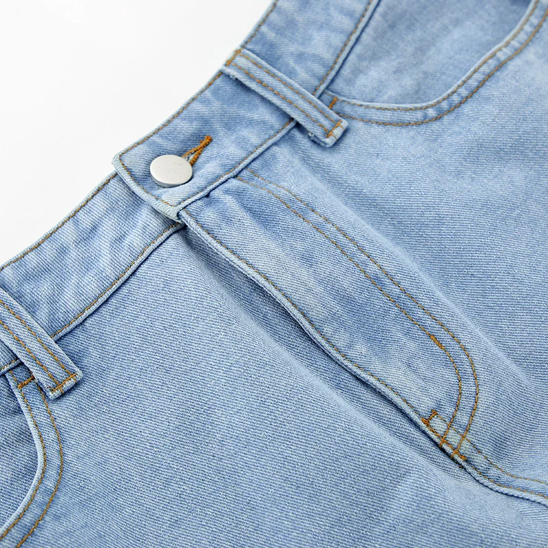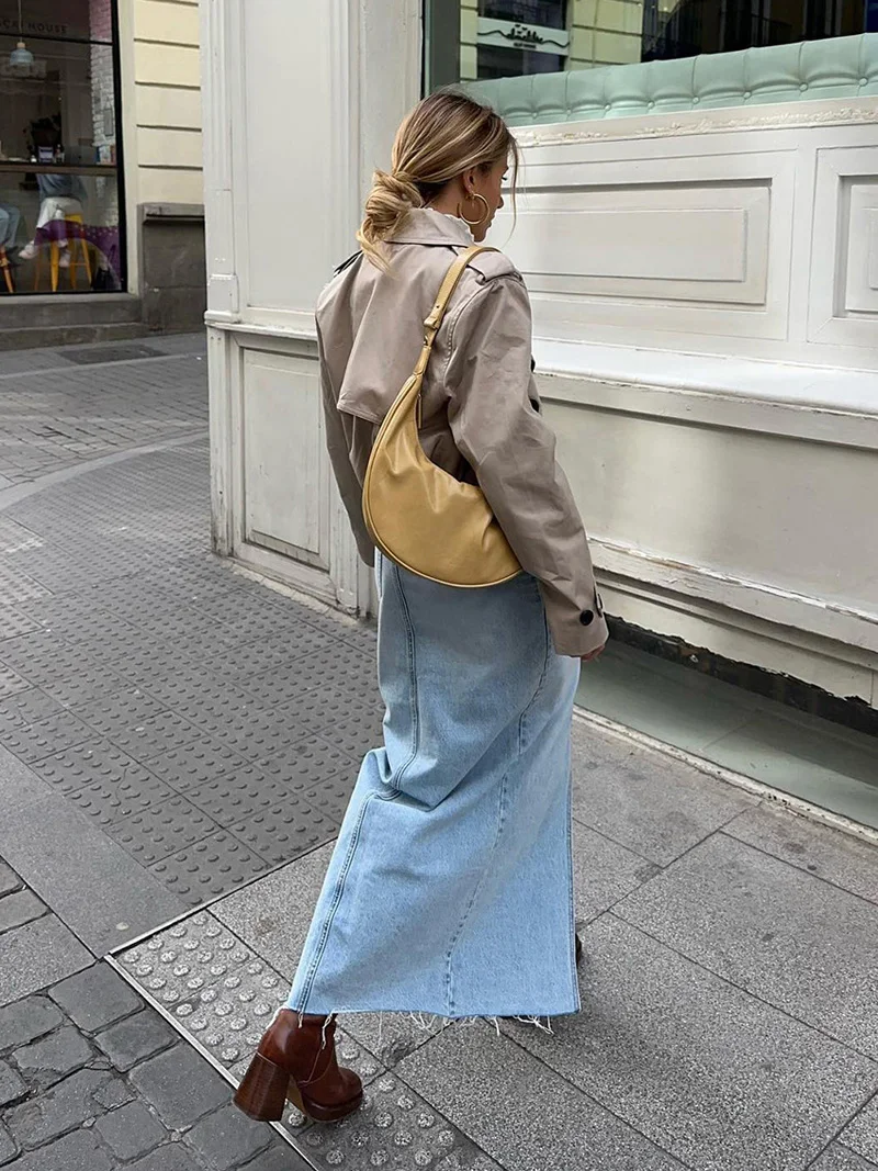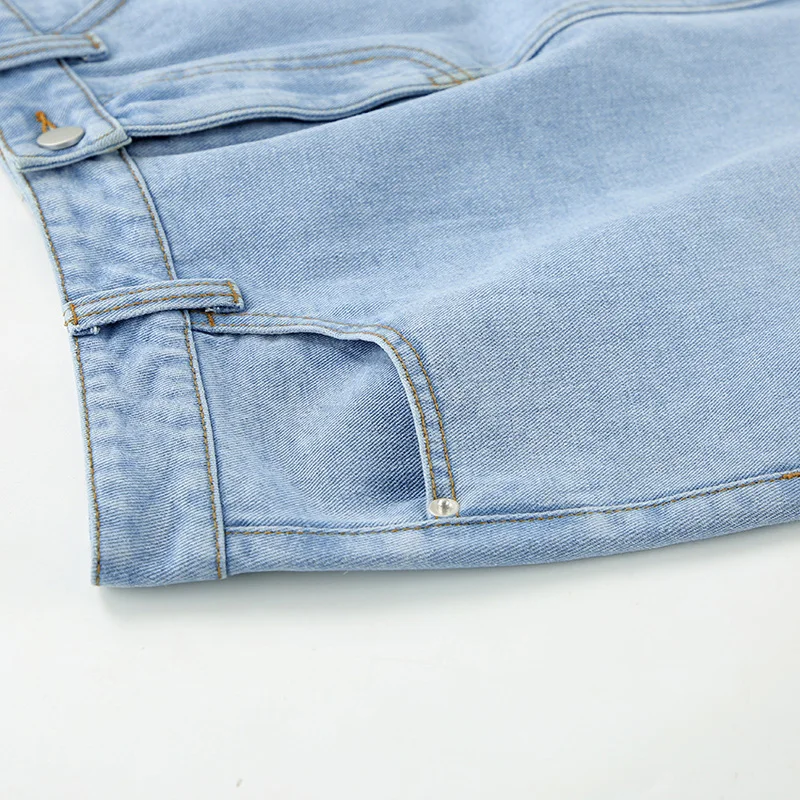MQTIME - Spring Summer Women High Waist Vintage Solid Straight Maxi Denim Skirt With Slit