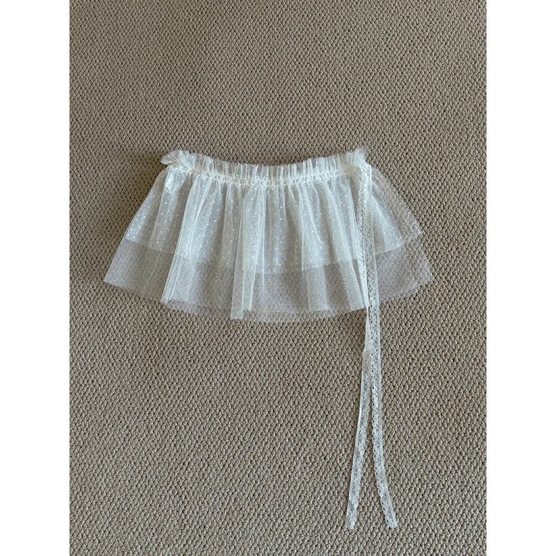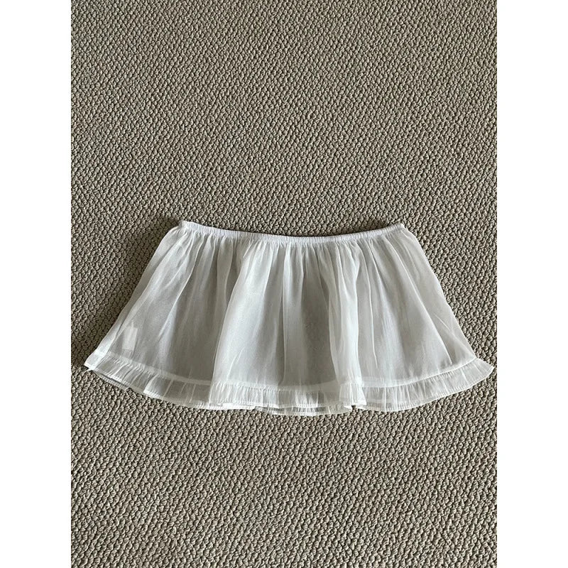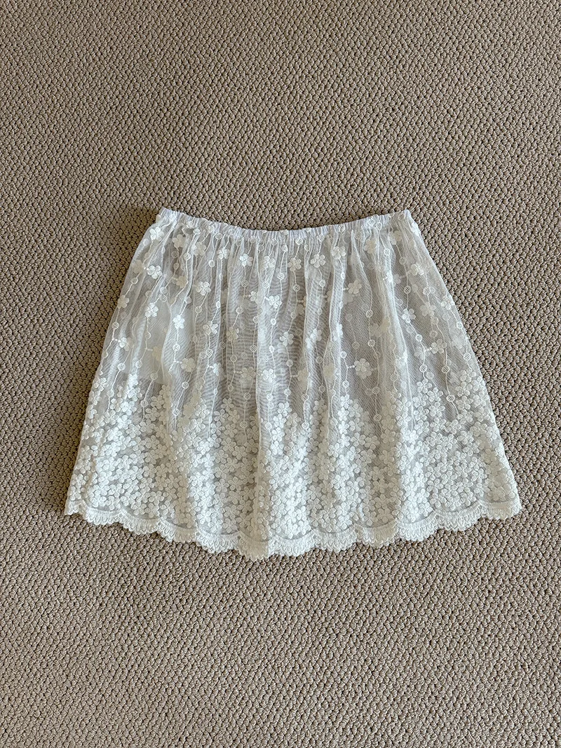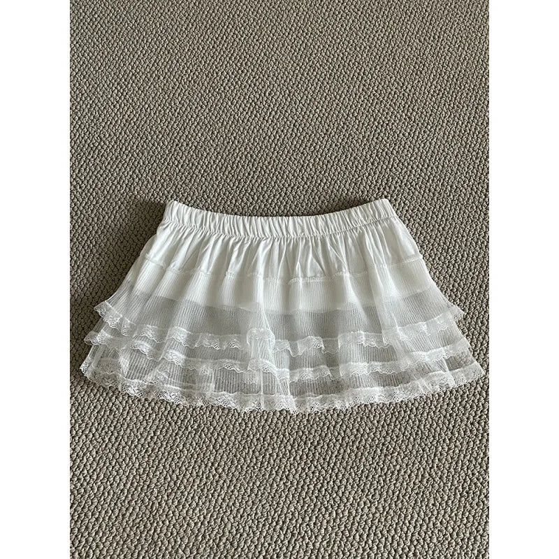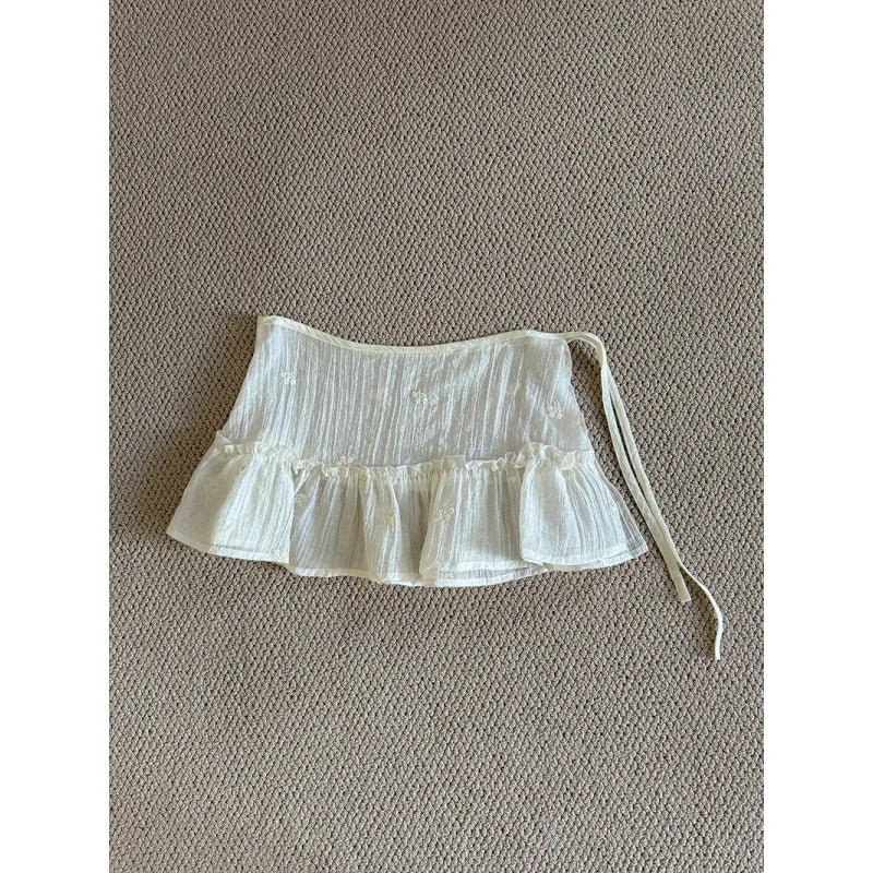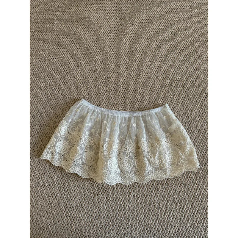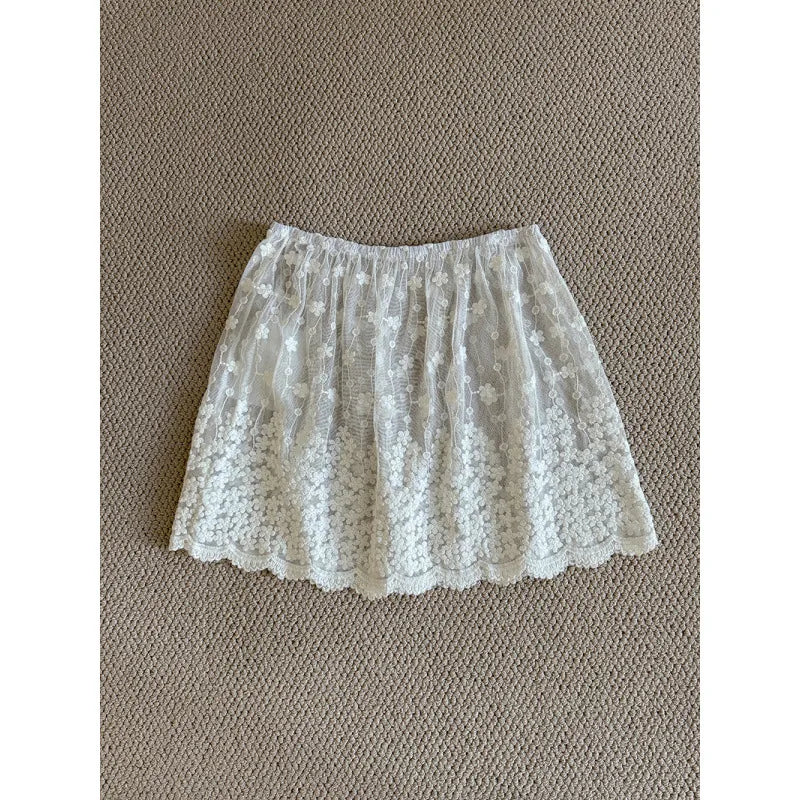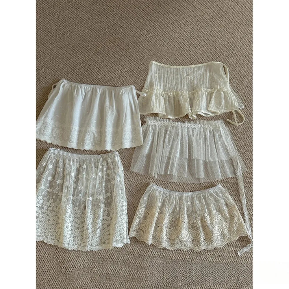 MQTIME - Spring Womens Lace Hollow Embroidery Floral Butt Curtain Skirt Fashionable Layered Over Skirt Casual Chiffon Mini Skirt