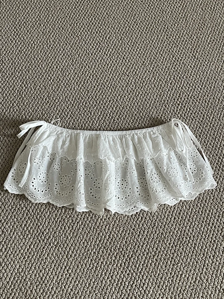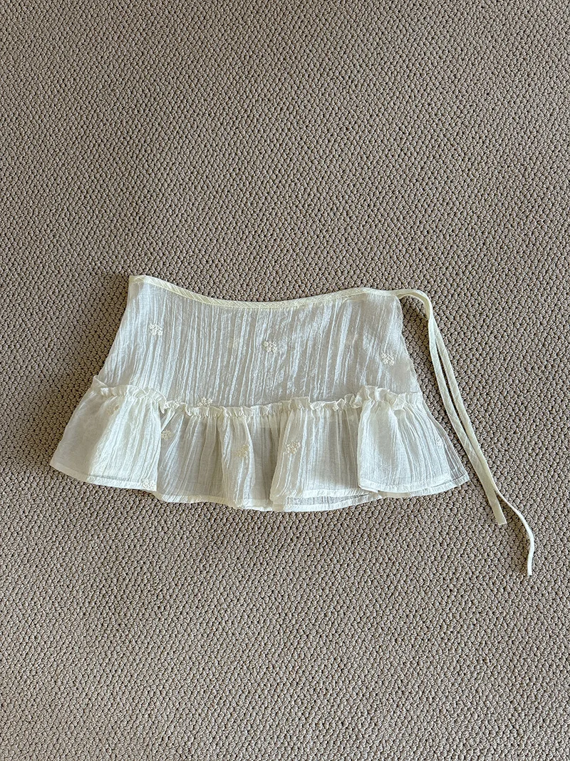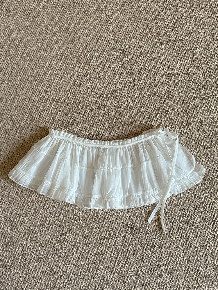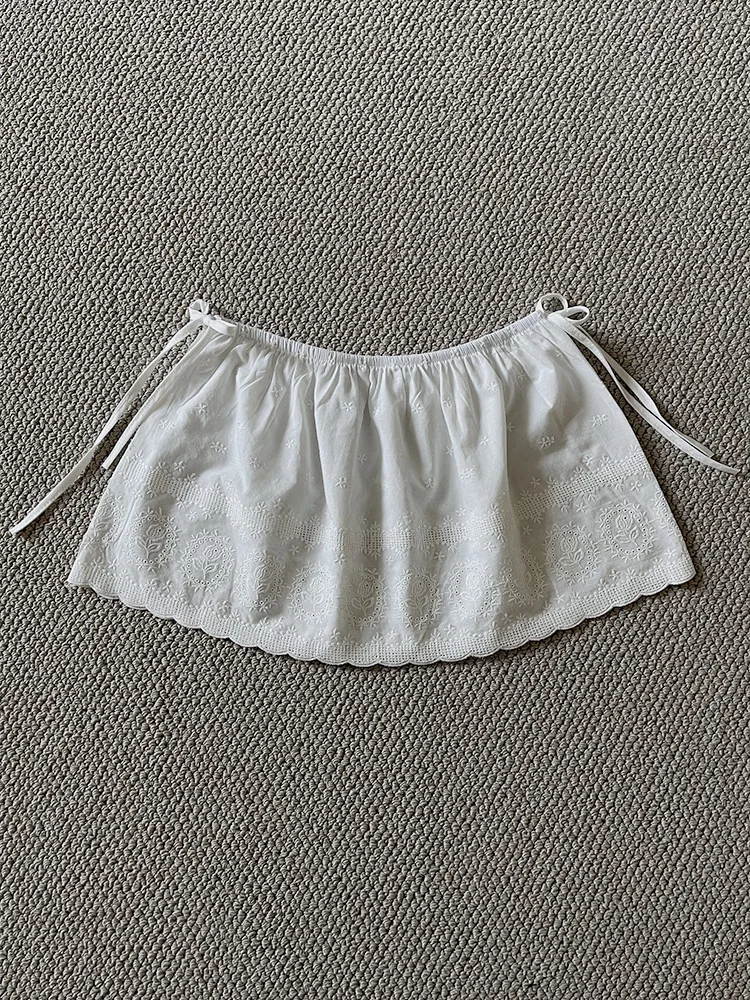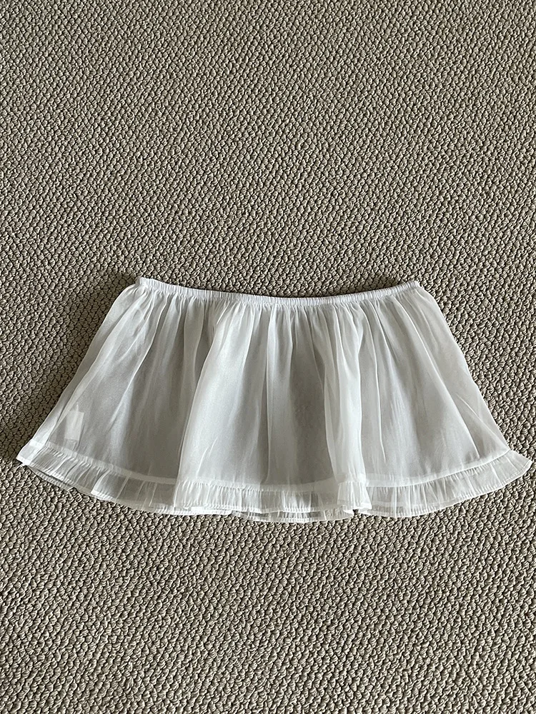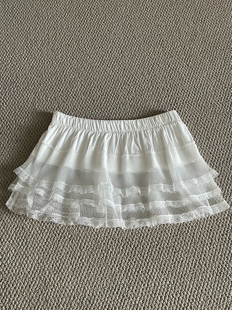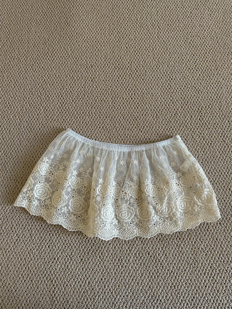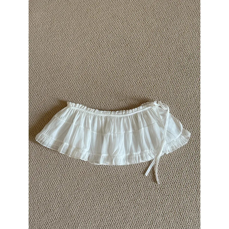 MQTIME - Spring Womens Lace Hollow Embroidery Floral Butt Curtain Skirt Fashionable Layered Over Skirt Casual Chiffon Mini Skirt