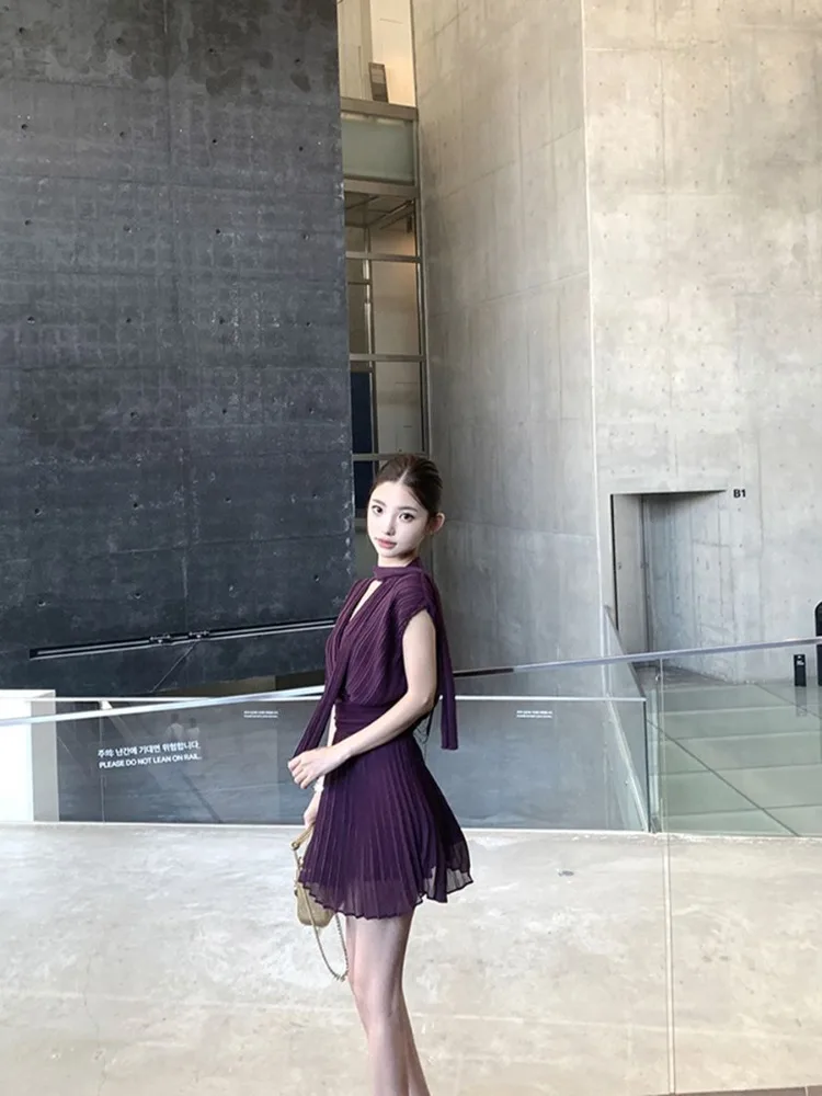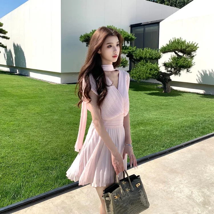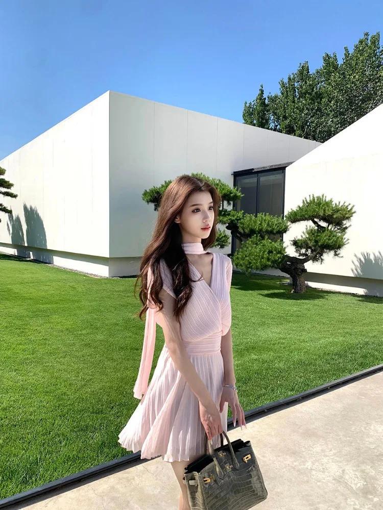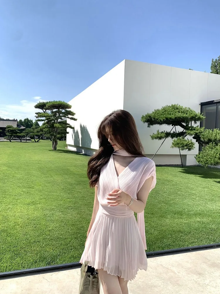 MQTIME - Streamer Greek Style Spice Girl Dress French Temperament Niche High Sense Simple Short Dresses Beautiful Vestido