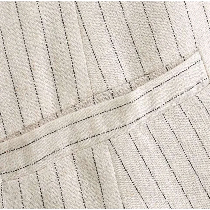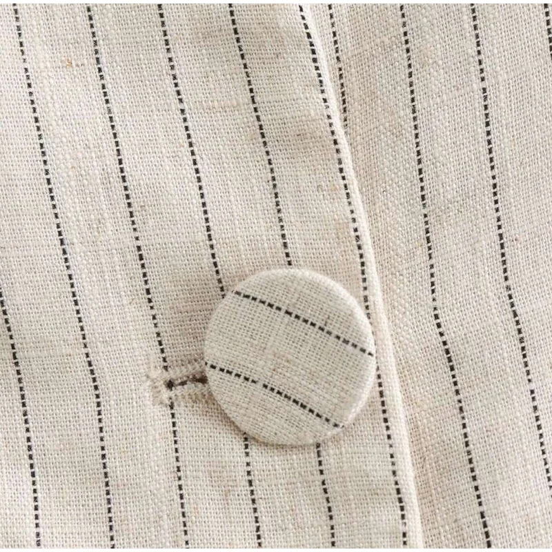MQTIME - Striped Sleeveless Vest Women Casual O-neck Slim Single-breasted Long Jackets Female Vintage Offiice Lady Top Fashion Streetwear