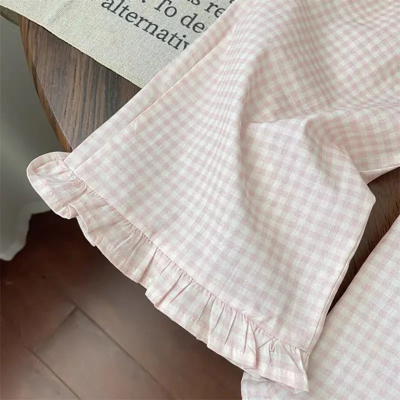 MQTIME - Summer 2025 Children Girl 2PCS Clothes Set Cotton Knotbow Short Sleeve Top For Baby Girl Pink Pink Wide Leg Pant Kid Girl Outfit
