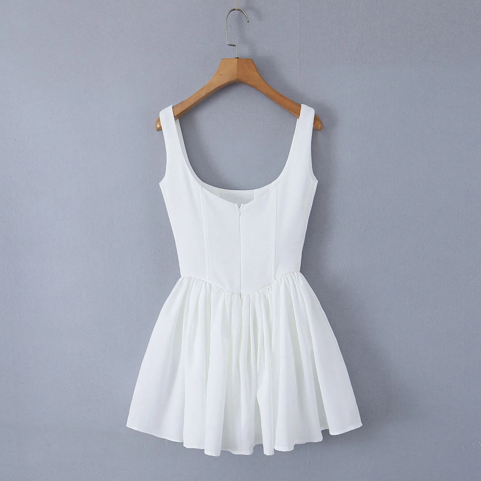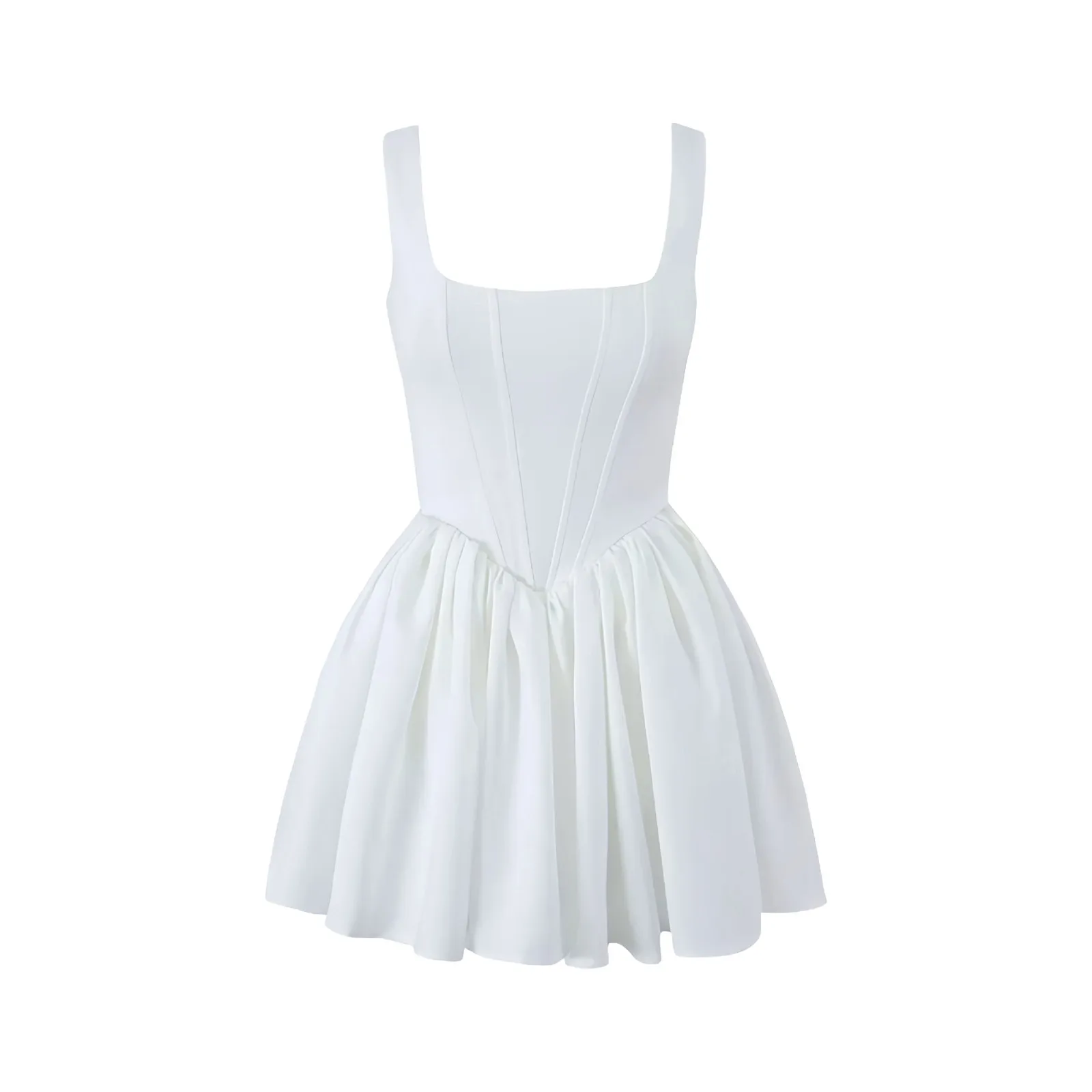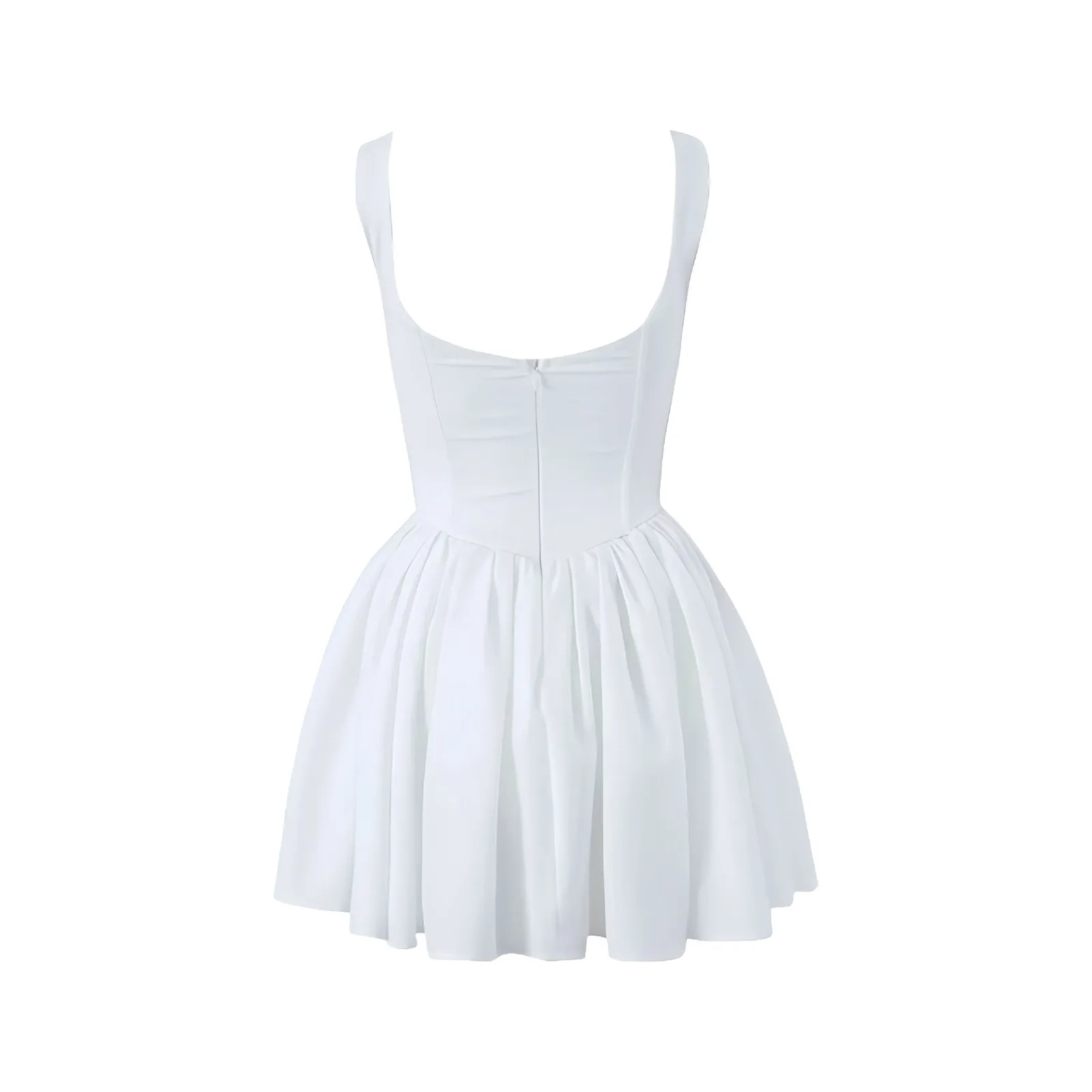 MQTIME - Summer Backless White Corset Fishbone Mini Dresses Women Sexy Tunic Waist Swing Birthday Dress Female Holiday Party Dresses