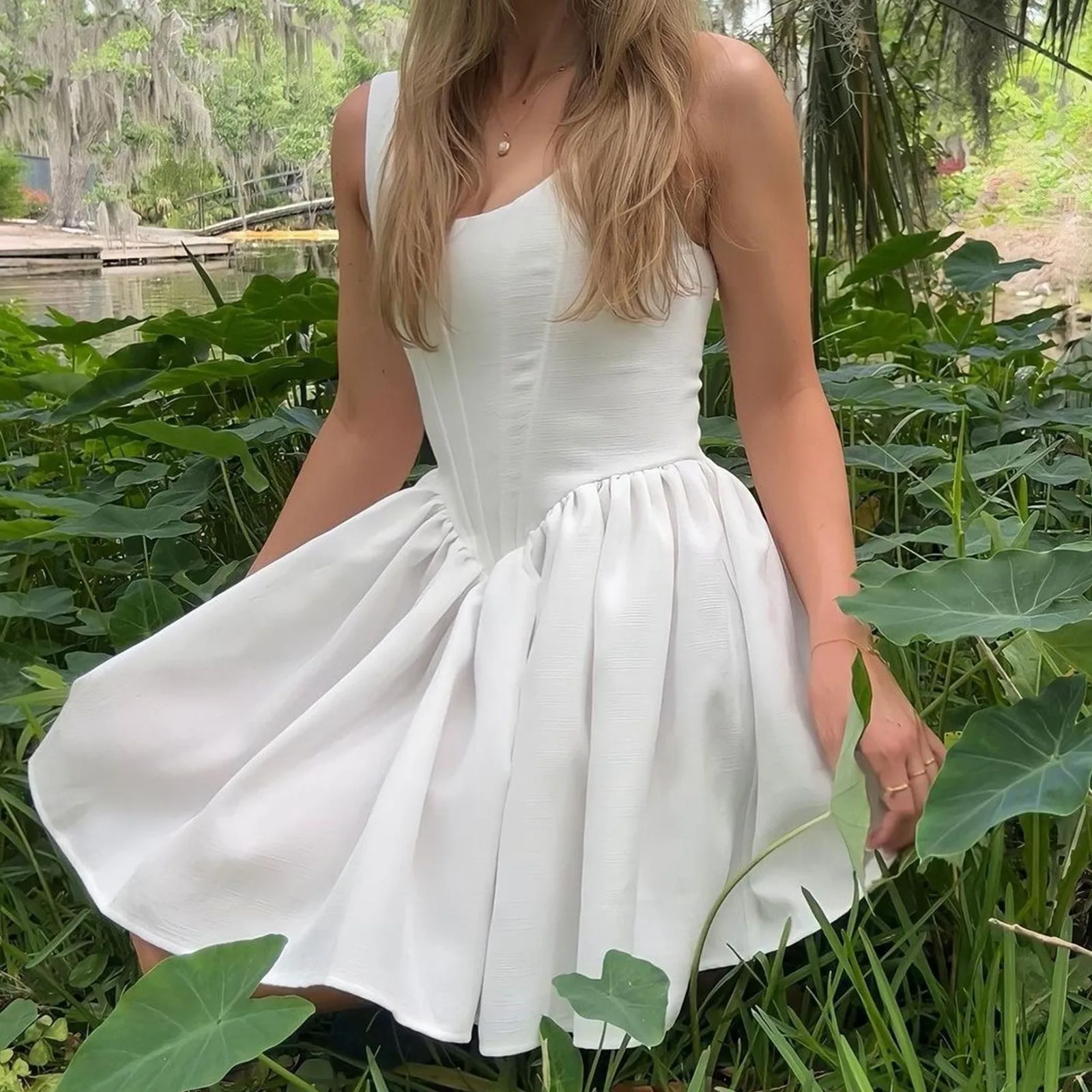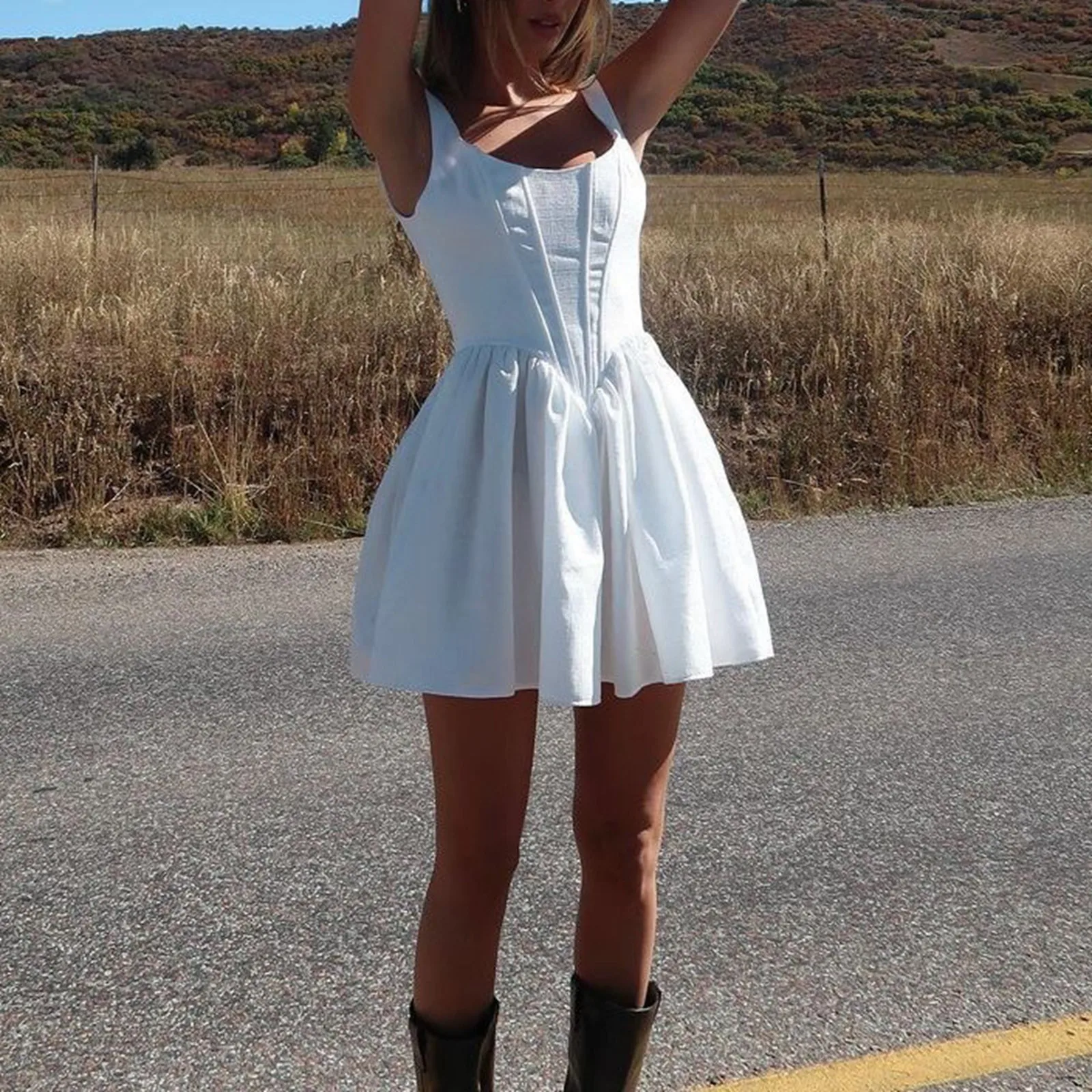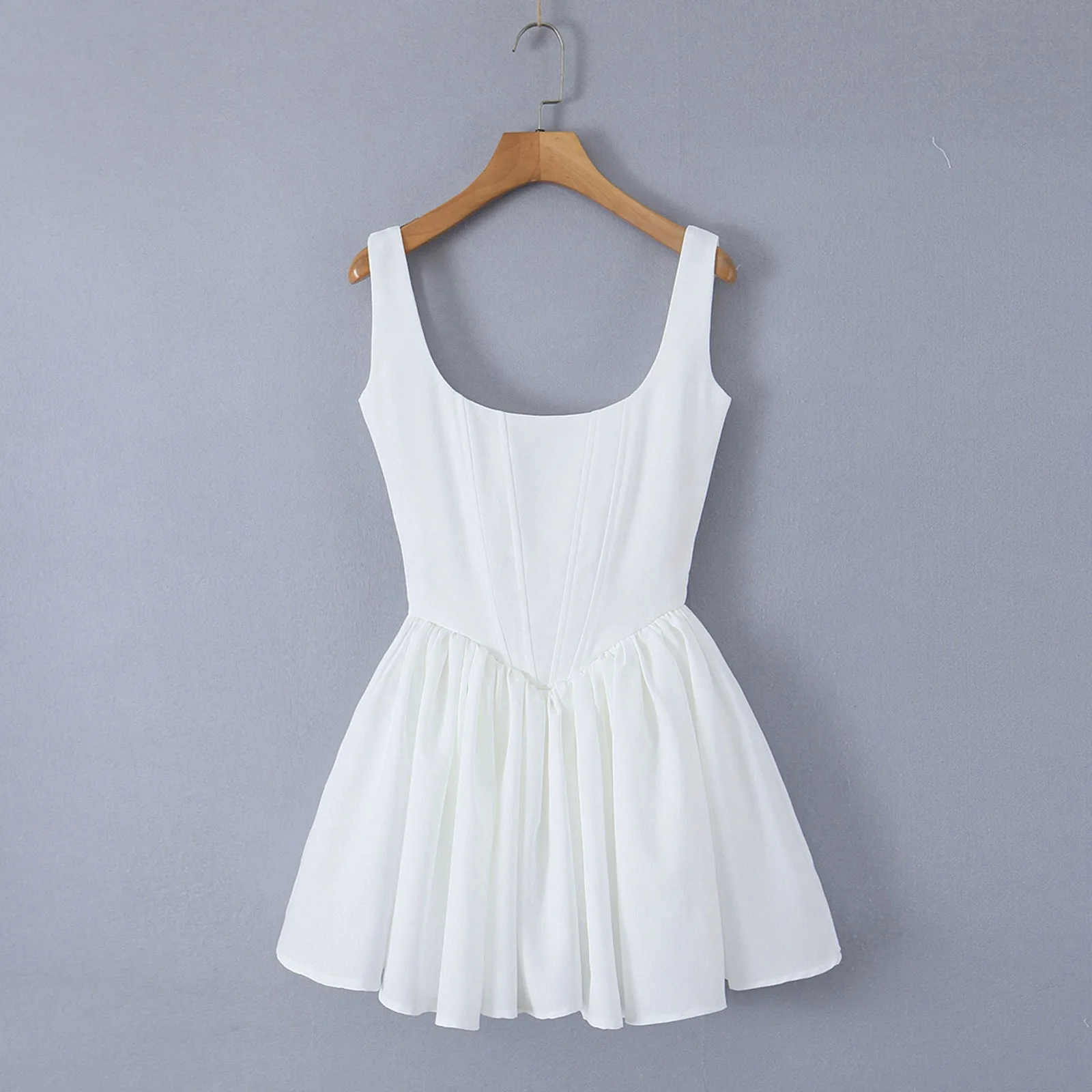 MQTIME - Summer Backless White Corset Fishbone Mini Dresses Women Sexy Tunic Waist Swing Birthday Dress Female Holiday Party Dresses