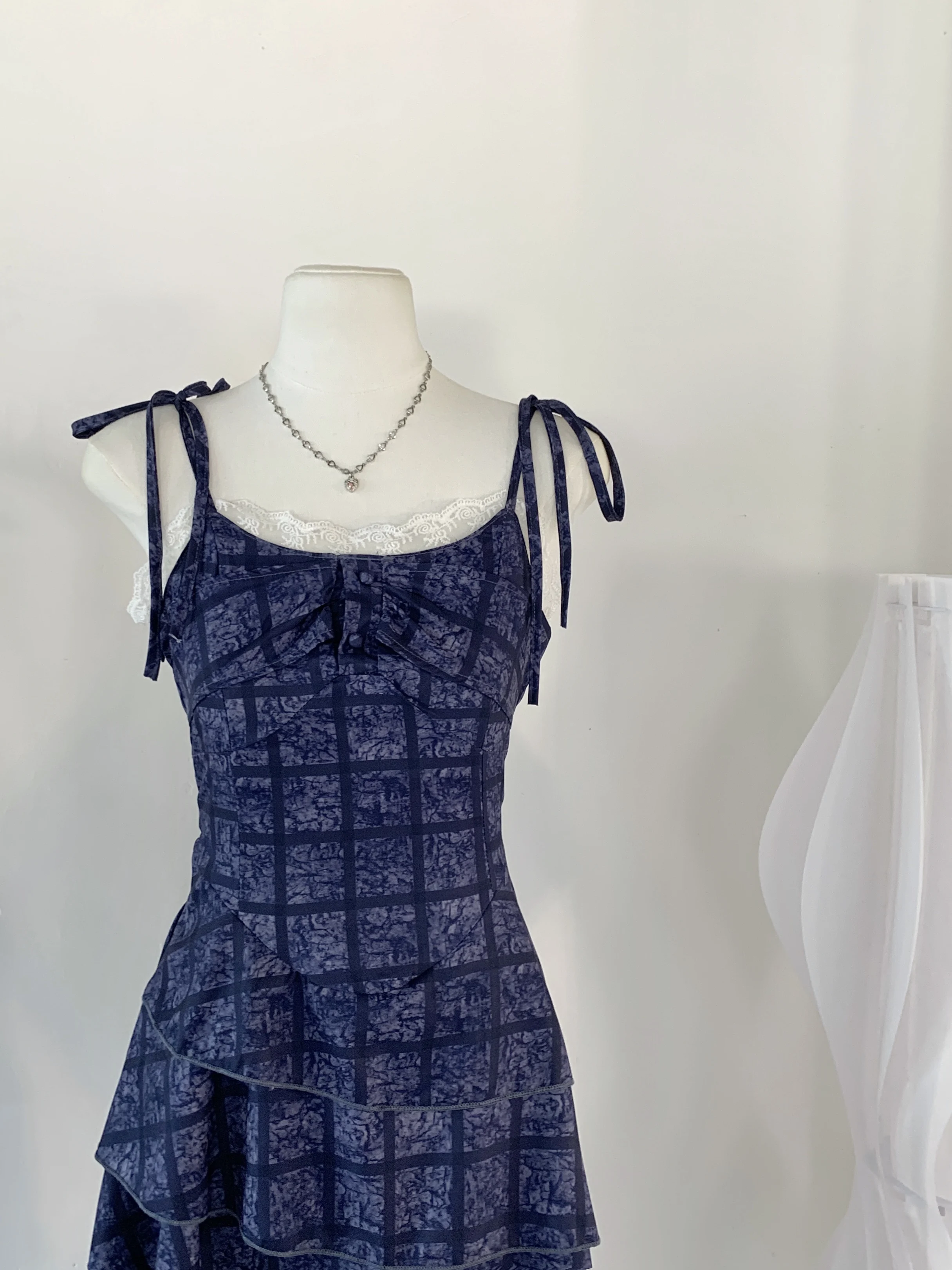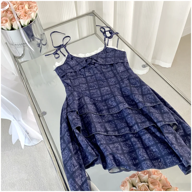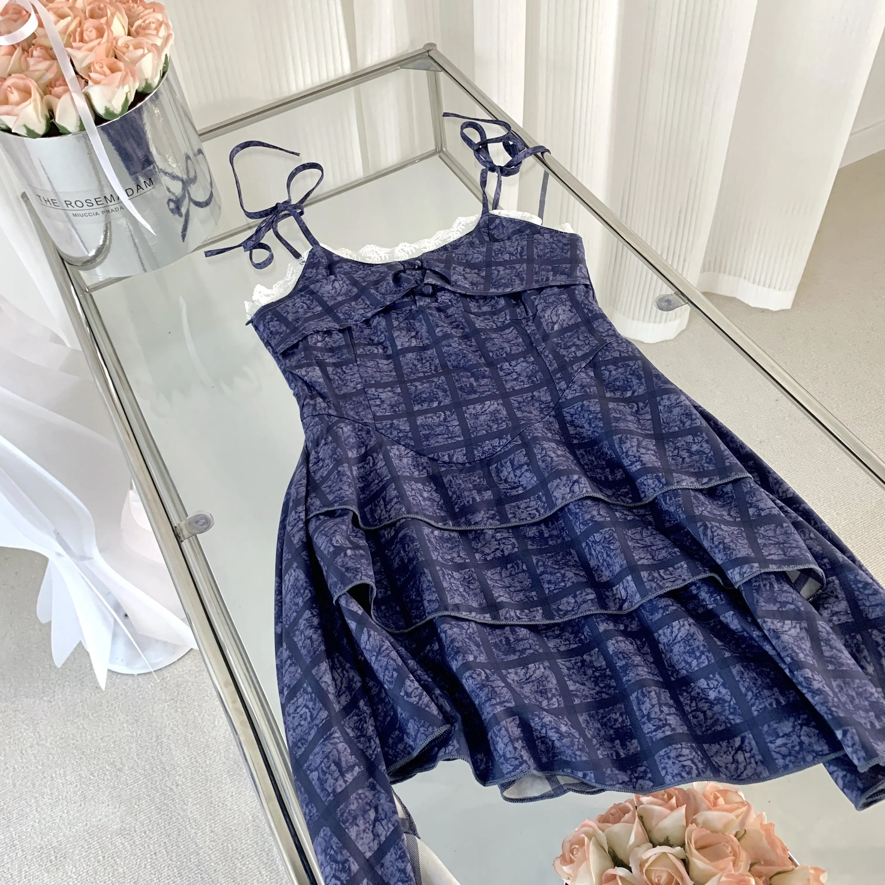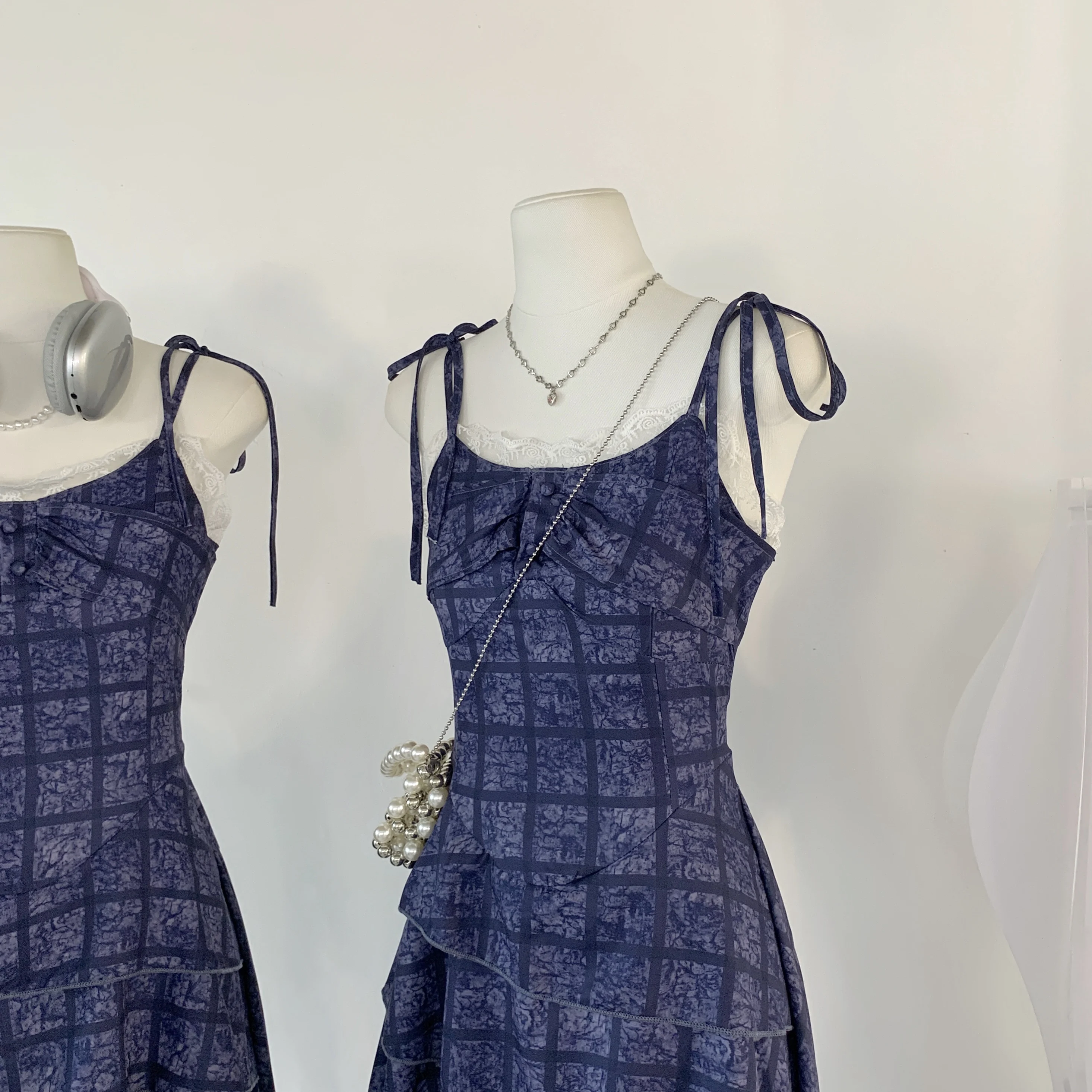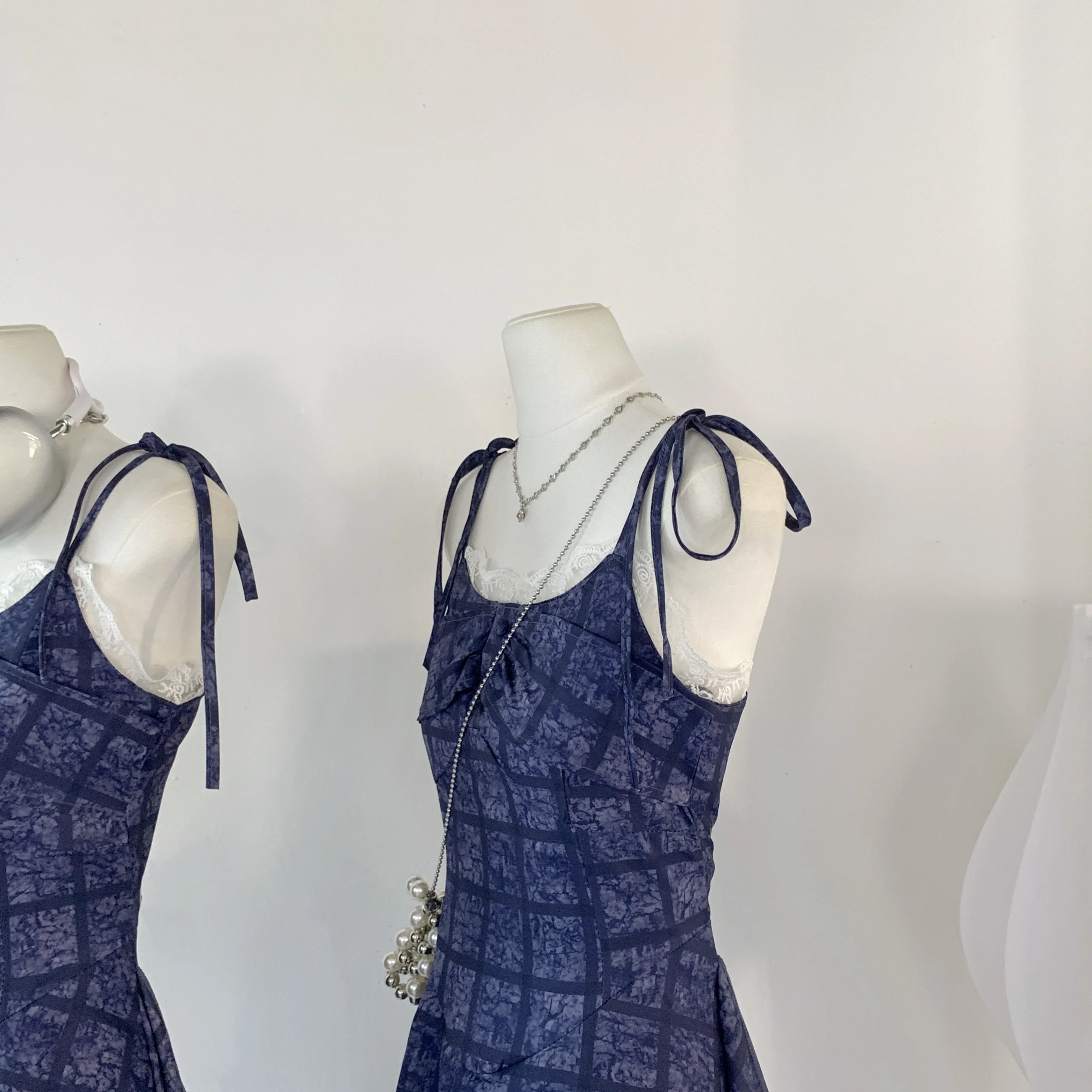 MQTIME - Summer Blue Dress Women Straps Lattice Sleeveless Slip Dress Fashion Y2K Style A-line Skirt 2023 Female Temperament Party Dress