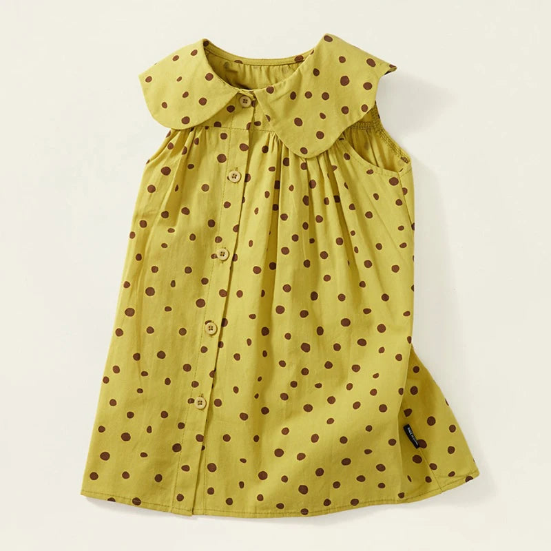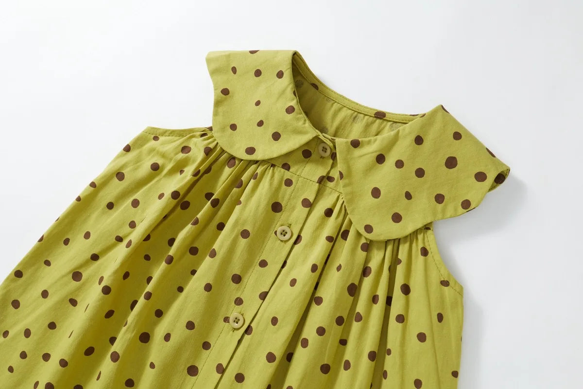 MQTIME - Summer Girls Boutique Clothes Korean Cute Doll Collar Dot Sleeveless Princess Toddler Dress Baby Dresses Kids Clothing BC2146
