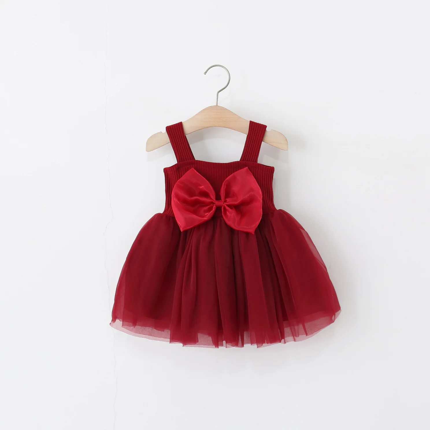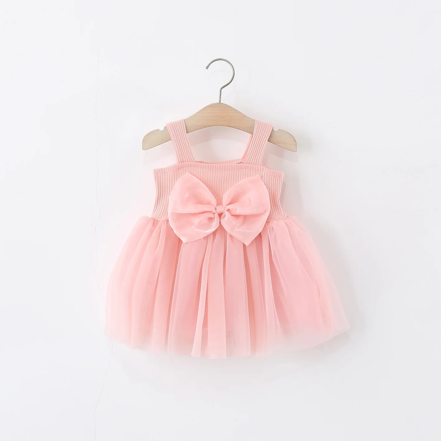 MQTIME - Summer Girls Boutique Clothes Korean Fashion Big Bow Sleeveless Mesh Princess Party Luxury Toddler Dress Baby Dresses B026