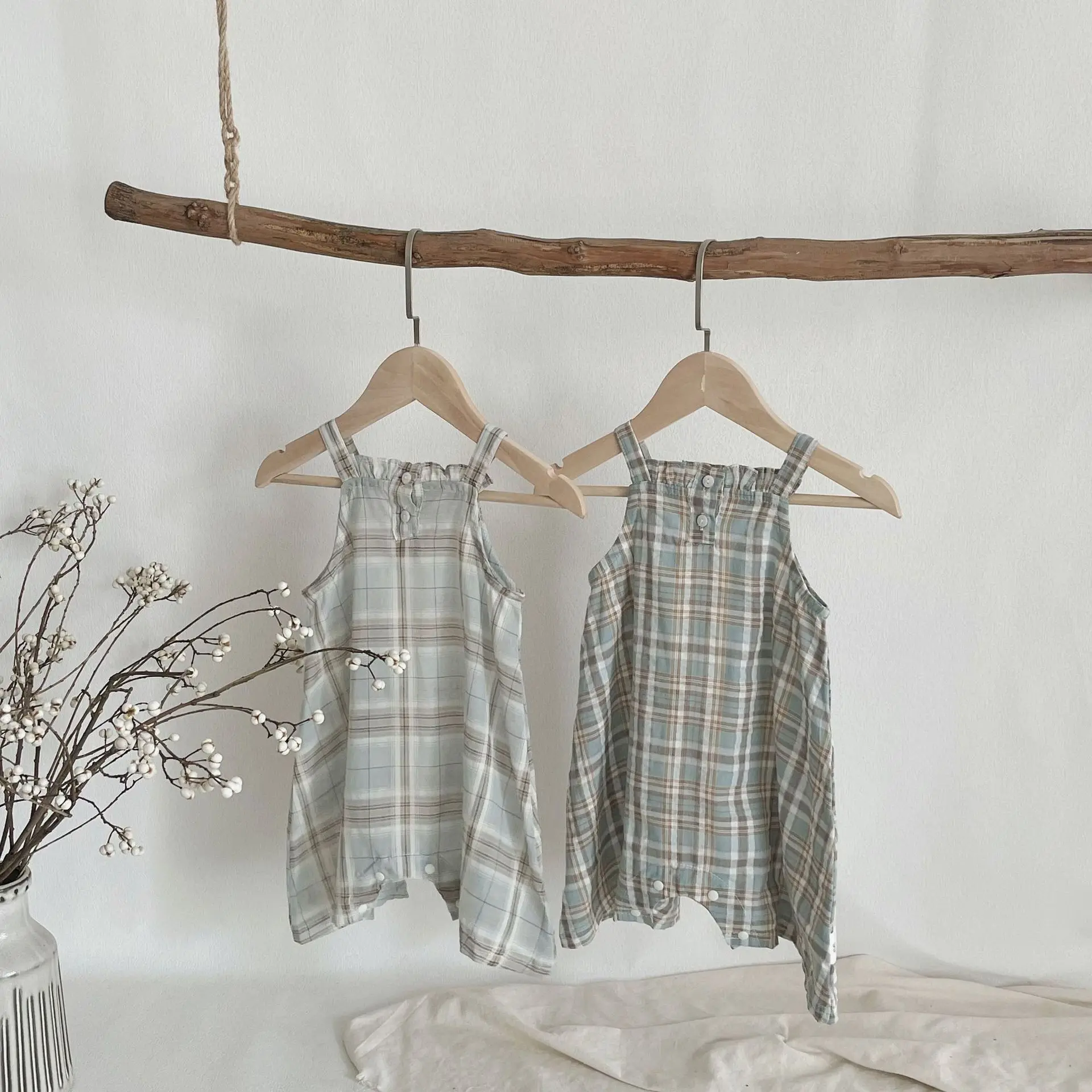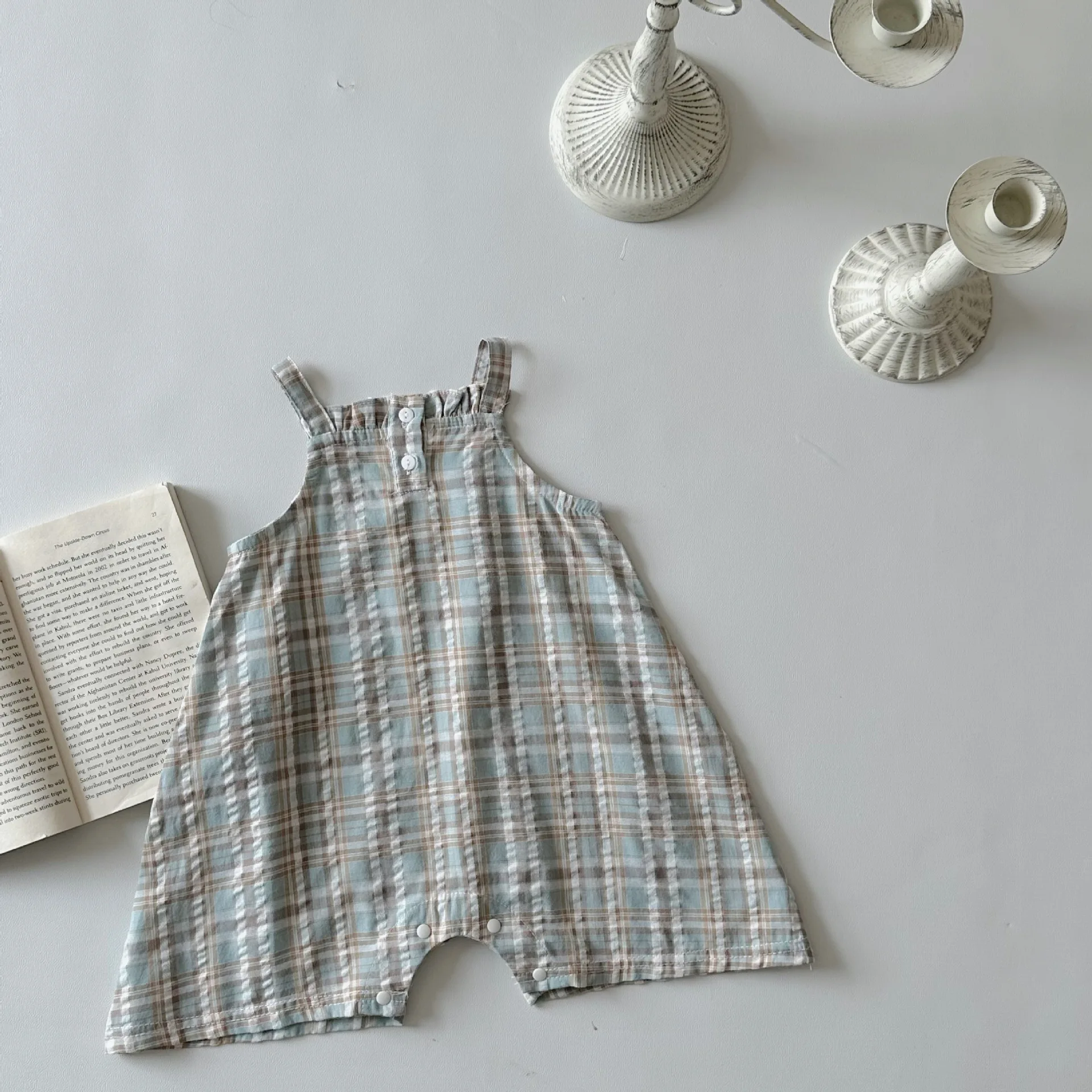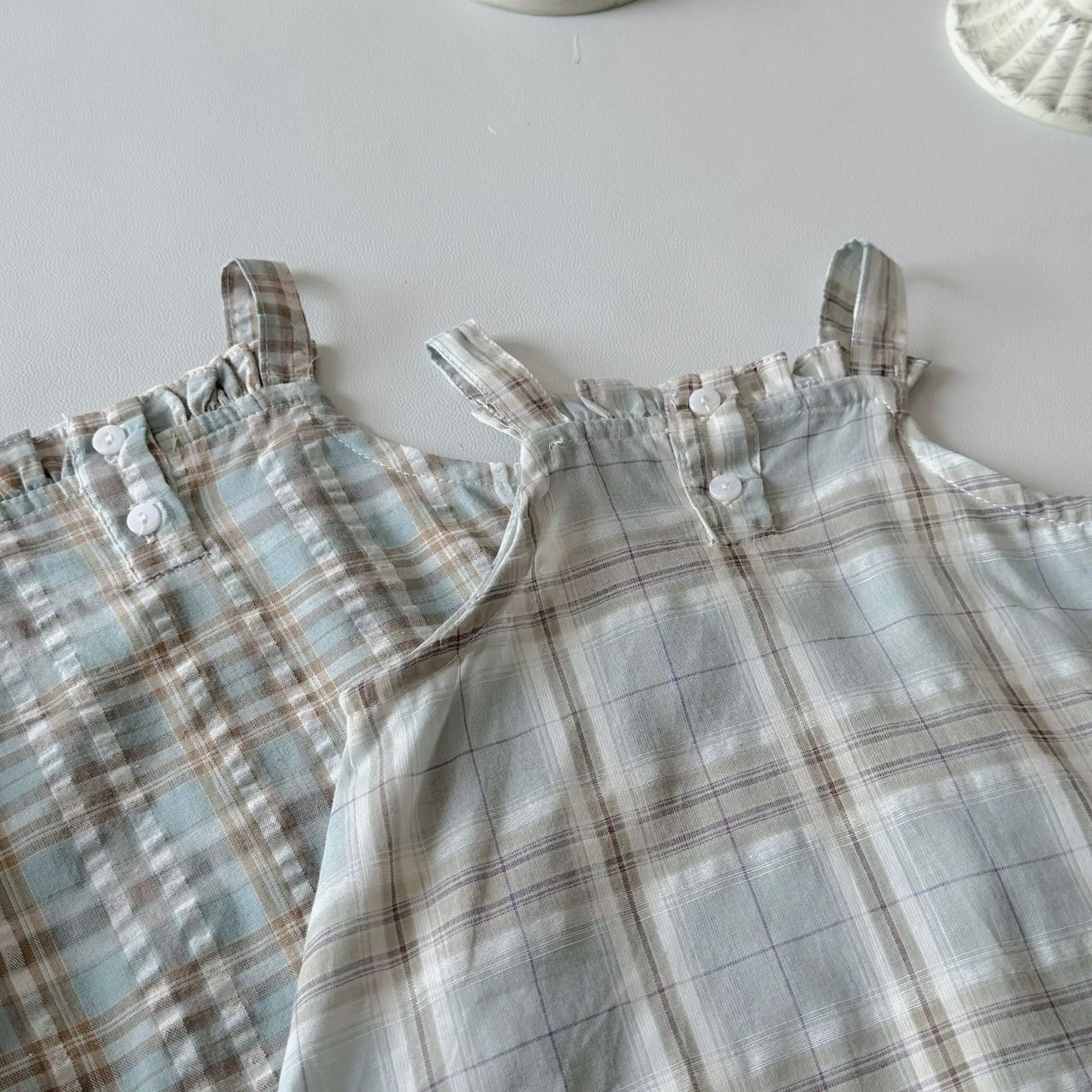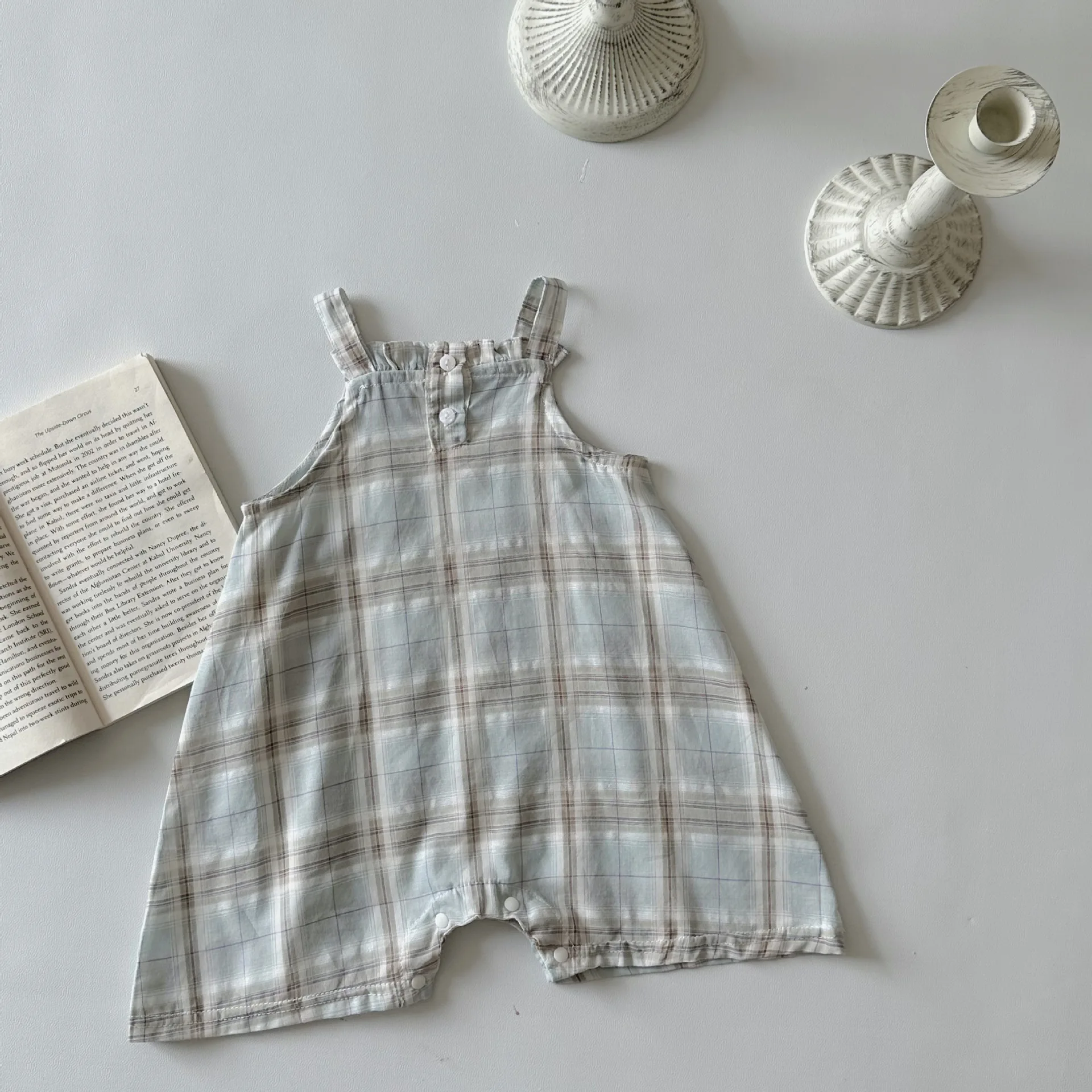 MQTIME - Summer Infant Overalls Loose Girl Baby Plaid Suspenders Pants Girl Kid Cotton Sleeveless Jumpsuit Newborn Casual Trousers