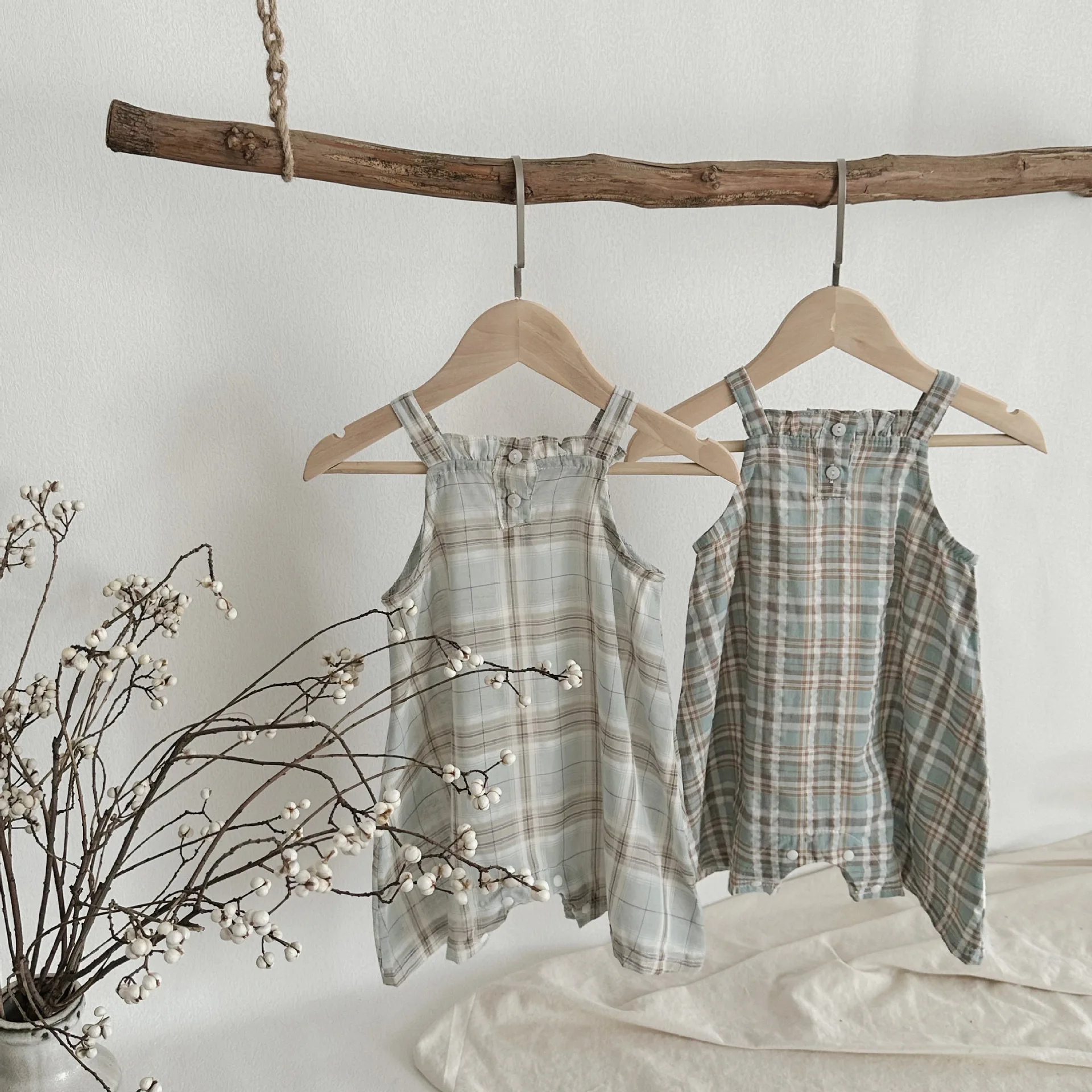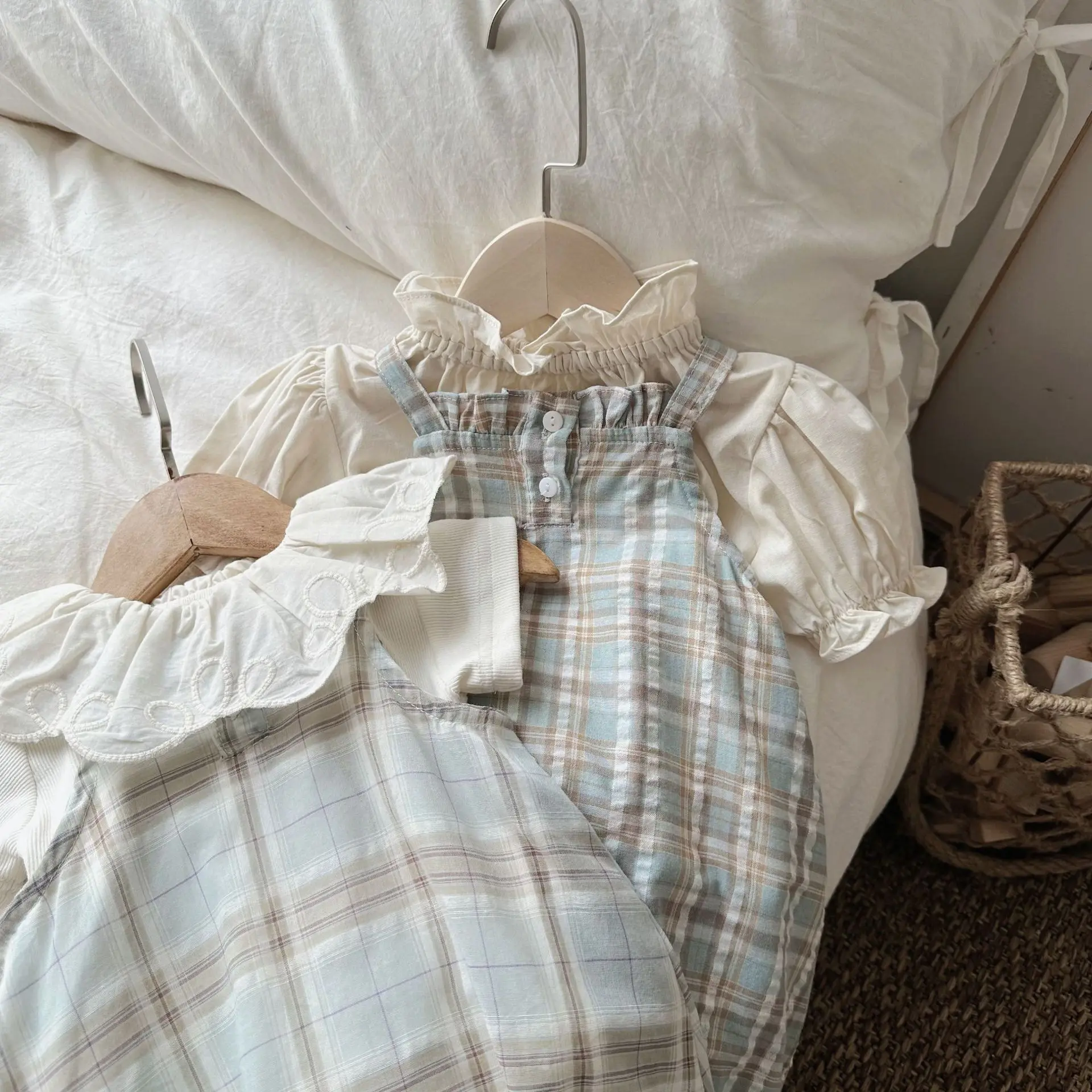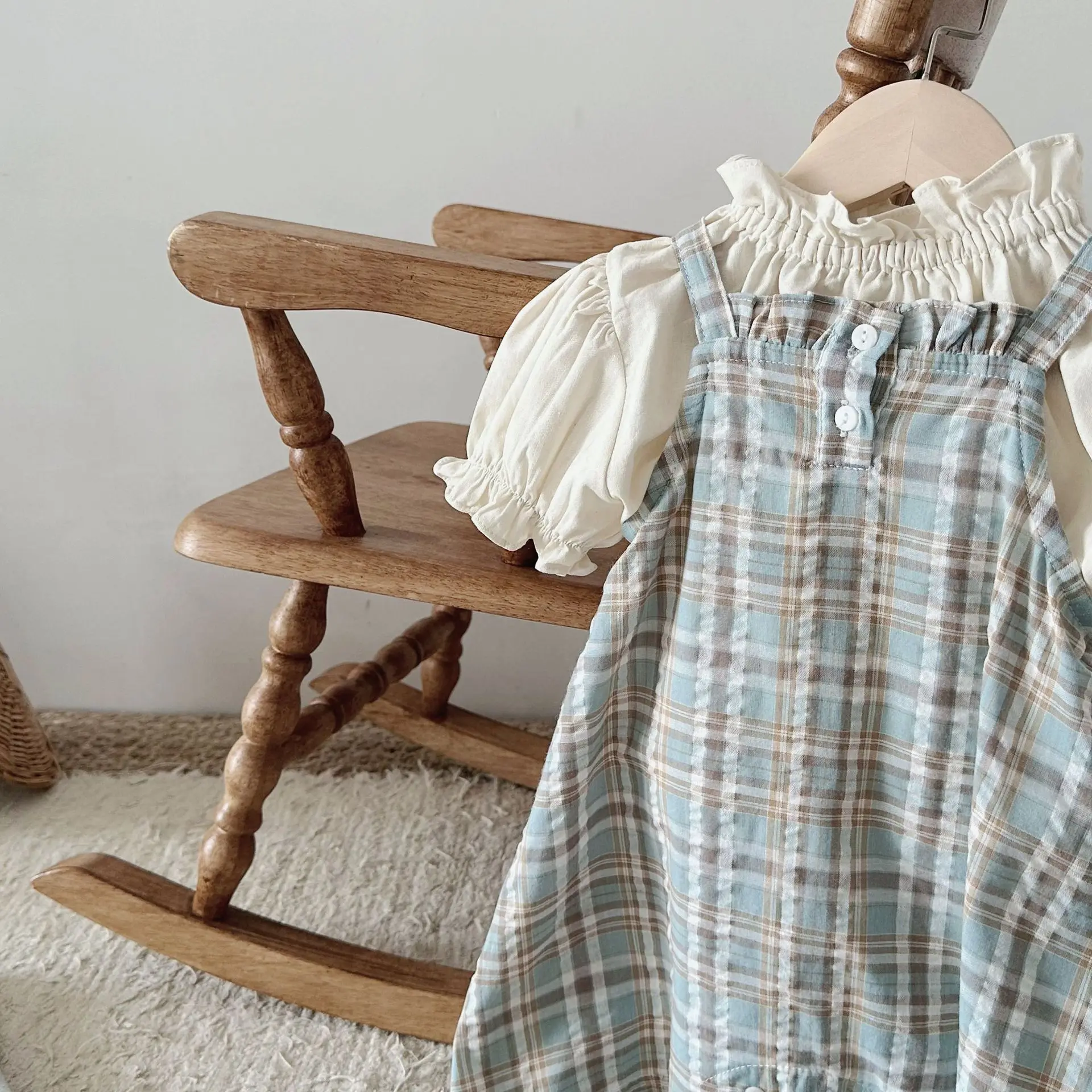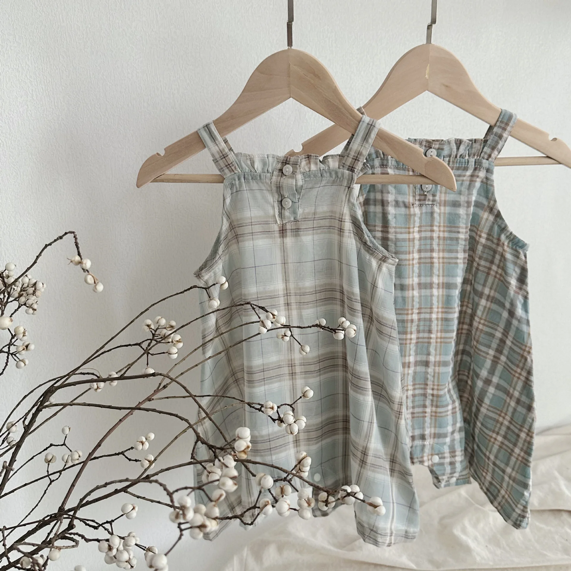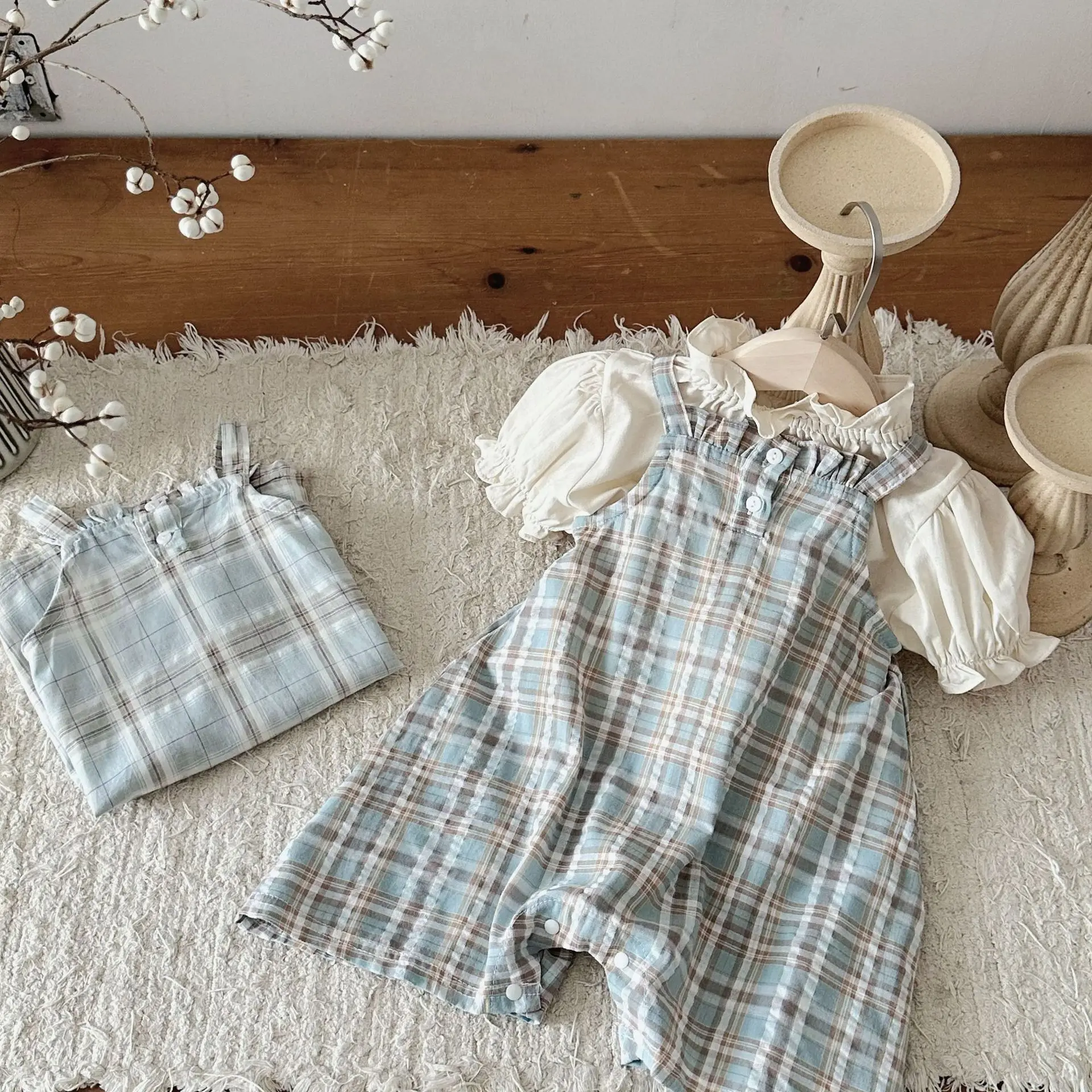 MQTIME - Summer Infant Overalls Loose Girl Baby Plaid Suspenders Pants Girl Kid Cotton Sleeveless Jumpsuit Newborn Casual Trousers