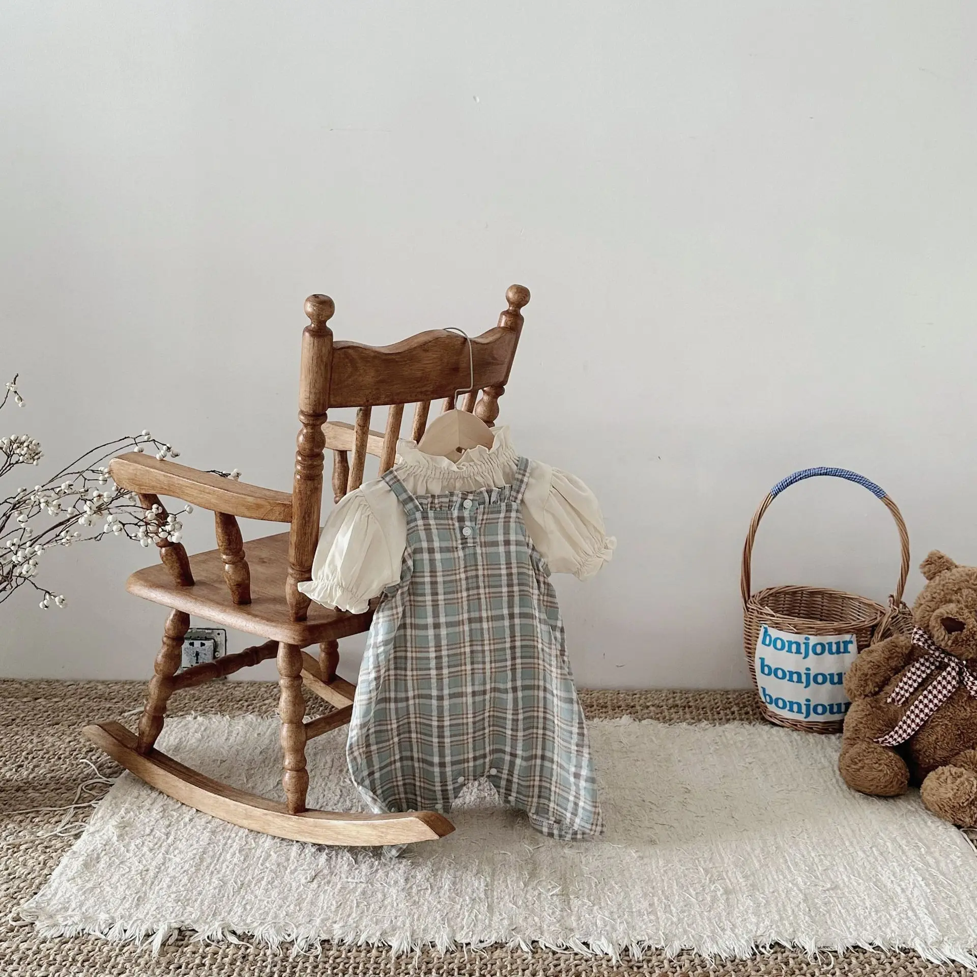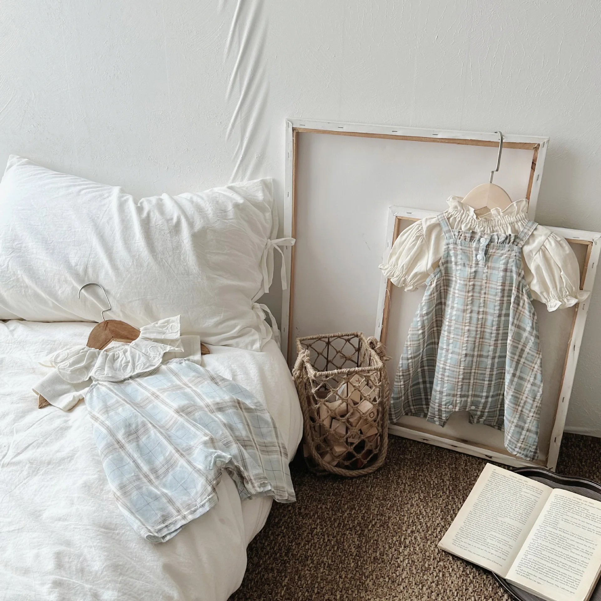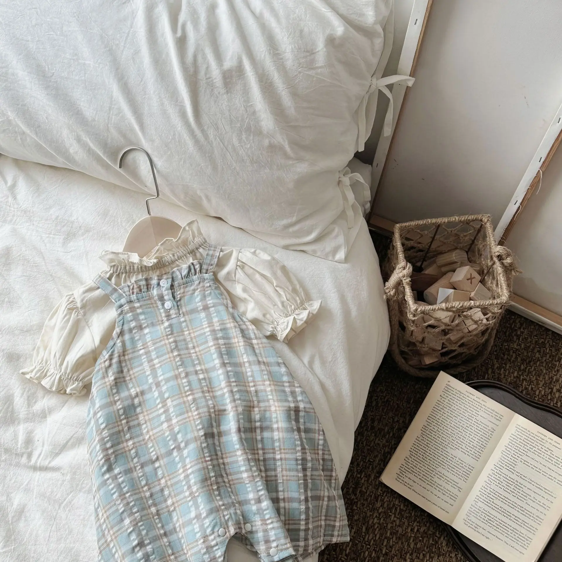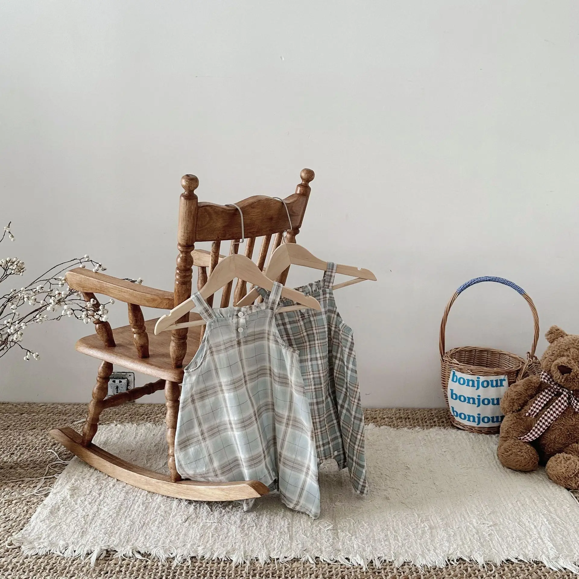 MQTIME - Summer Infant Overalls Loose Girl Baby Plaid Suspenders Pants Girl Kid Cotton Sleeveless Jumpsuit Newborn Casual Trousers