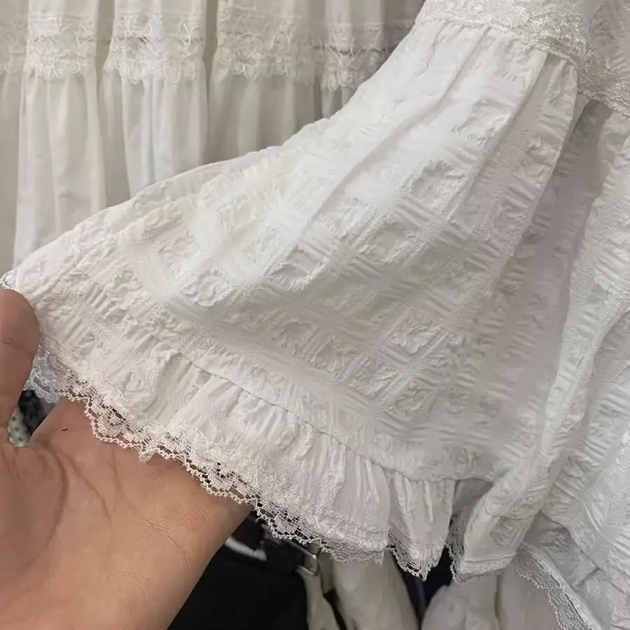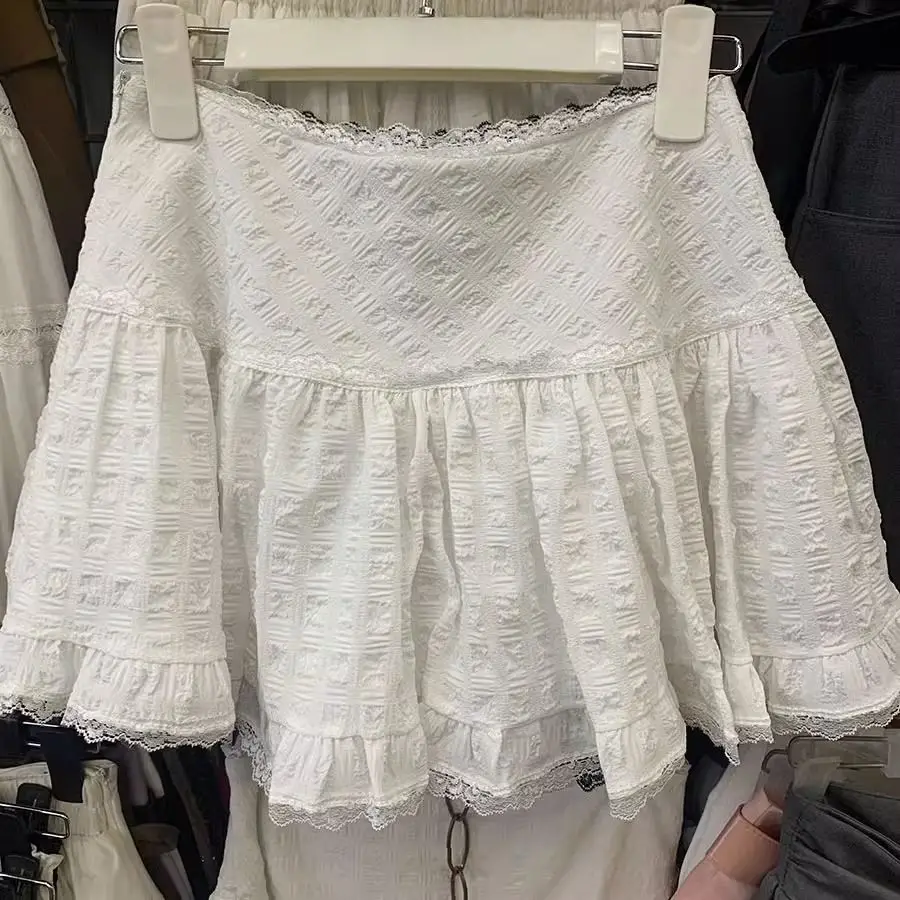 MQTIME - Summer Korean Fashion High Waist Elegant Cake Fluffy White Skirt Sweet Girl Versatile Slim A-Line Lace Short Skirts for Women