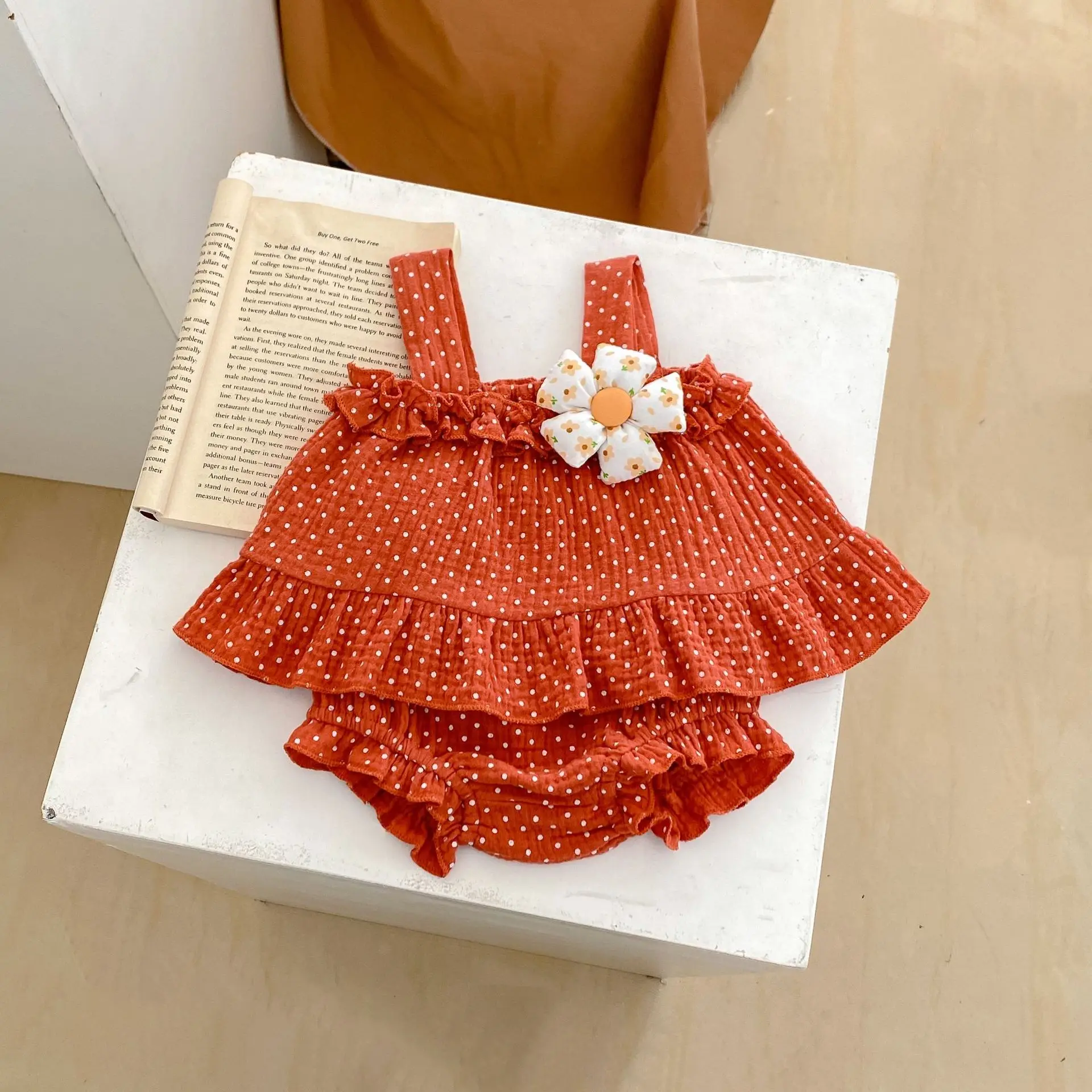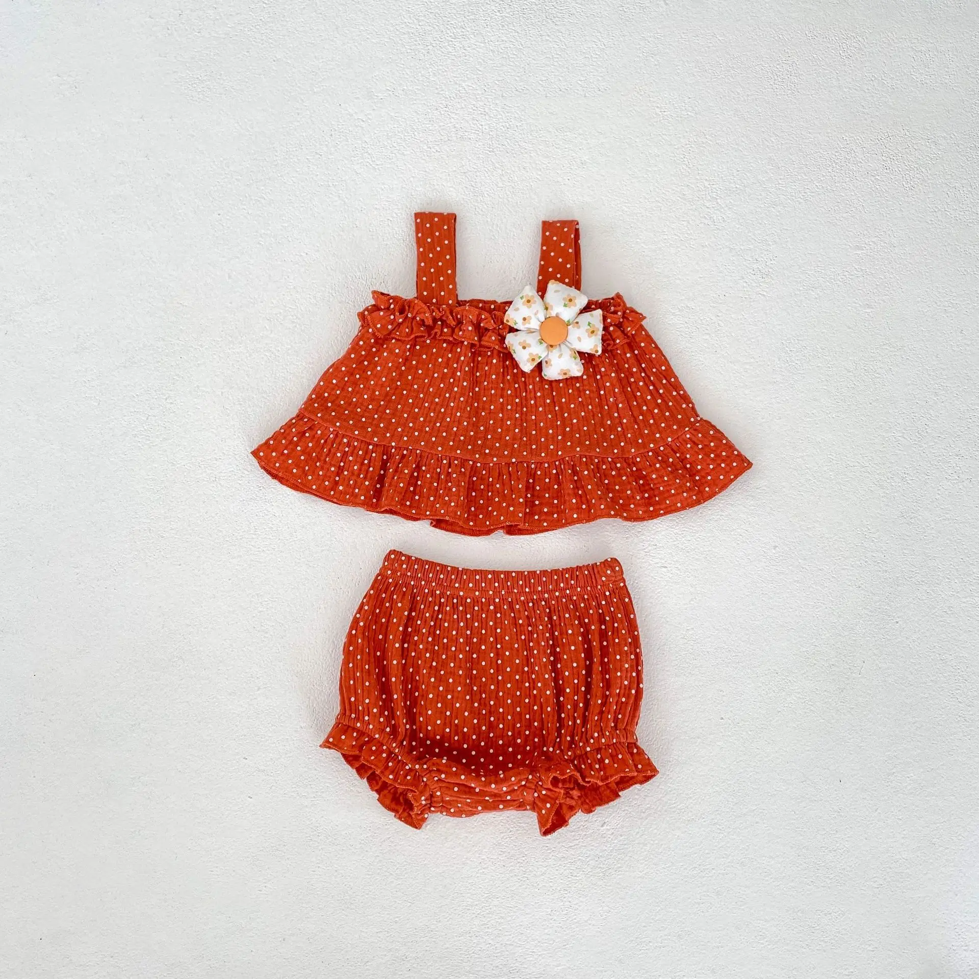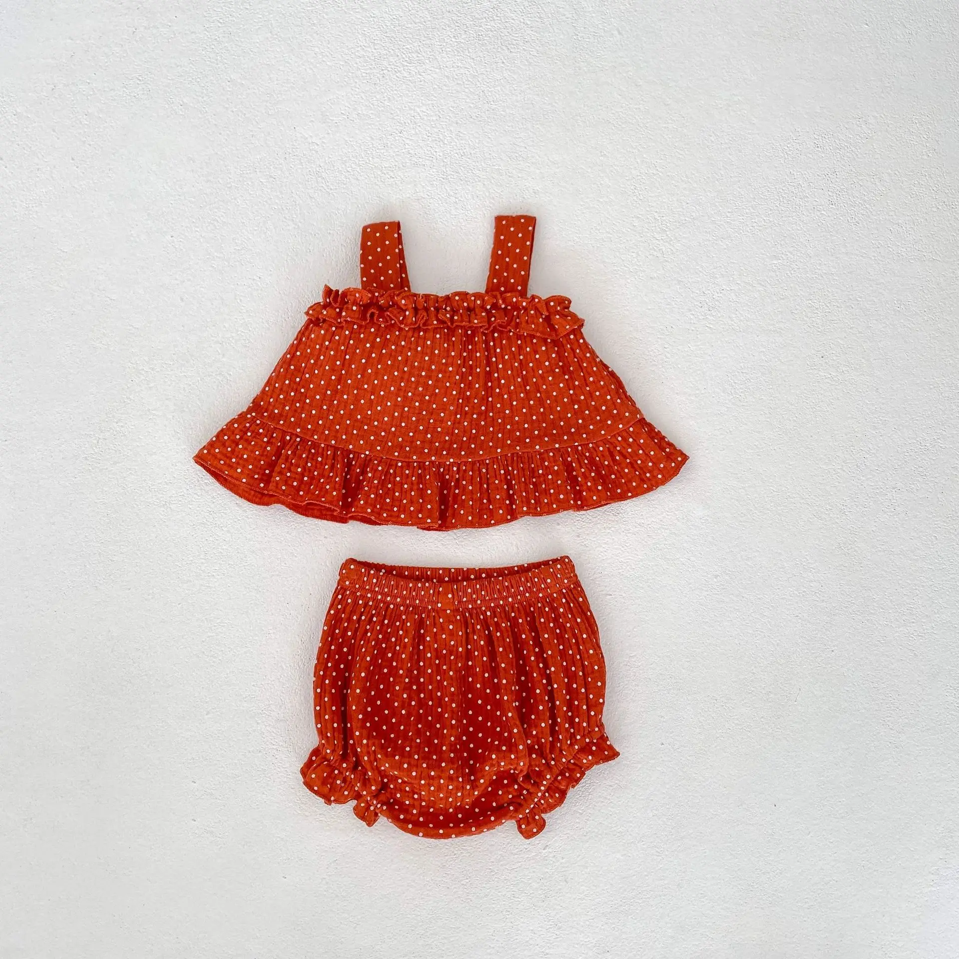 MQTIME - Summer New Fashion Versatile Infant and Toddler Girl Baby Sweet Dot Printed Suspended Top+Bottom Wrapped Pants Sleeveless Set