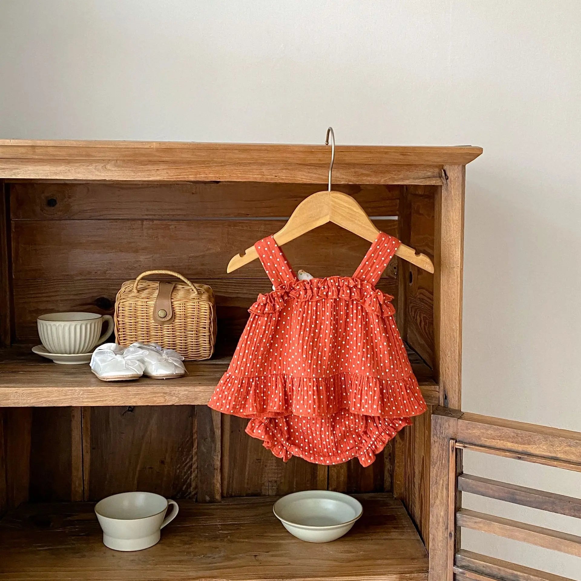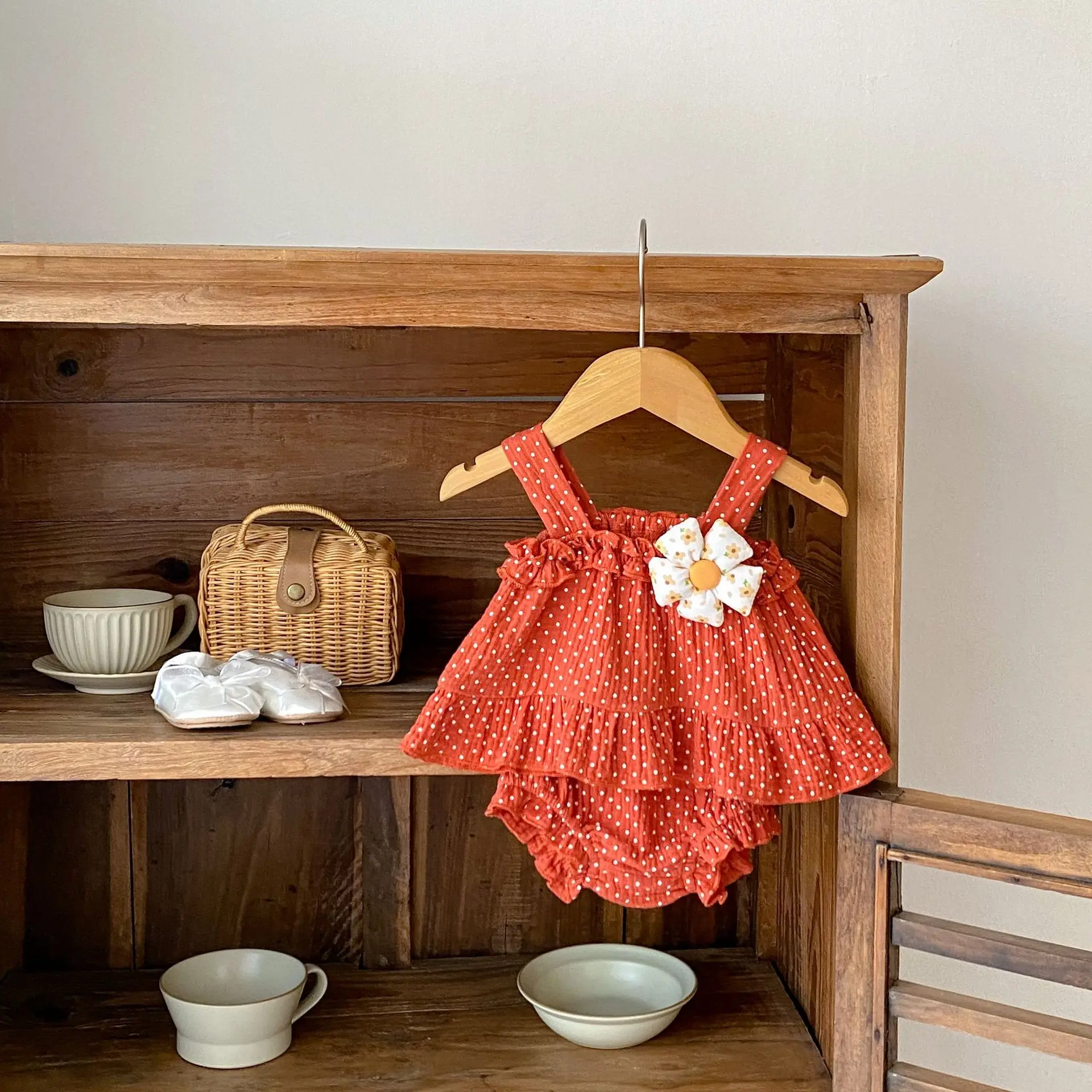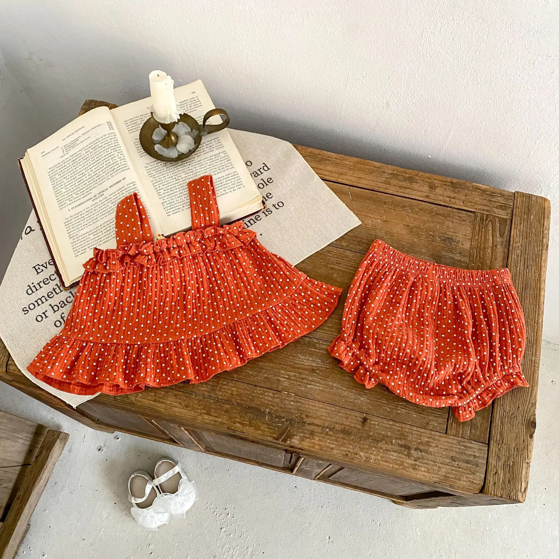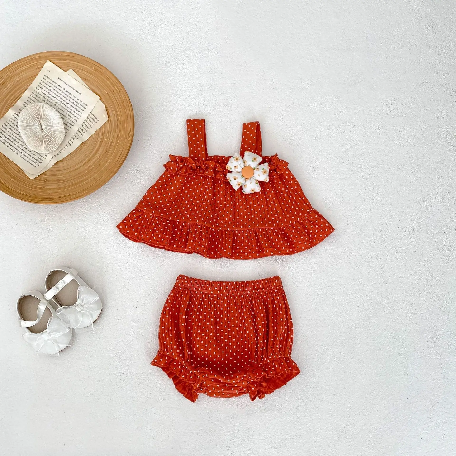 MQTIME - Summer New Fashion Versatile Infant and Toddler Girl Baby Sweet Dot Printed Suspended Top+Bottom Wrapped Pants Sleeveless Set