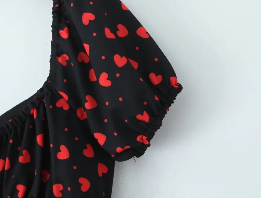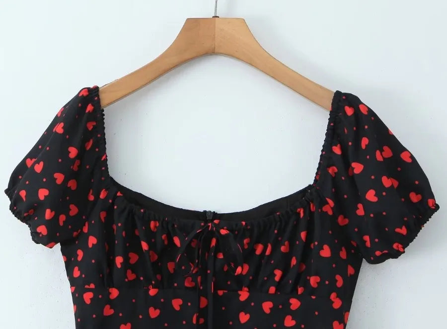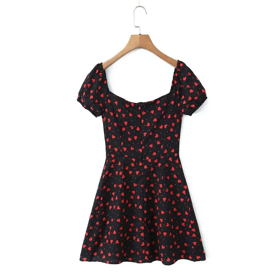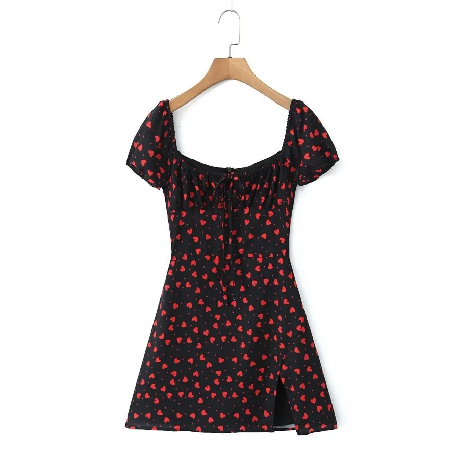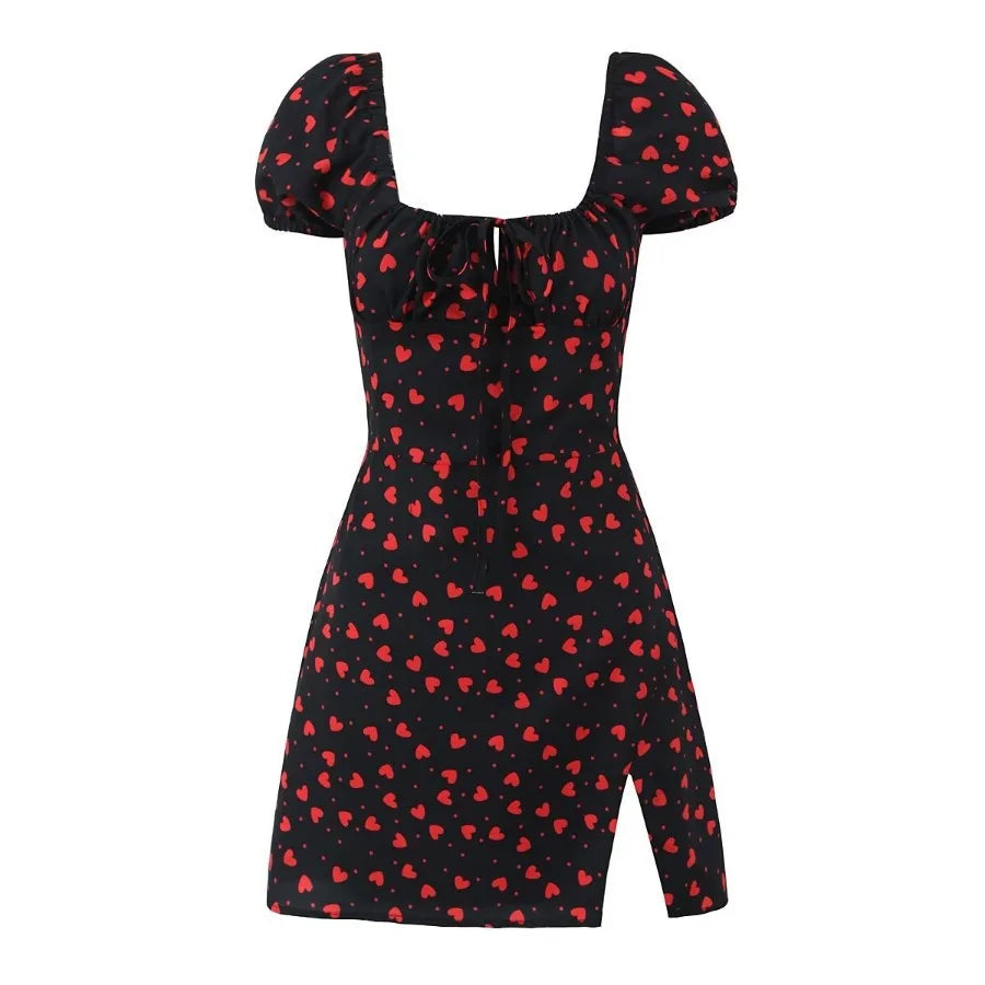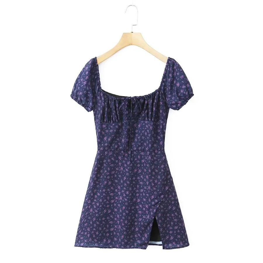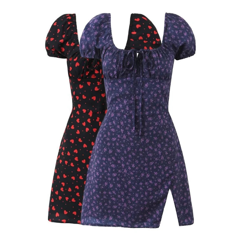 MQTIME - Summer new French square neck bubble sleeve short sleeved floral slim fit women's dress short skirt