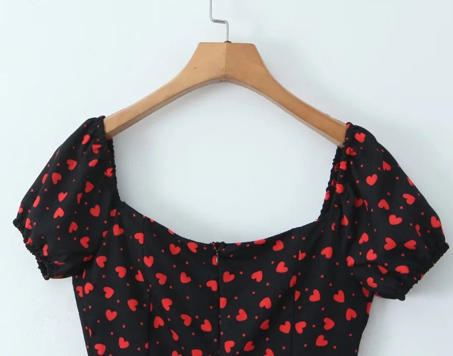 MQTIME  -  Summer new French square neck bubble sleeve short sleeved floral slim fit women's dress short skirt