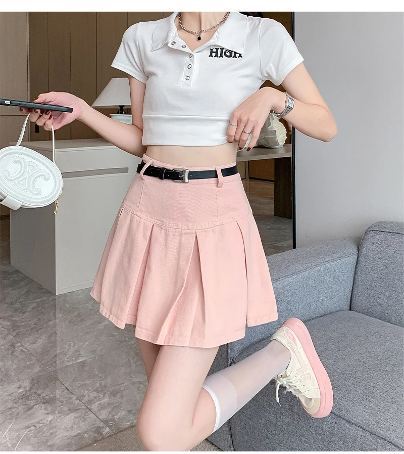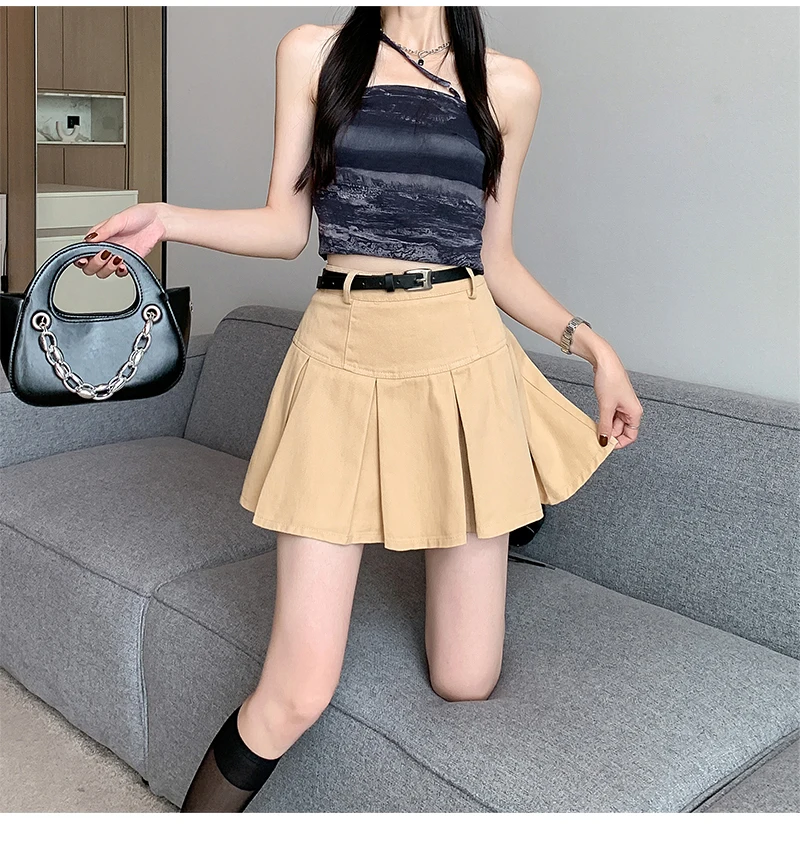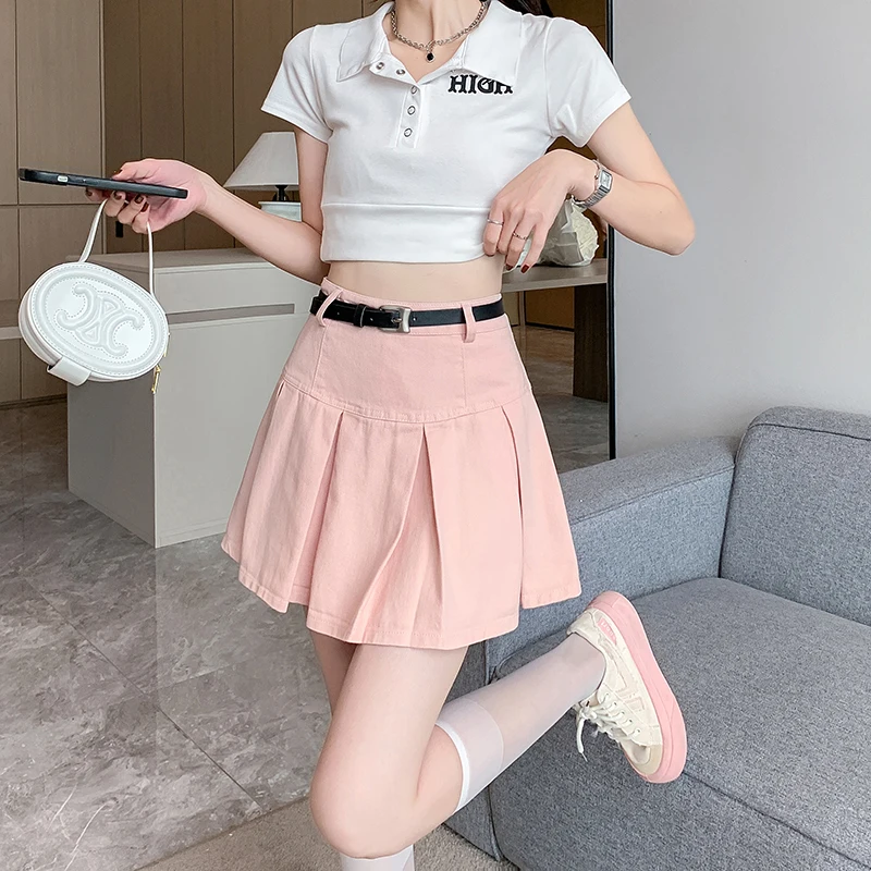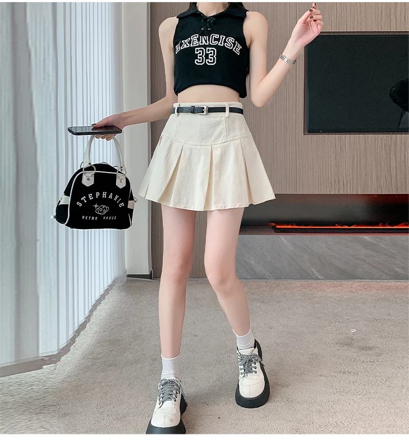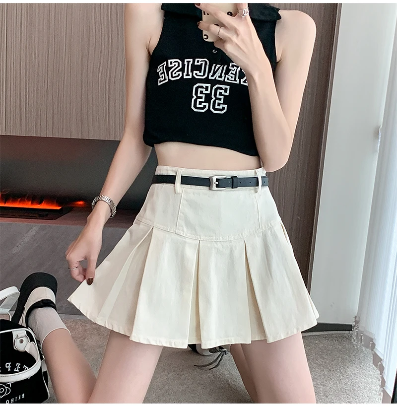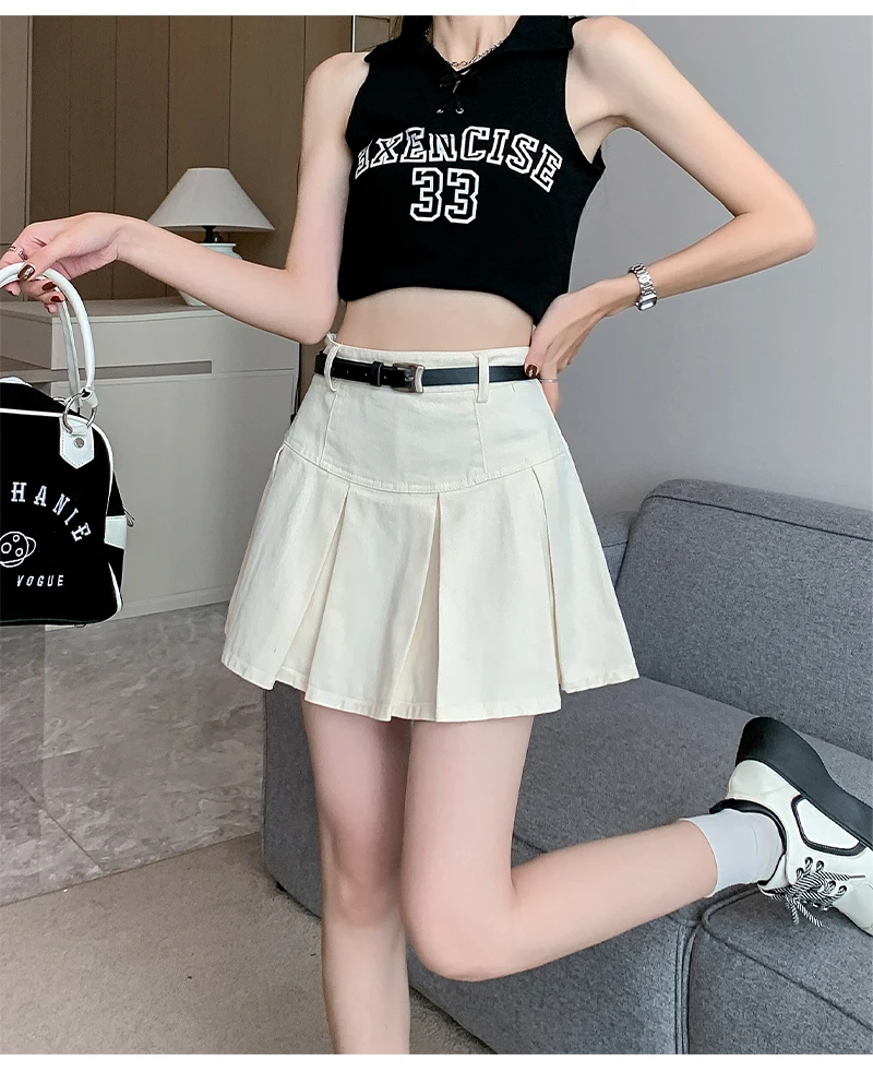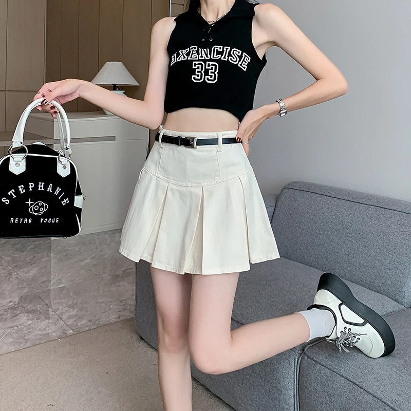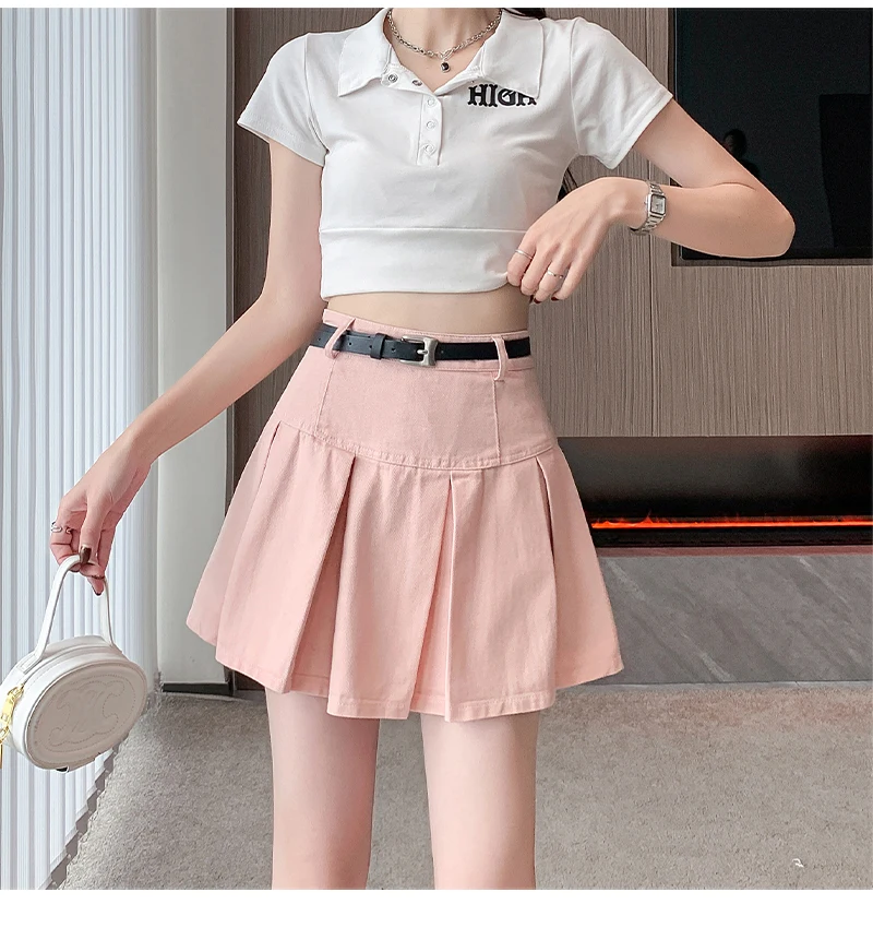 MQTIME - Summer New Spice Girl Style Small Dull Skirt High waist Slim Versatile A-line Skirt Anti slip Denim skirt