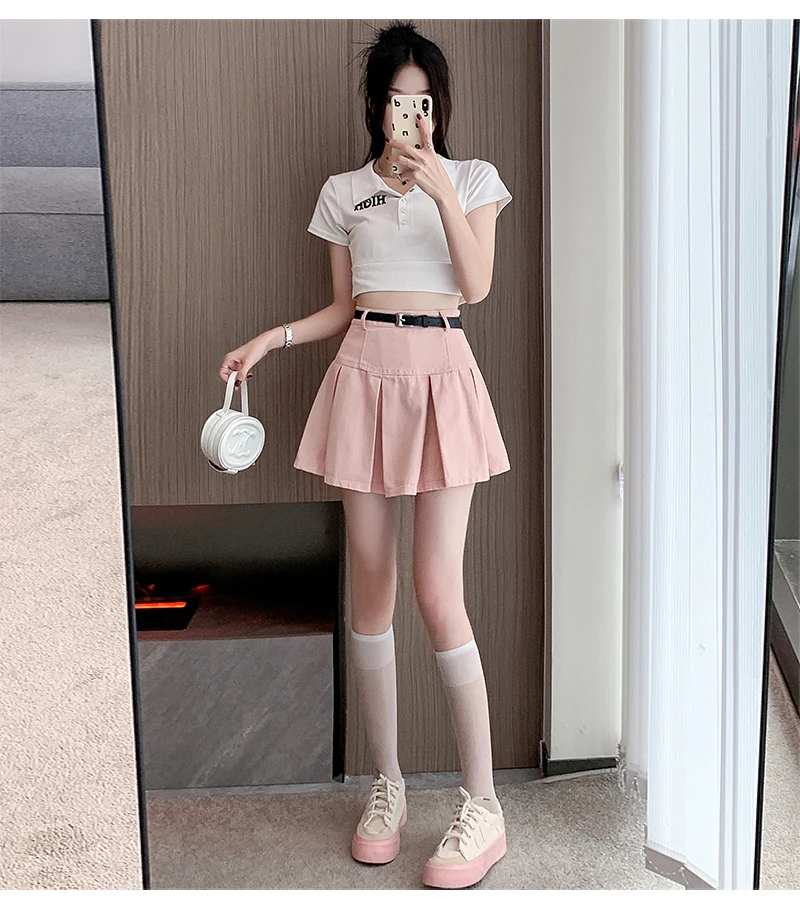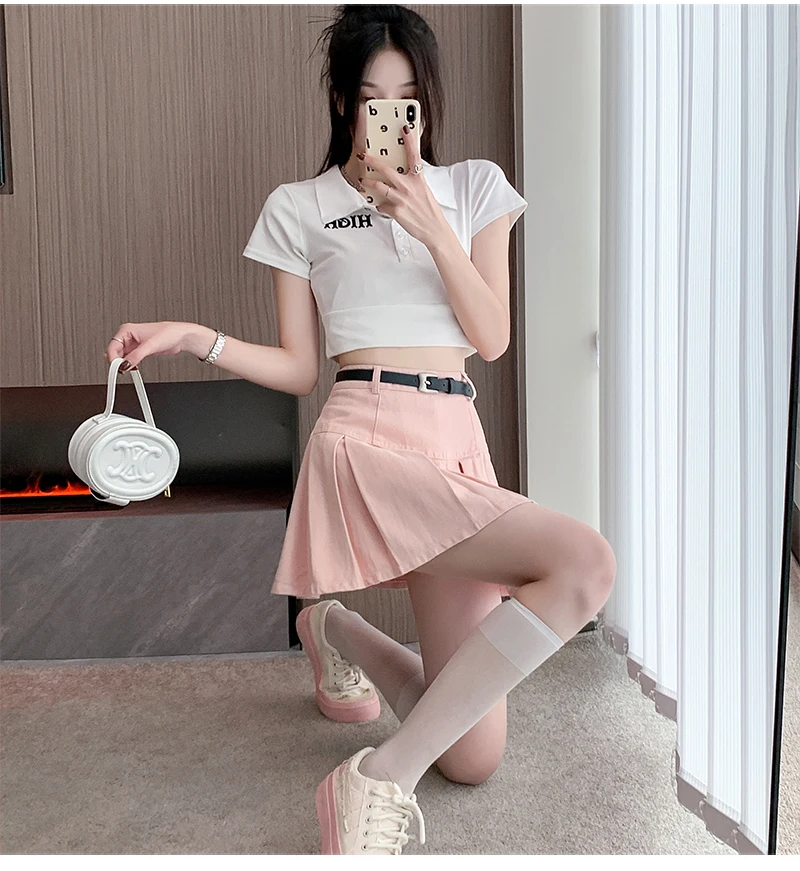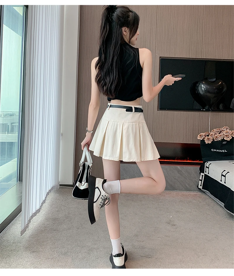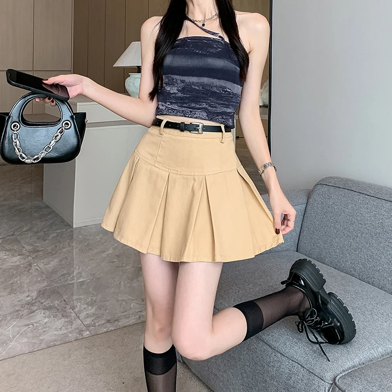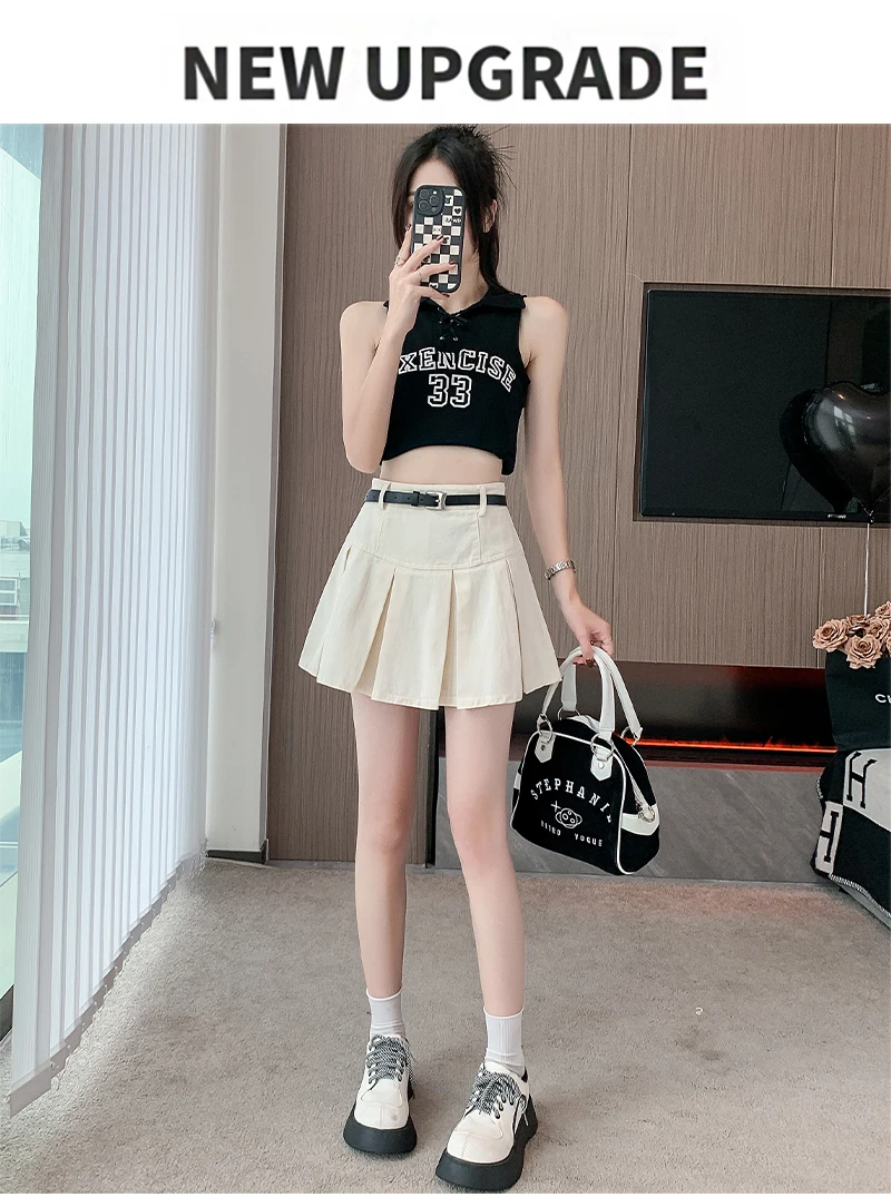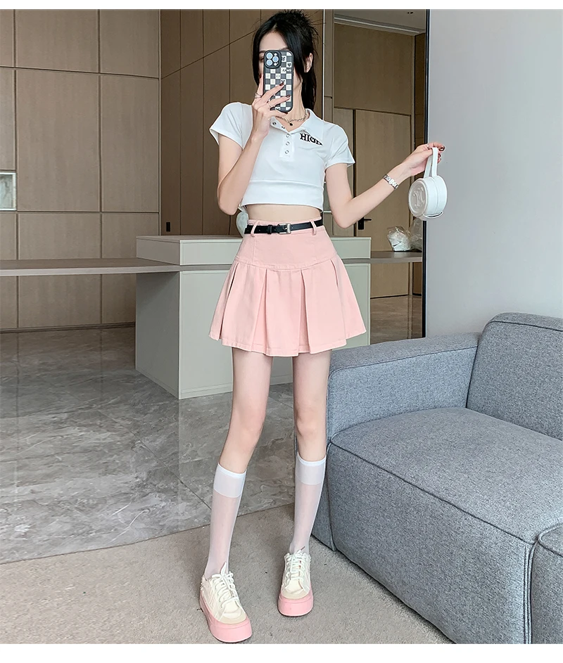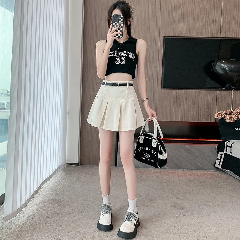 MQTIME - Summer New Spice Girl Style Small Dull Skirt High waist Slim Versatile A-line Skirt Anti slip Denim skirt