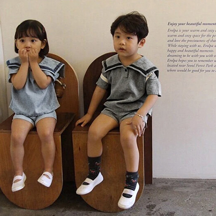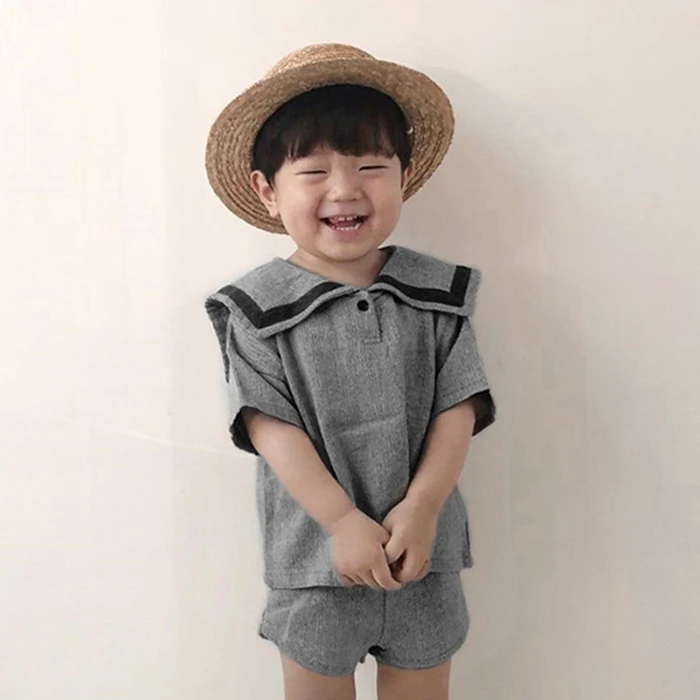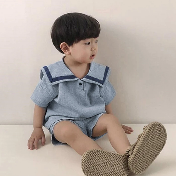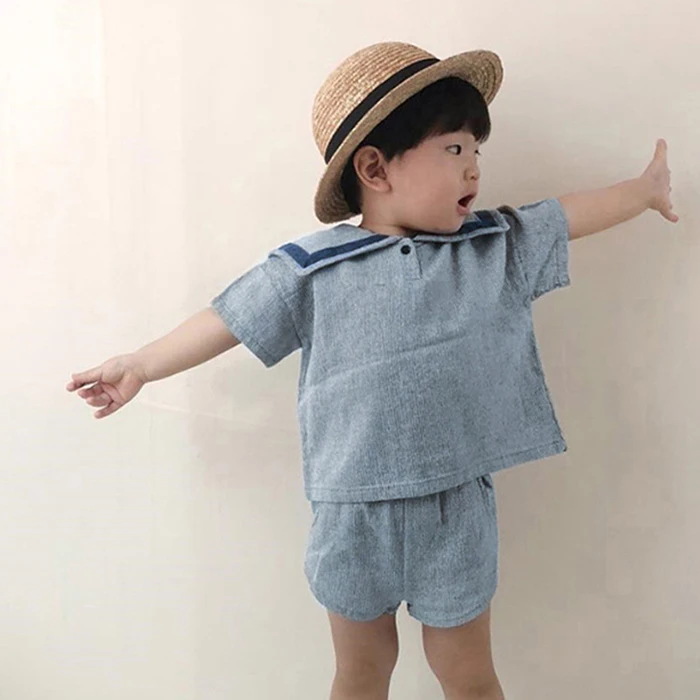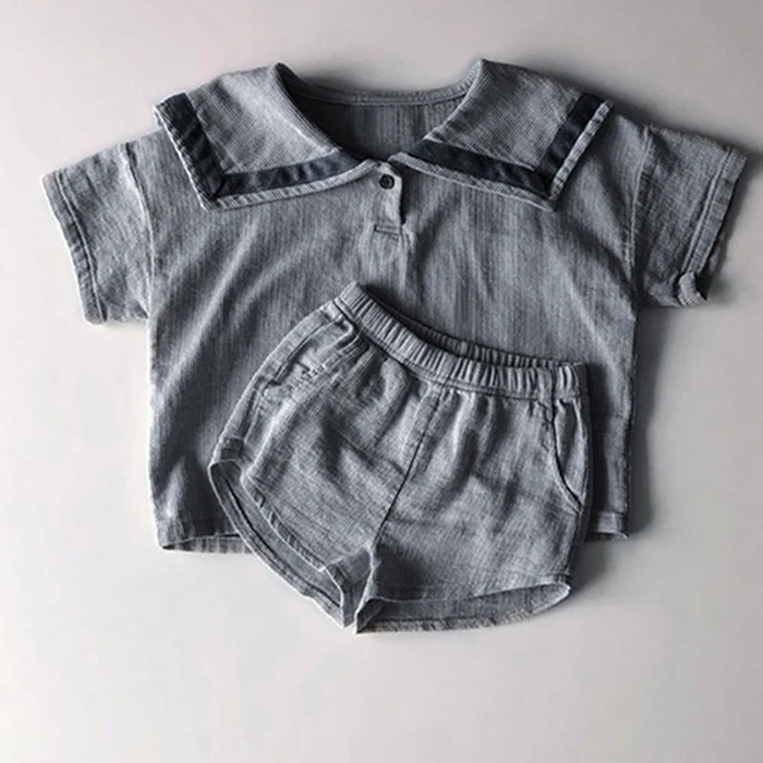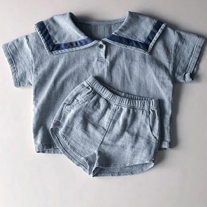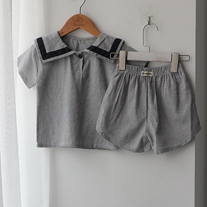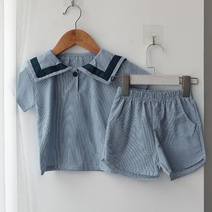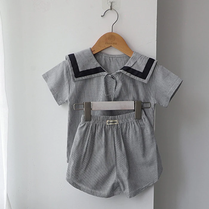 MQTIME  -  Summer Newborn Baby Girls Boys Clothing Set Korean Style Navy Collar Short Sleeve T-shirt+Shorts Set Kids Clothing Suit