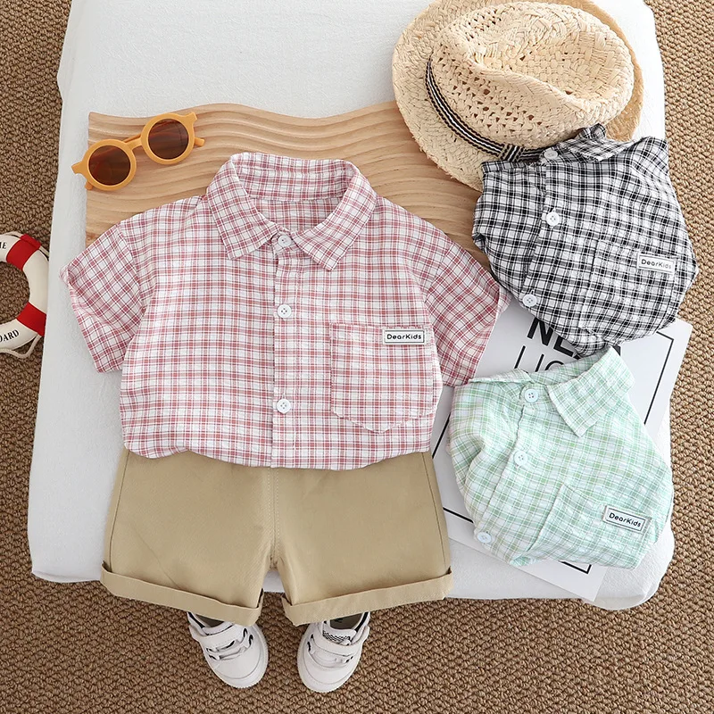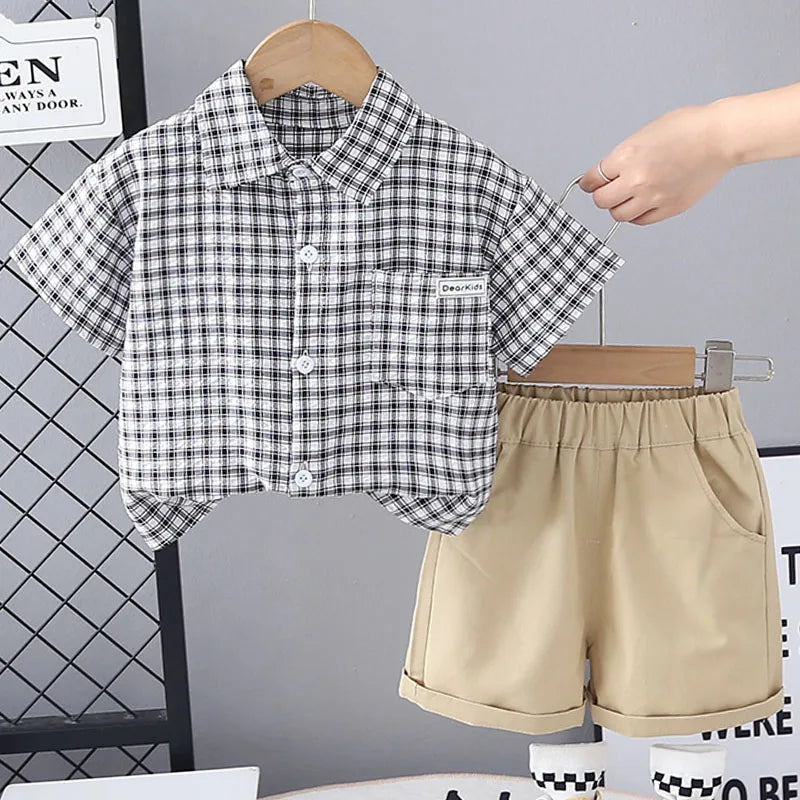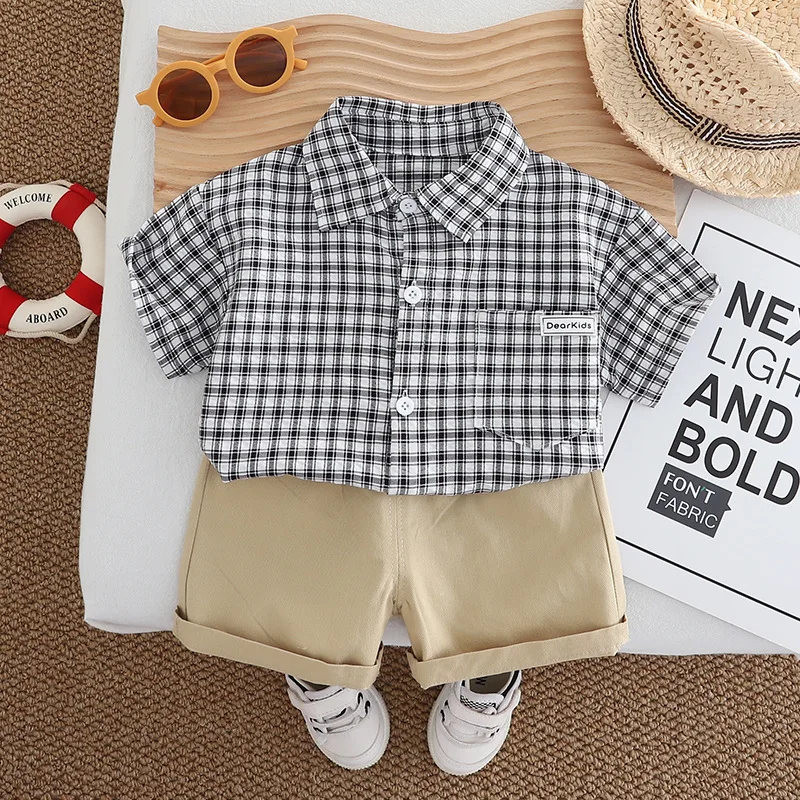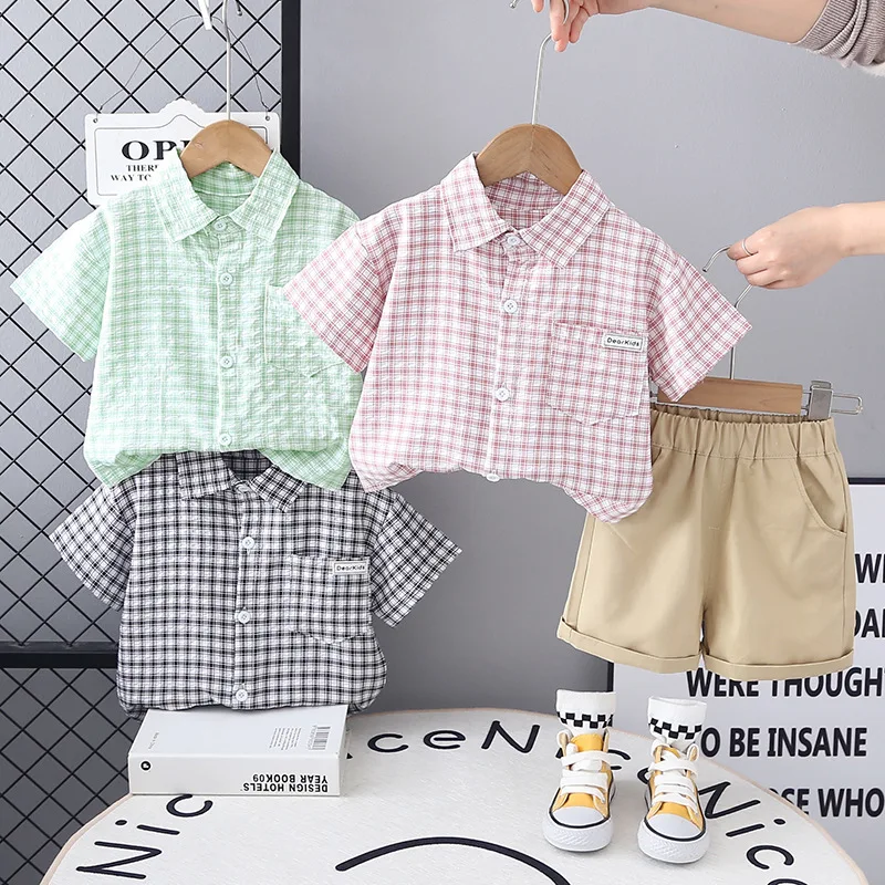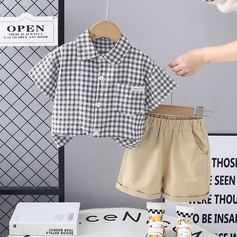 MQTIME - Summer Toddler Girl Outfits Set Korean Kids Clothes Fashion Plaid Cotton Short Sleeve Tops+Shorts Baby Boutique Clothing B069