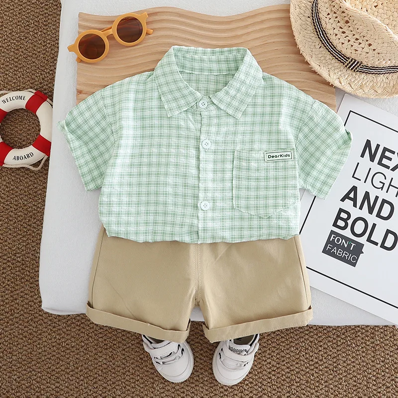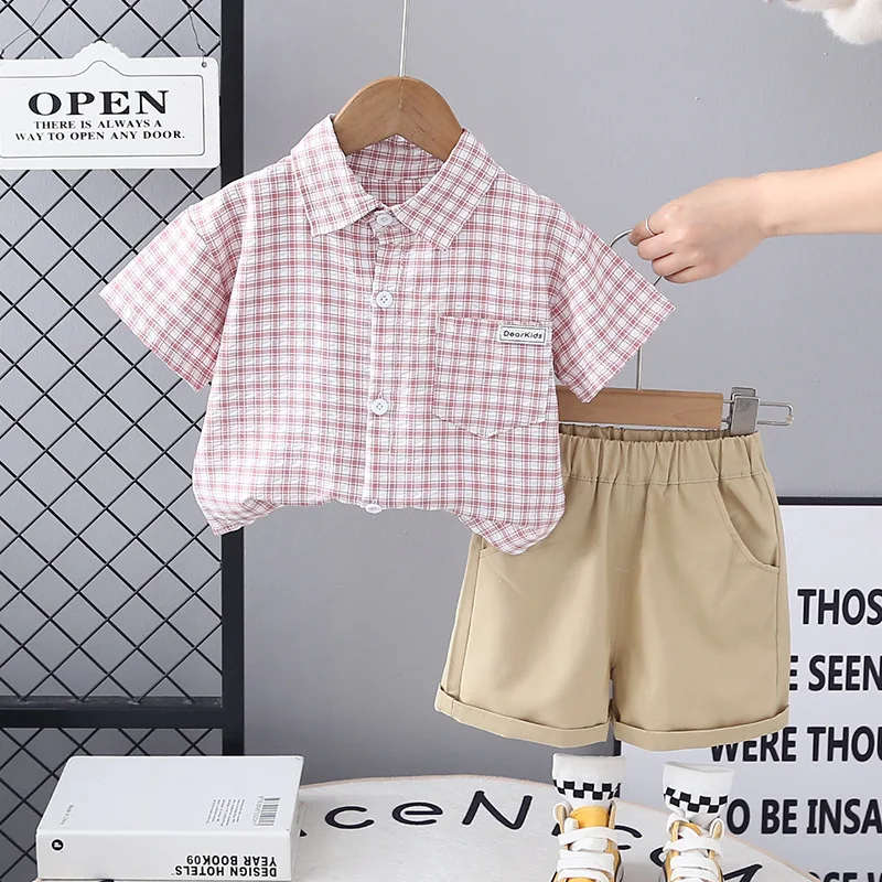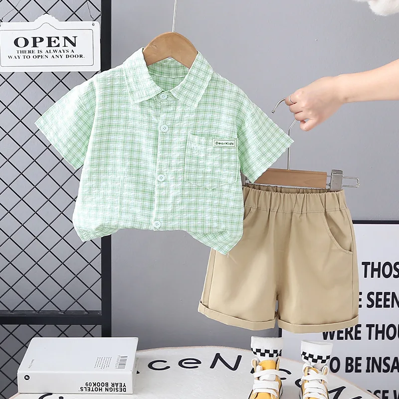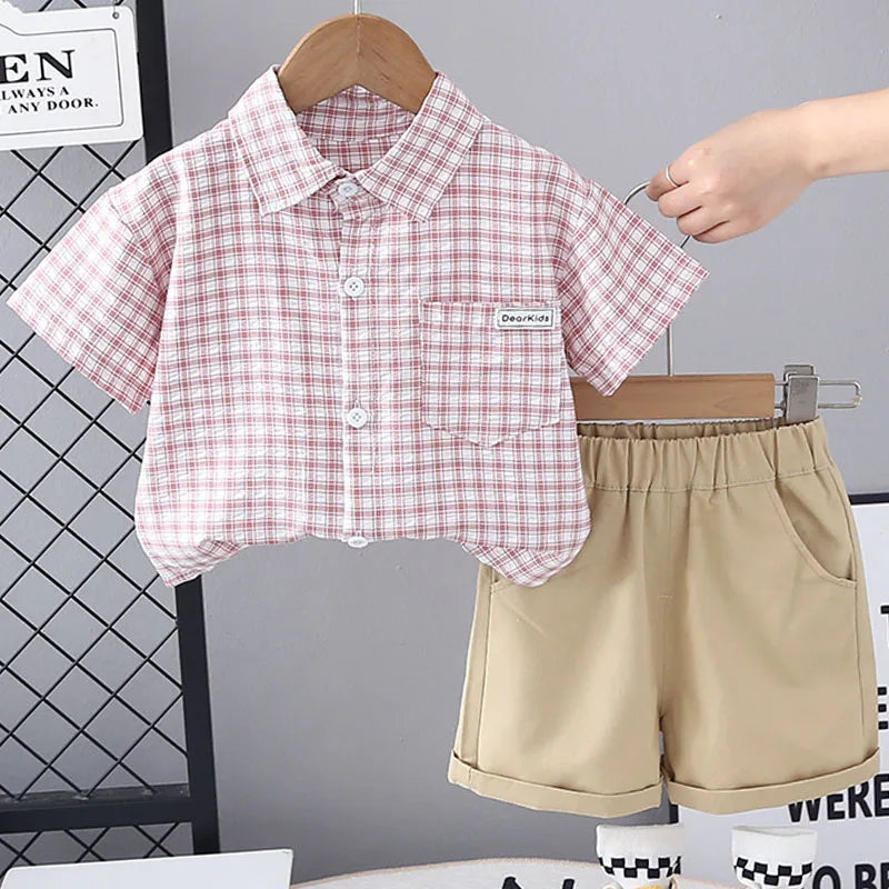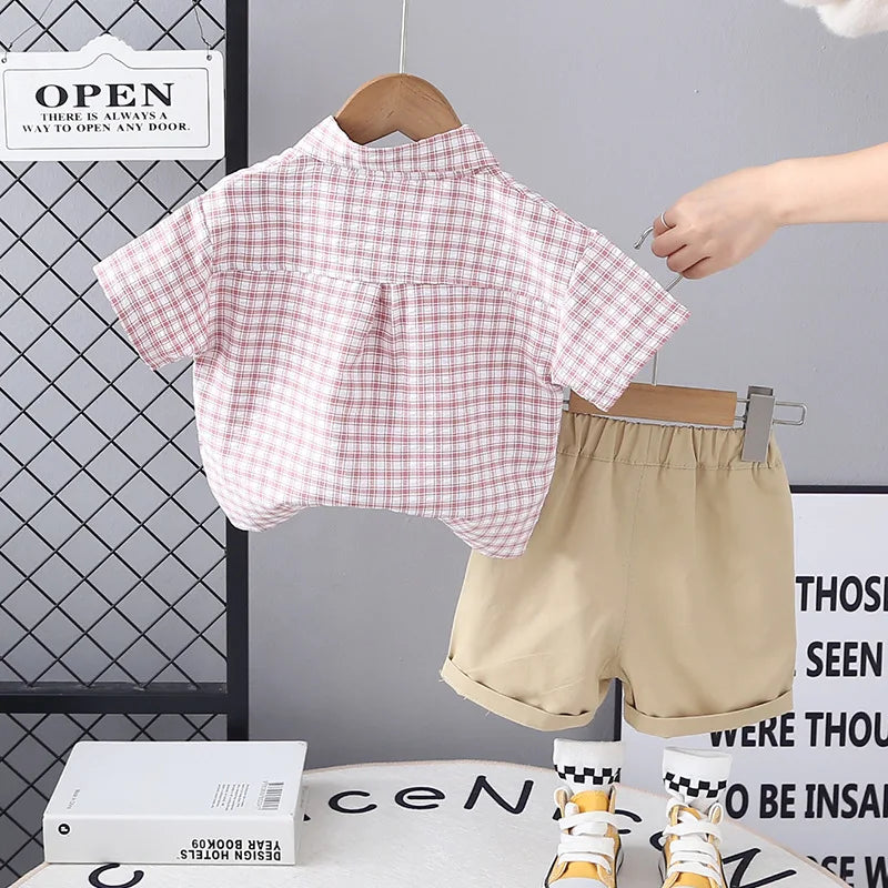 MQTIME - Summer Toddler Girl Outfits Set Korean Kids Clothes Fashion Plaid Cotton Short Sleeve Tops+Shorts Baby Boutique Clothing B069