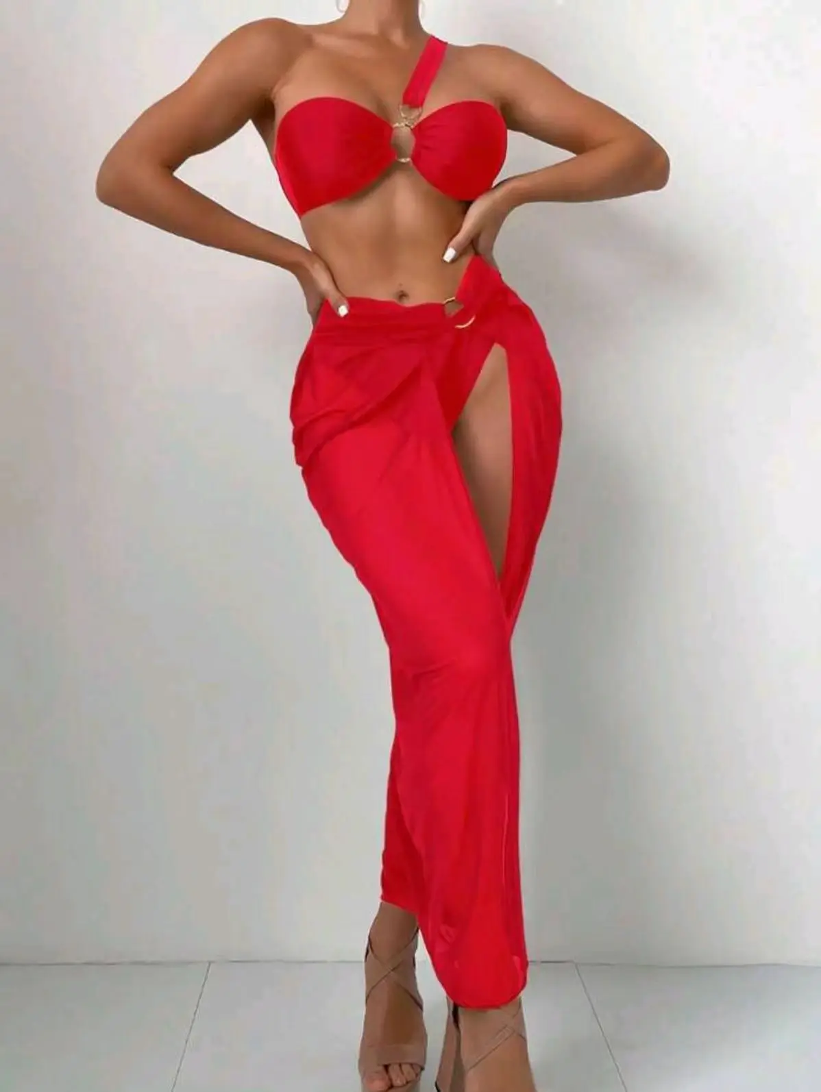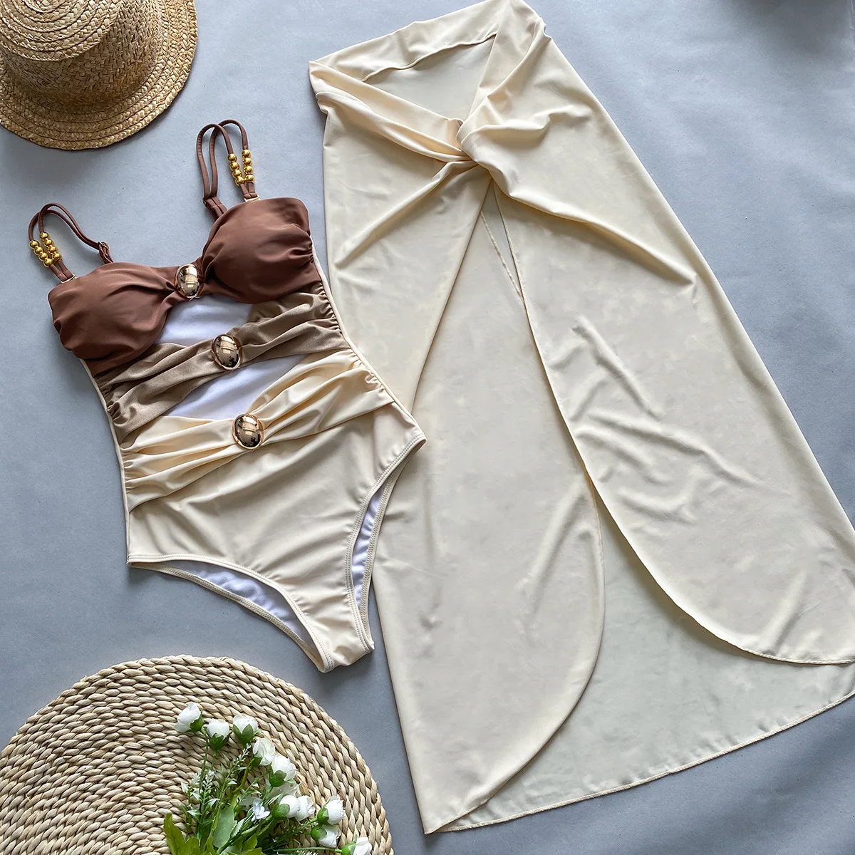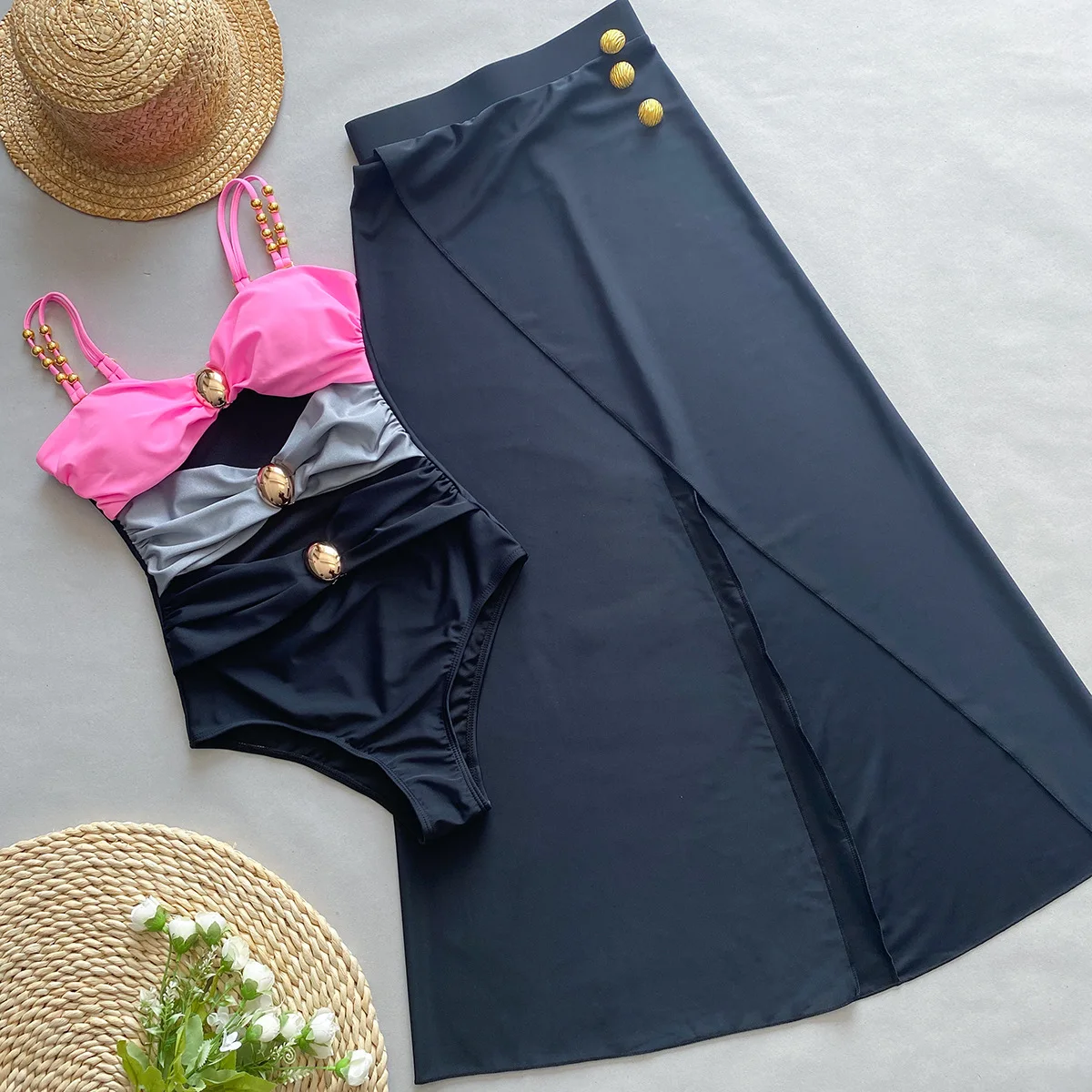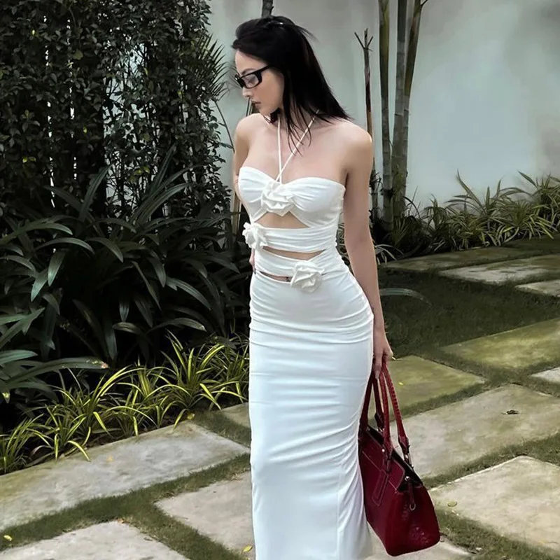 MQTIME - Summer Trending New Banquet Clothes Solid Color Elegant Dress For Women Bandage Hollow Out Slimming Female Skirt Suit