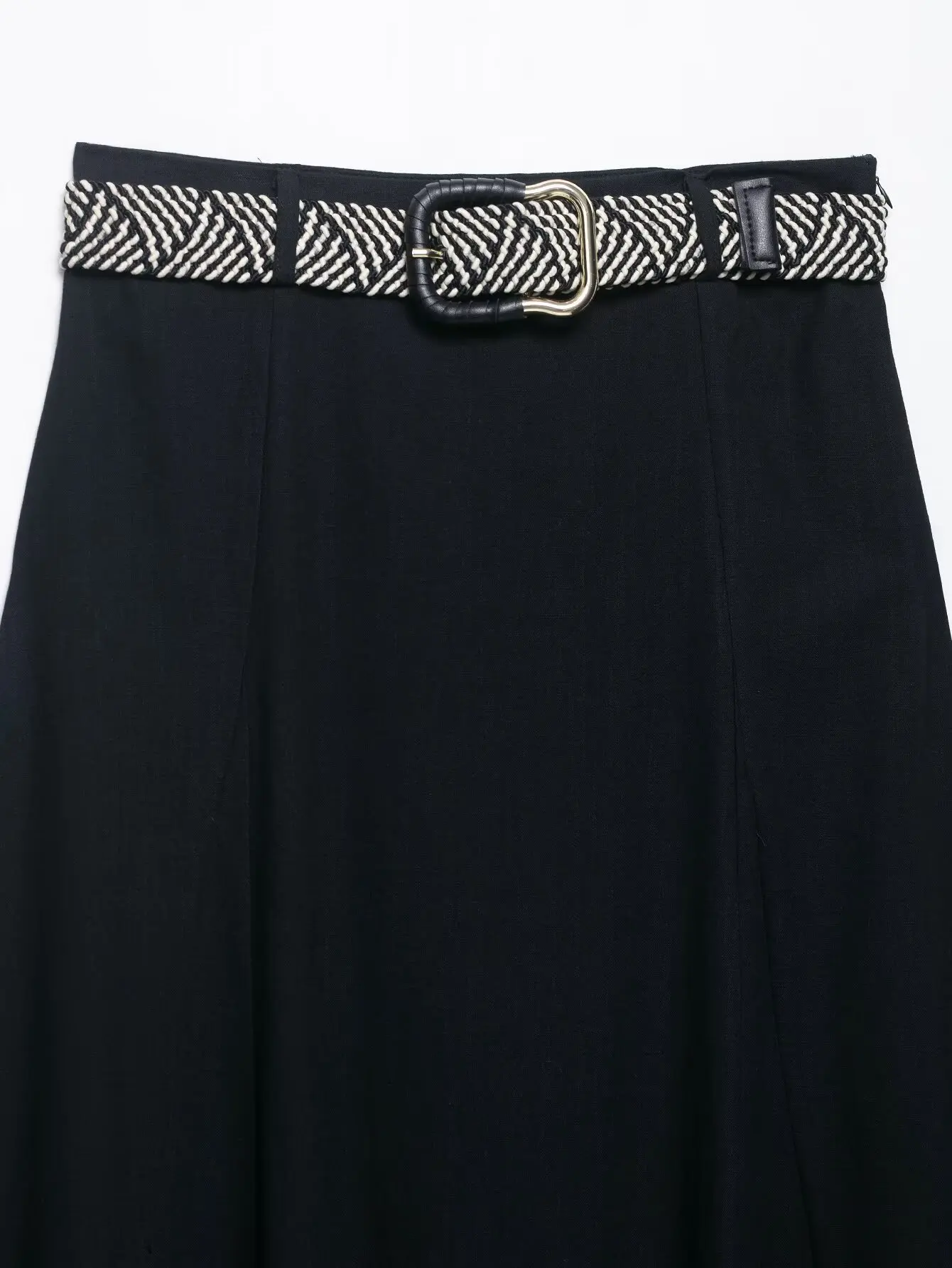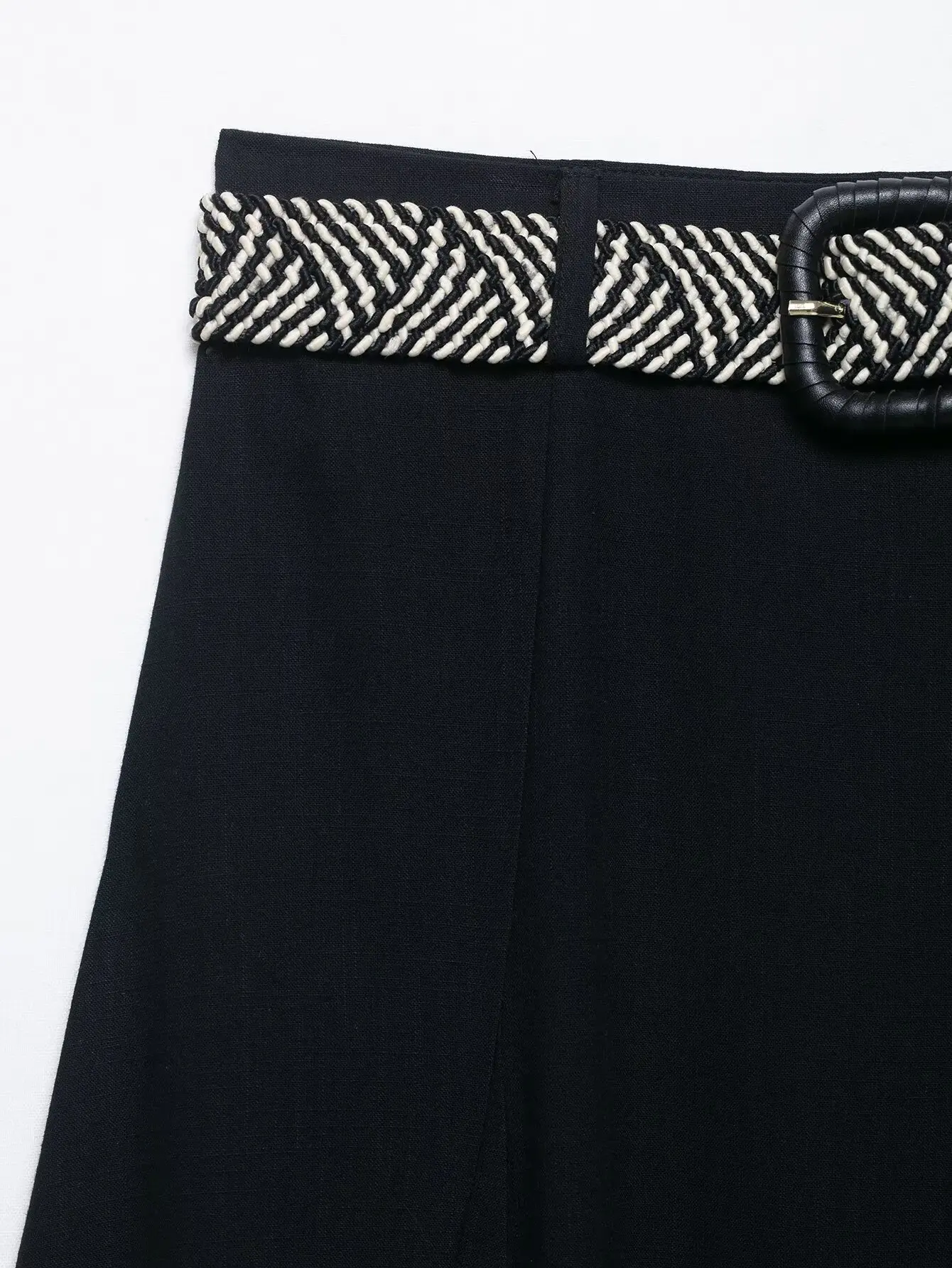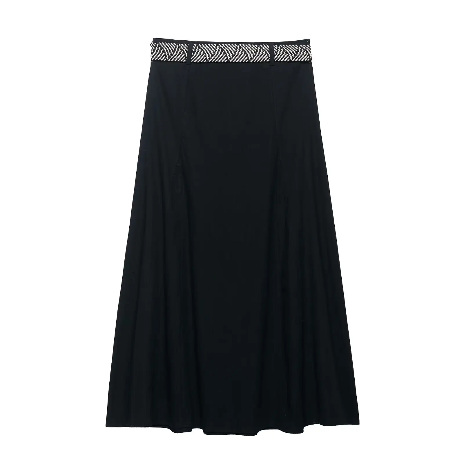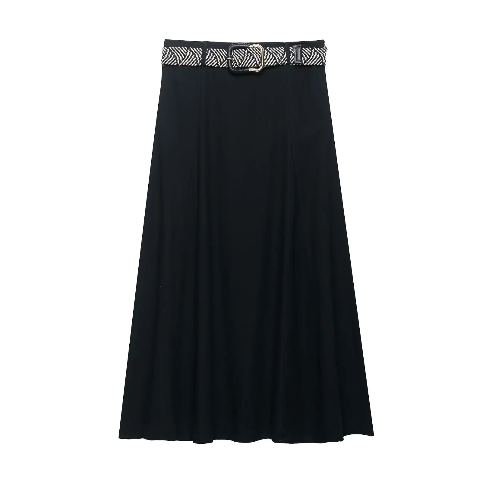 MQTIME - summer women's clothing casual simple versatile matching belt high waist loose mid-length skirt