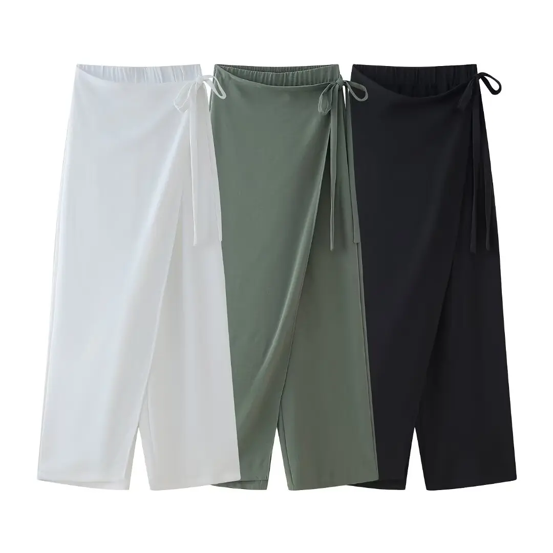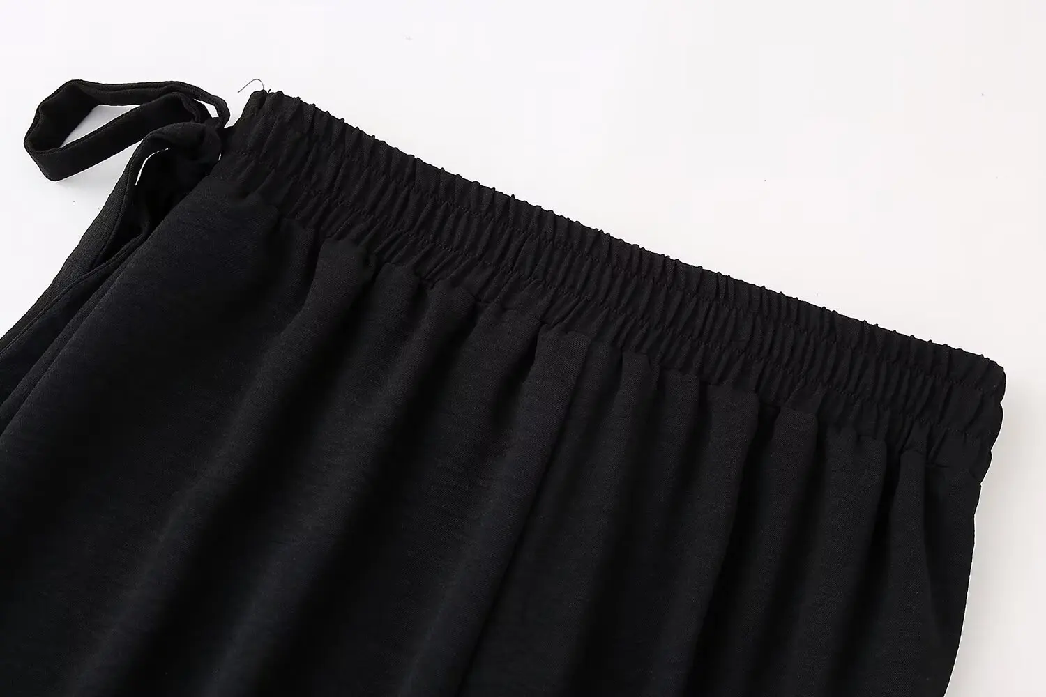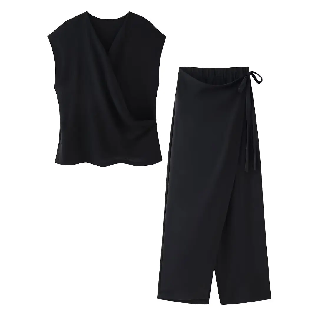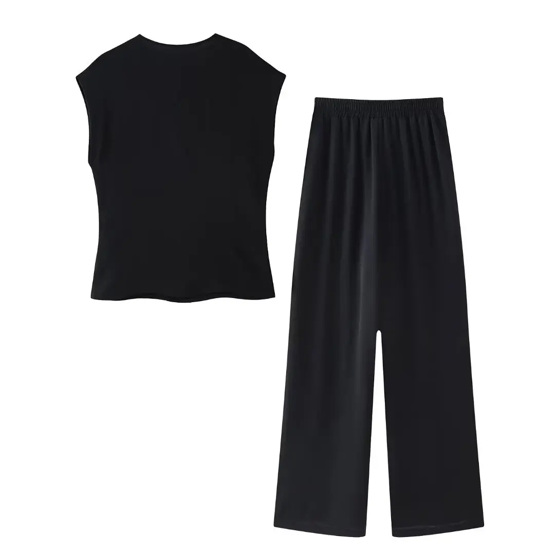 MQTIME - Summer Women's New Suits Solid V-Neck Sleeveless Off Shoulder Top+Side Bow Lace-Up Decoration Elastic Waist Pant Mujer
