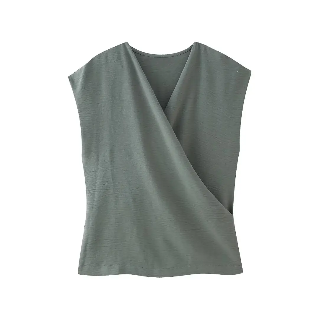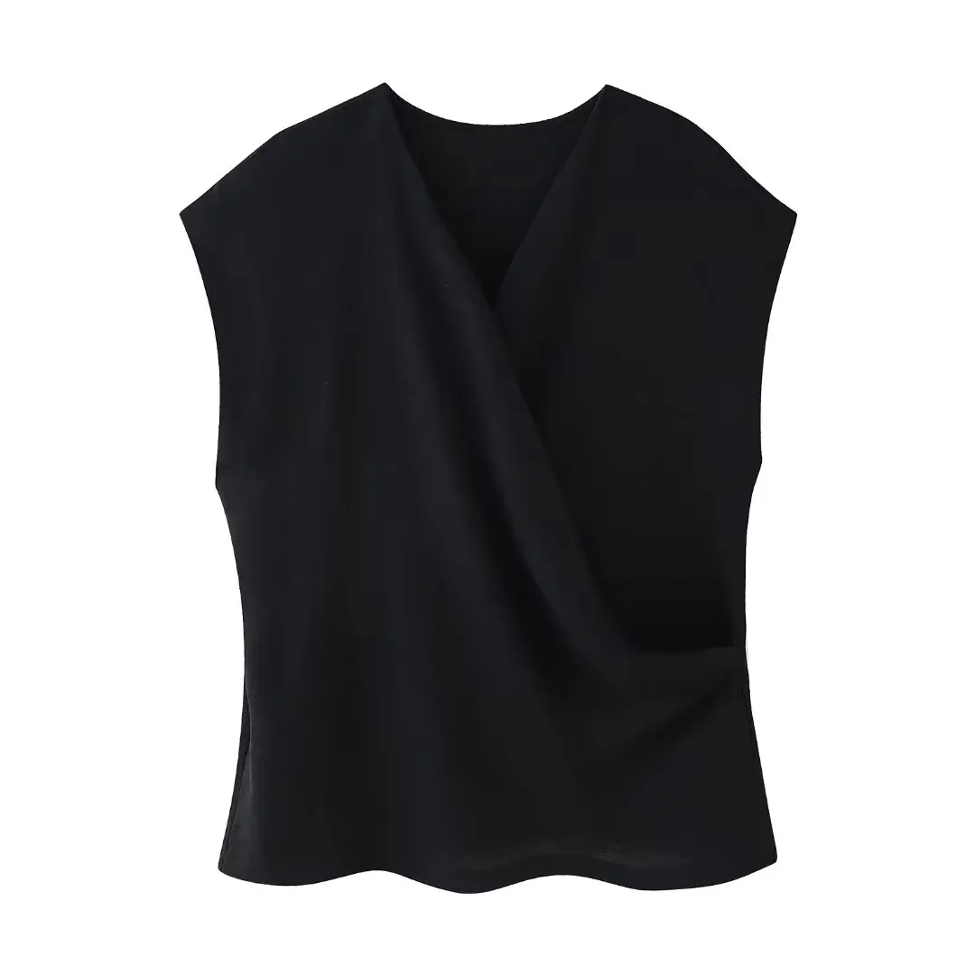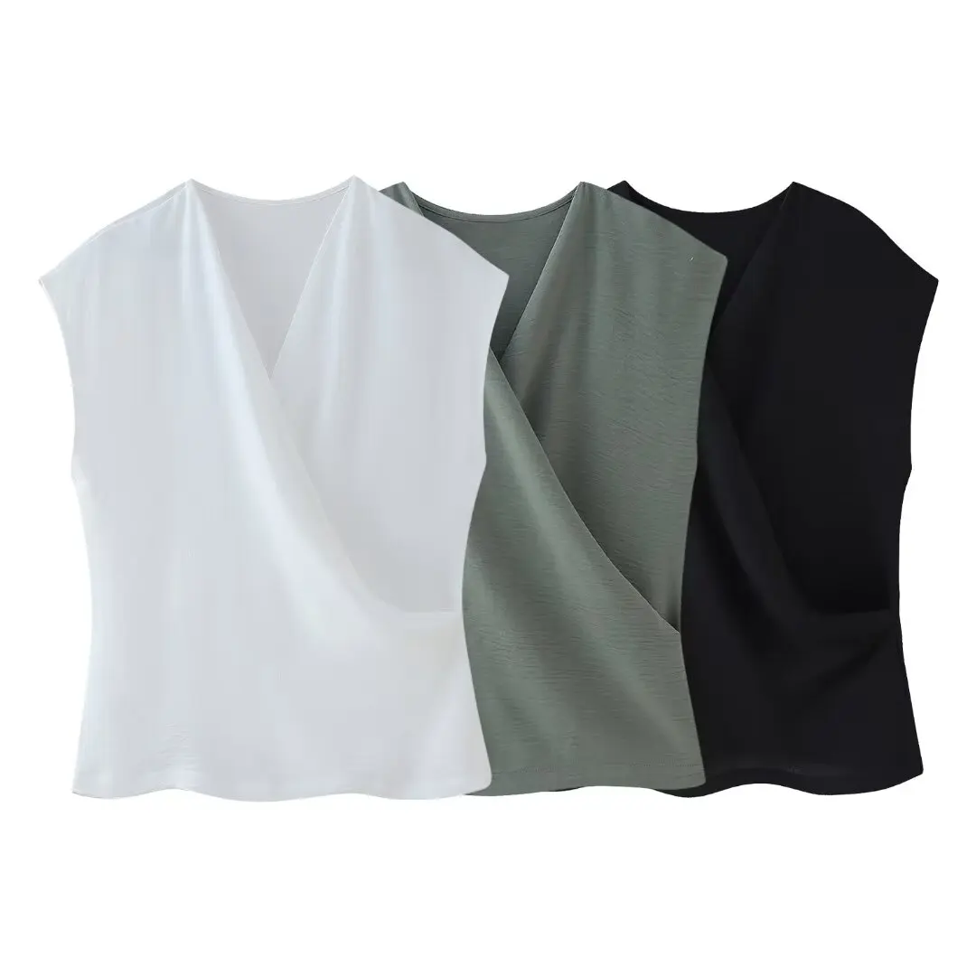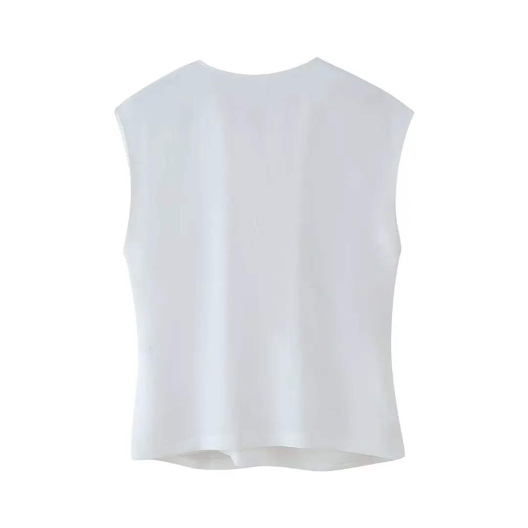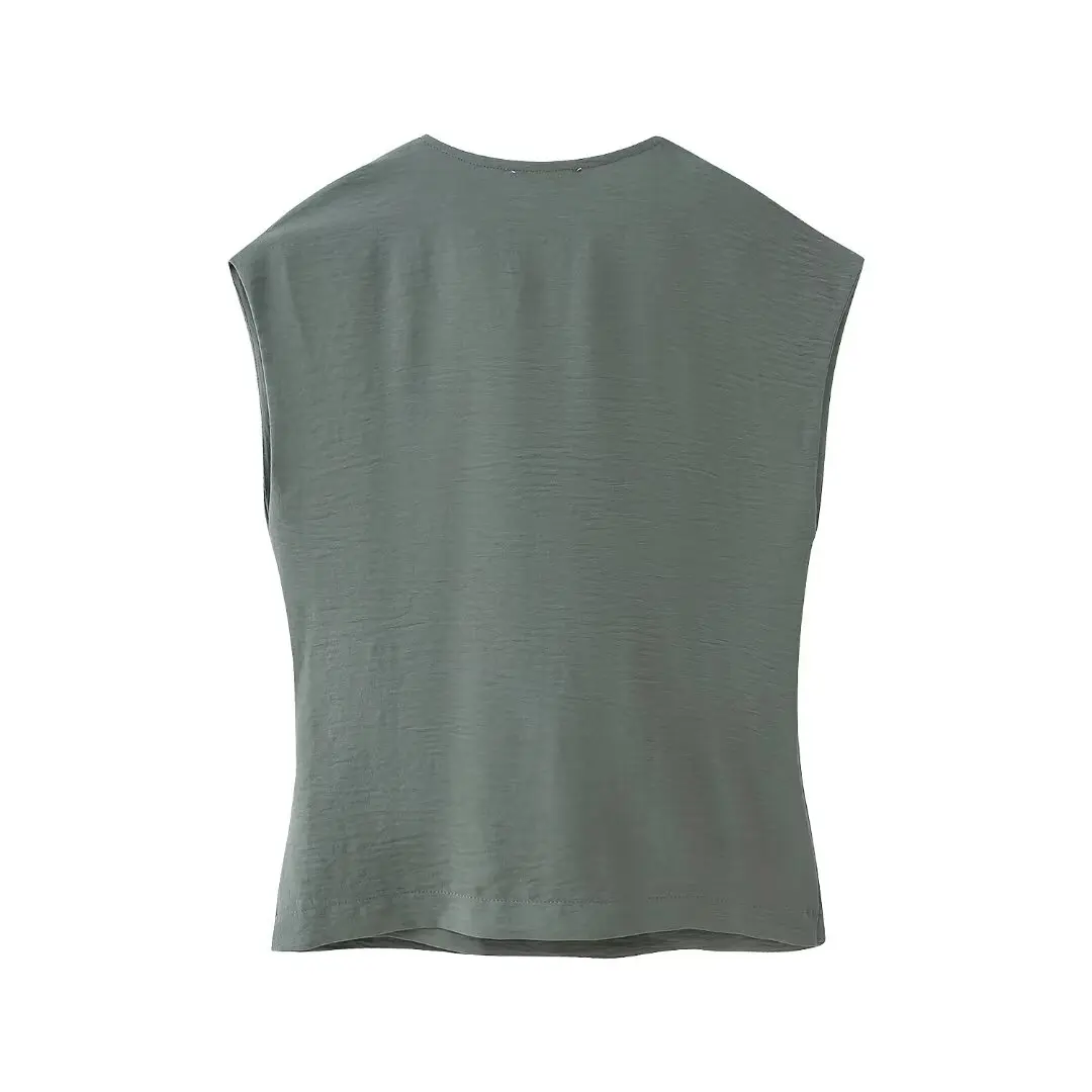 MQTIME - Summer Women's New Suits Solid V-Neck Sleeveless Off Shoulder Top+Side Bow Lace-Up Decoration Elastic Waist Pant Mujer