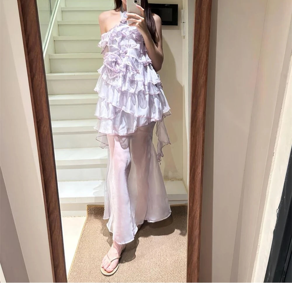 MQTIME - Sweet 3D Rose Off Shoulder Dress Summer New Slim Mesh Skirt Set Women