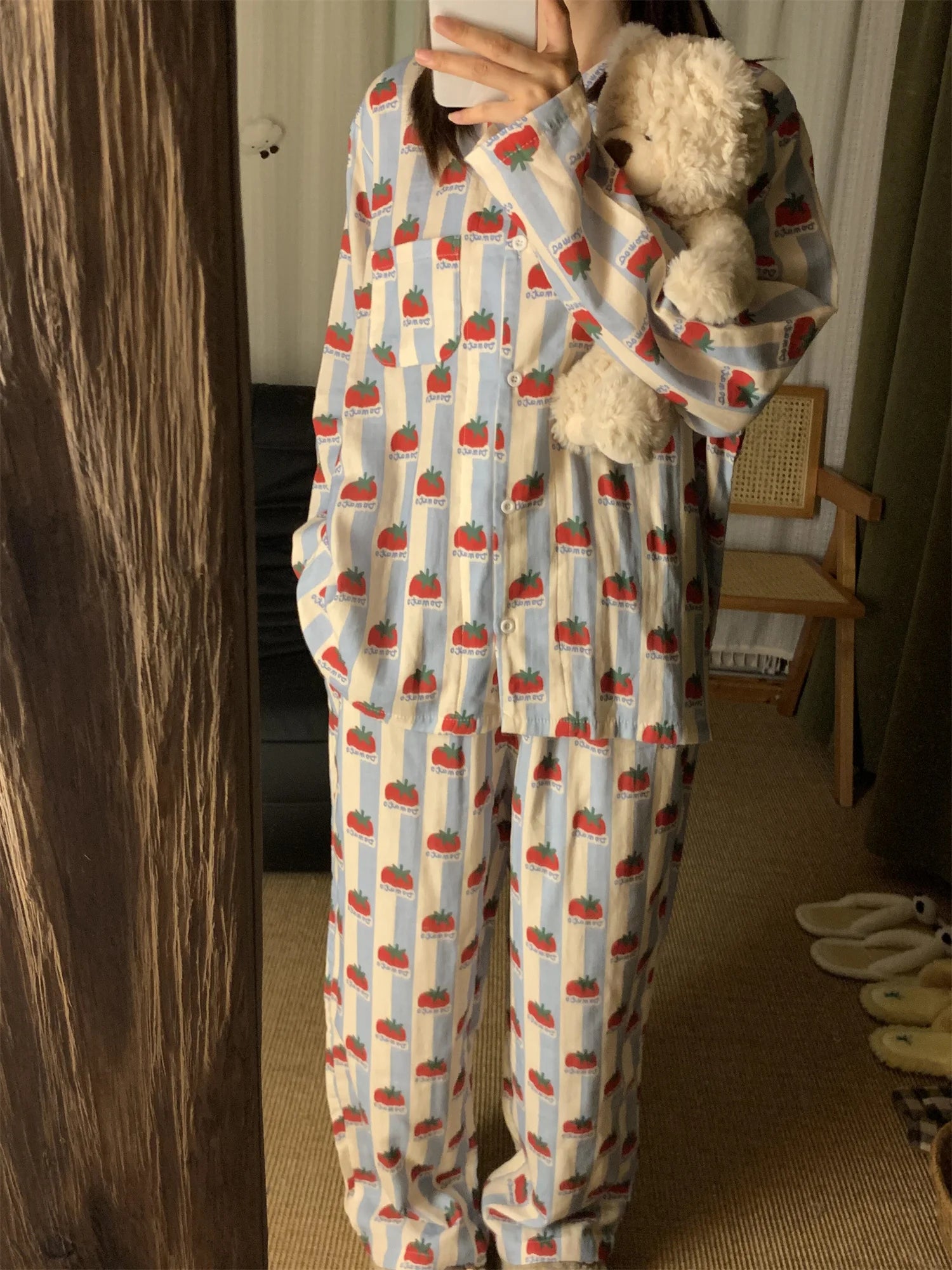 MQTIME - Sweet ato Print Long Sve Spwear Set Women's Loose Fit Home Clothes 2025 Spring New Sle plus Size Comfortable Pajamas