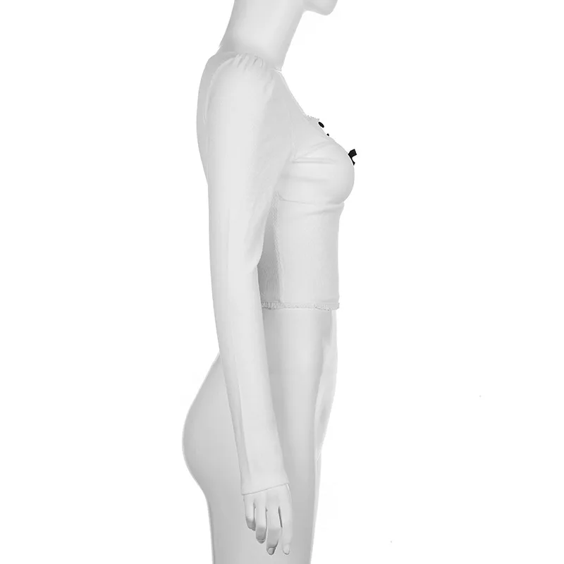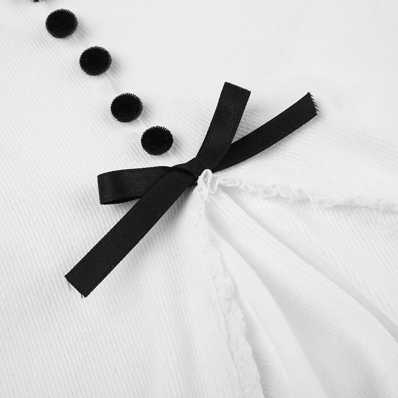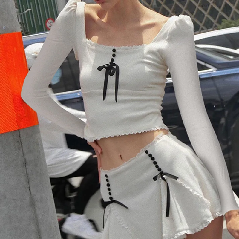 MQTIME  - Sweet Girl 2 Piece Sets Y2k Style Bow Lace Bubble Sleeves T-shirt & Mini Skirt Suits Spicy Two Pieces White Outfits for Women