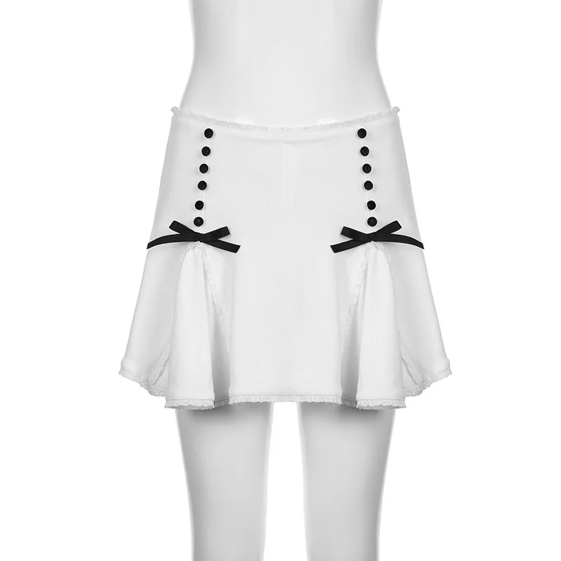 MQTIME - Sweet Girl 2 Piece Sets Y2k Style Bow Lace Bubble Sleeves T-shirt & Mini Skirt Suits Spicy Two Pieces White Outfits for Women