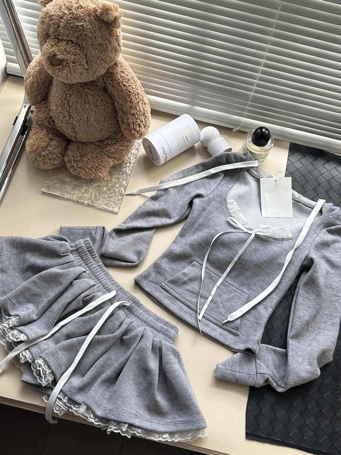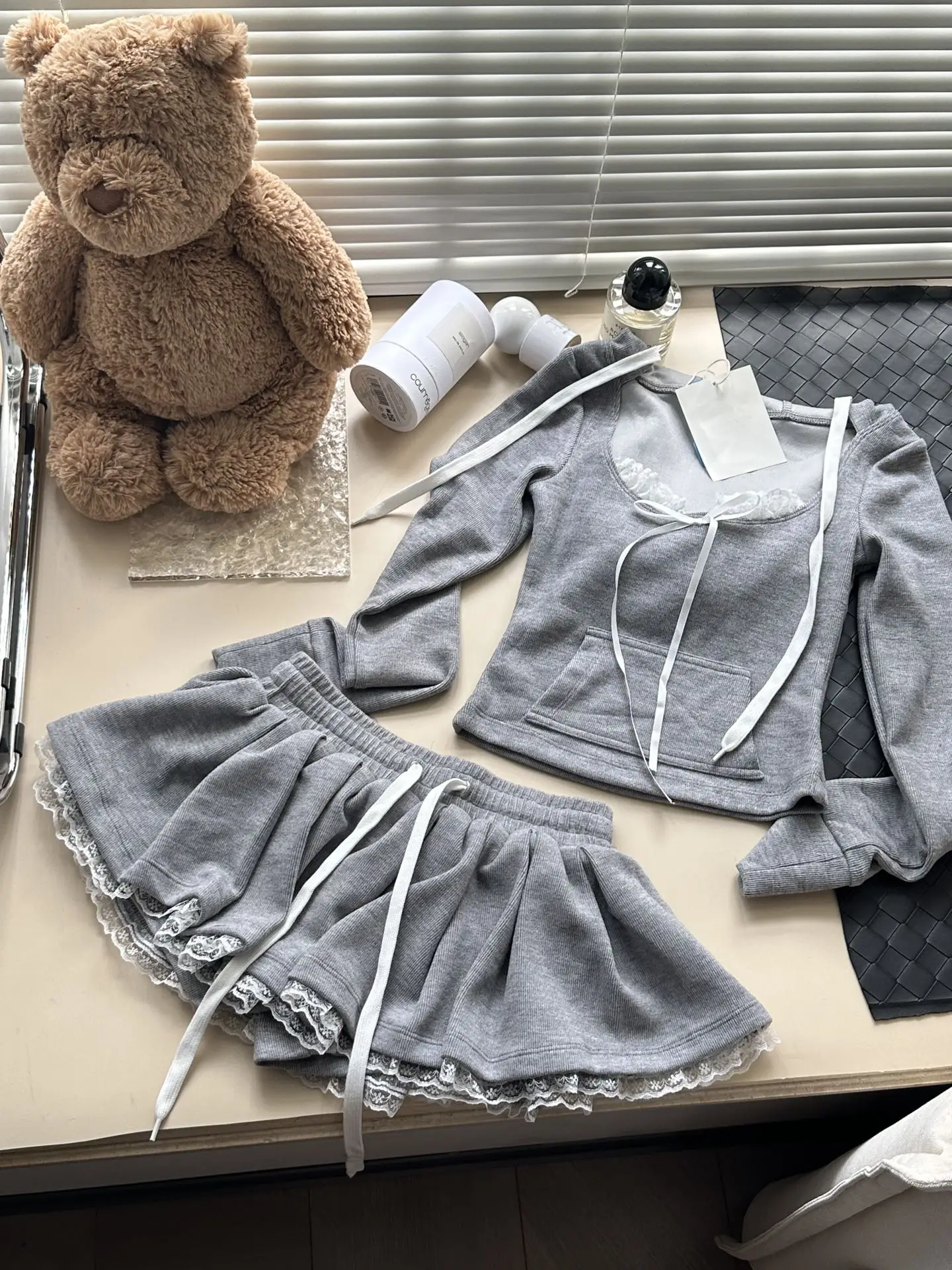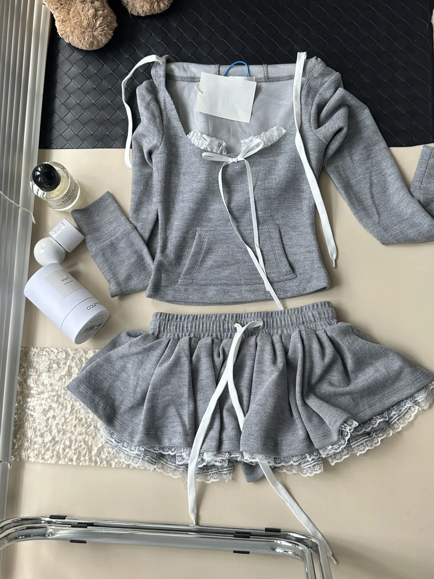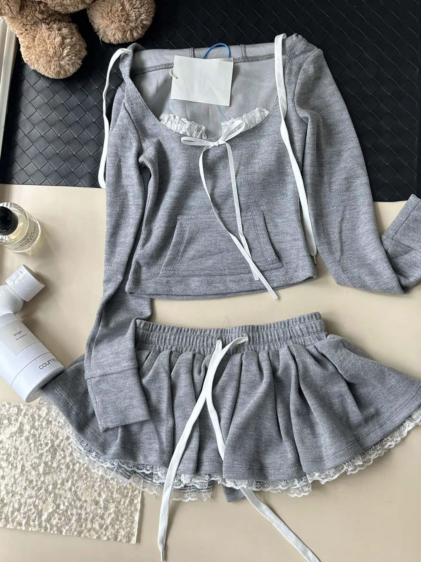 MQTIME - Sweet Hot Girl Suit Women's Autumn Square Collar Slim Top High Waist A-line Lace Skirt Two-piece Set Fashion Female Clothes