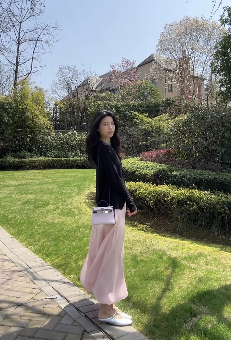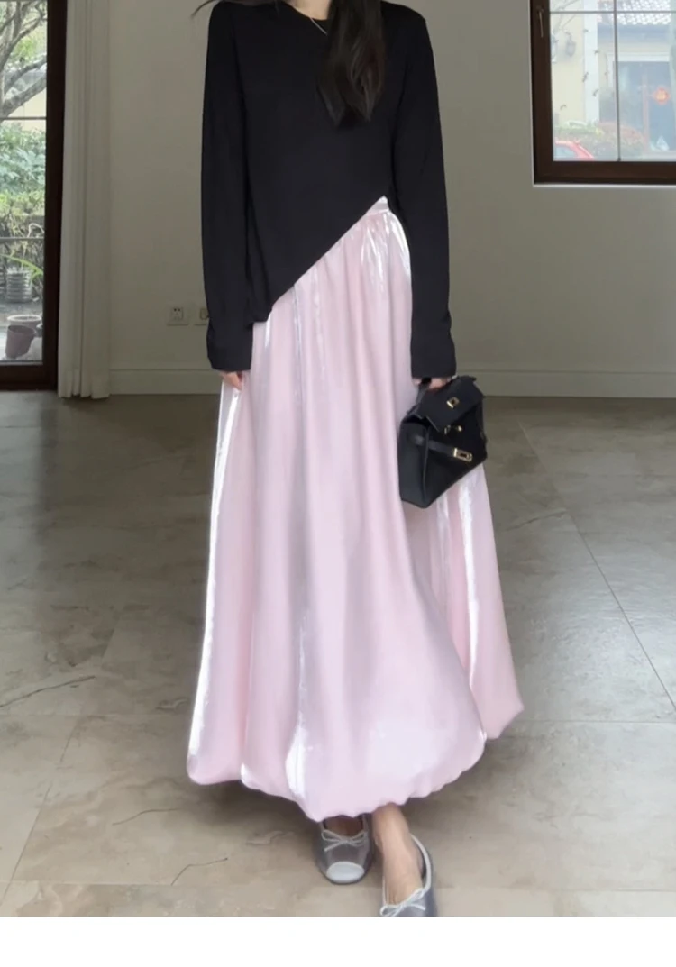 MQTIME - Sweet Pink Ball Gown Skirts Women Elegant Elastic Wasit Maxi Long Skirt Spring Summer Luxury Korean Fashion Clothing Ins