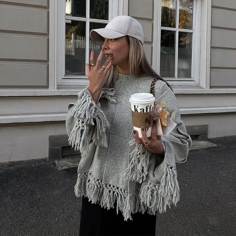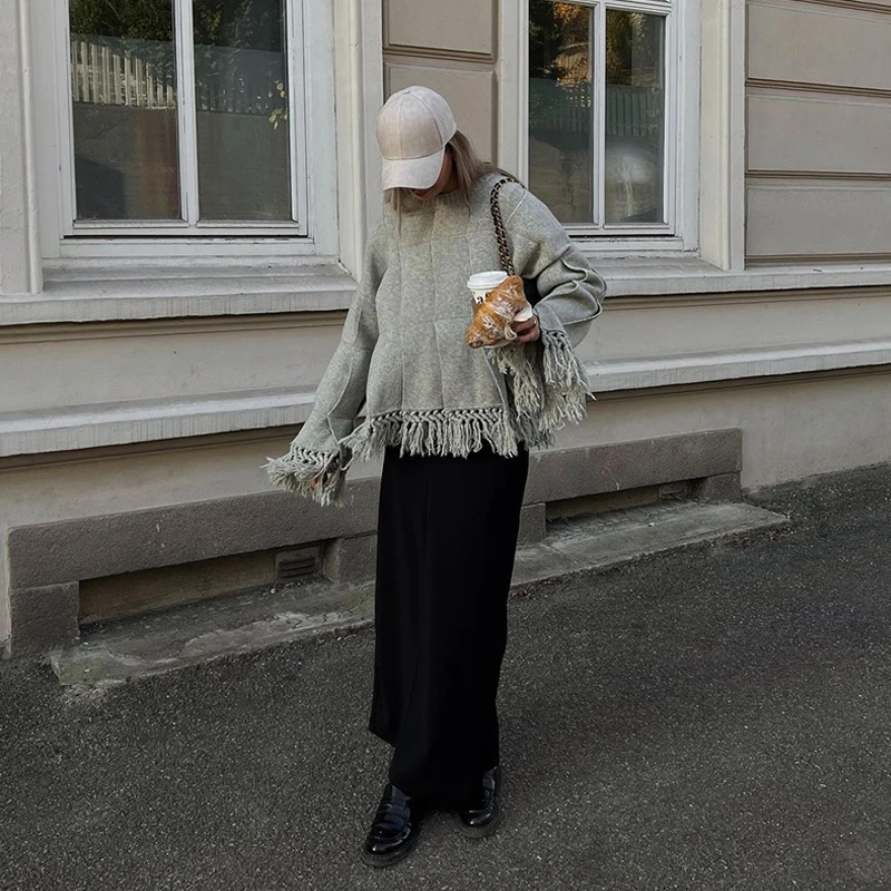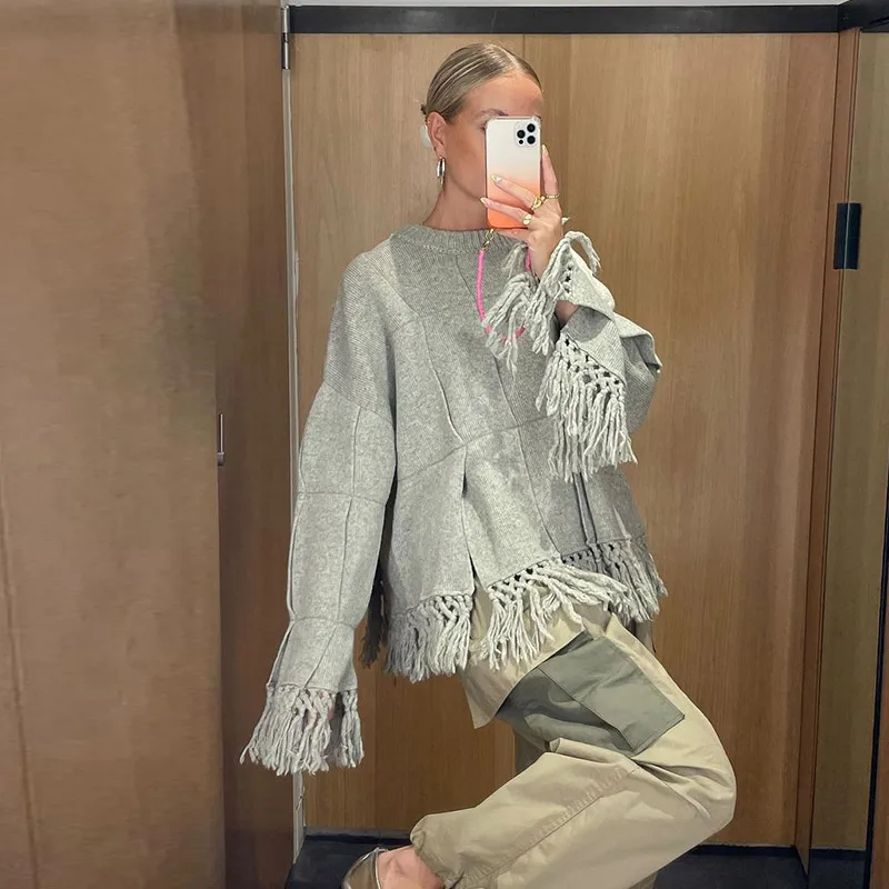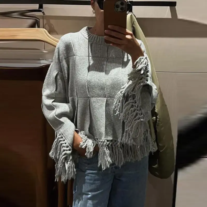 MQTIME - Tassel Knit Solid Women Sweater O Neck Full Sleeve Female Pullover 2024 Elegant Autumn Winter Fashion Loose Lady Knitwear