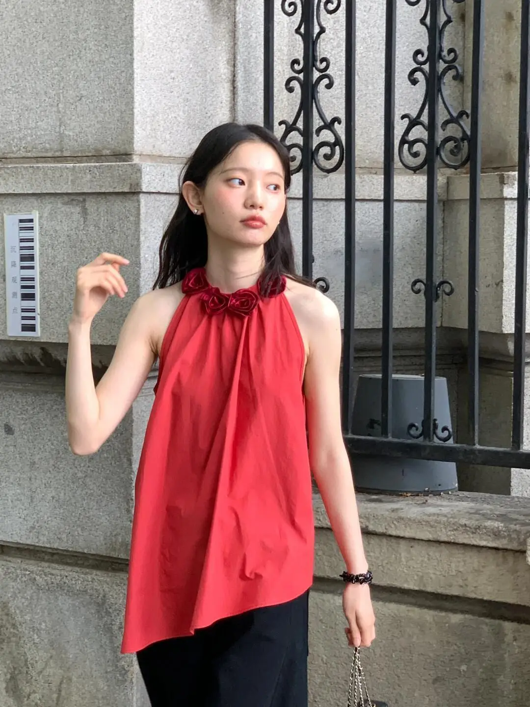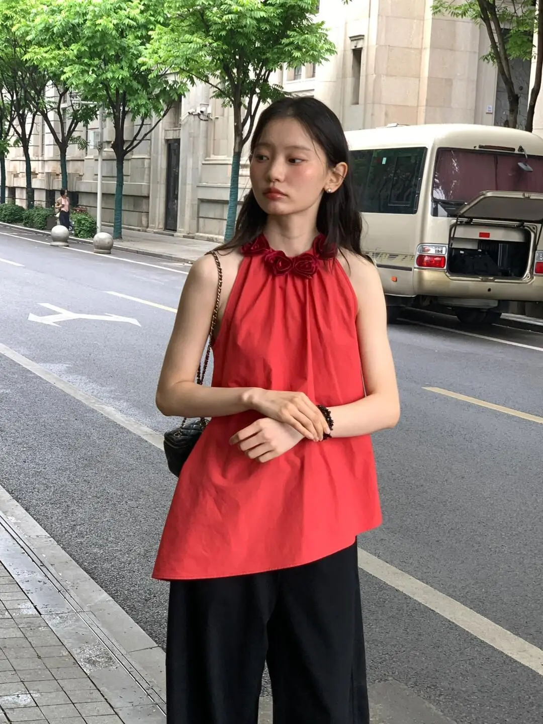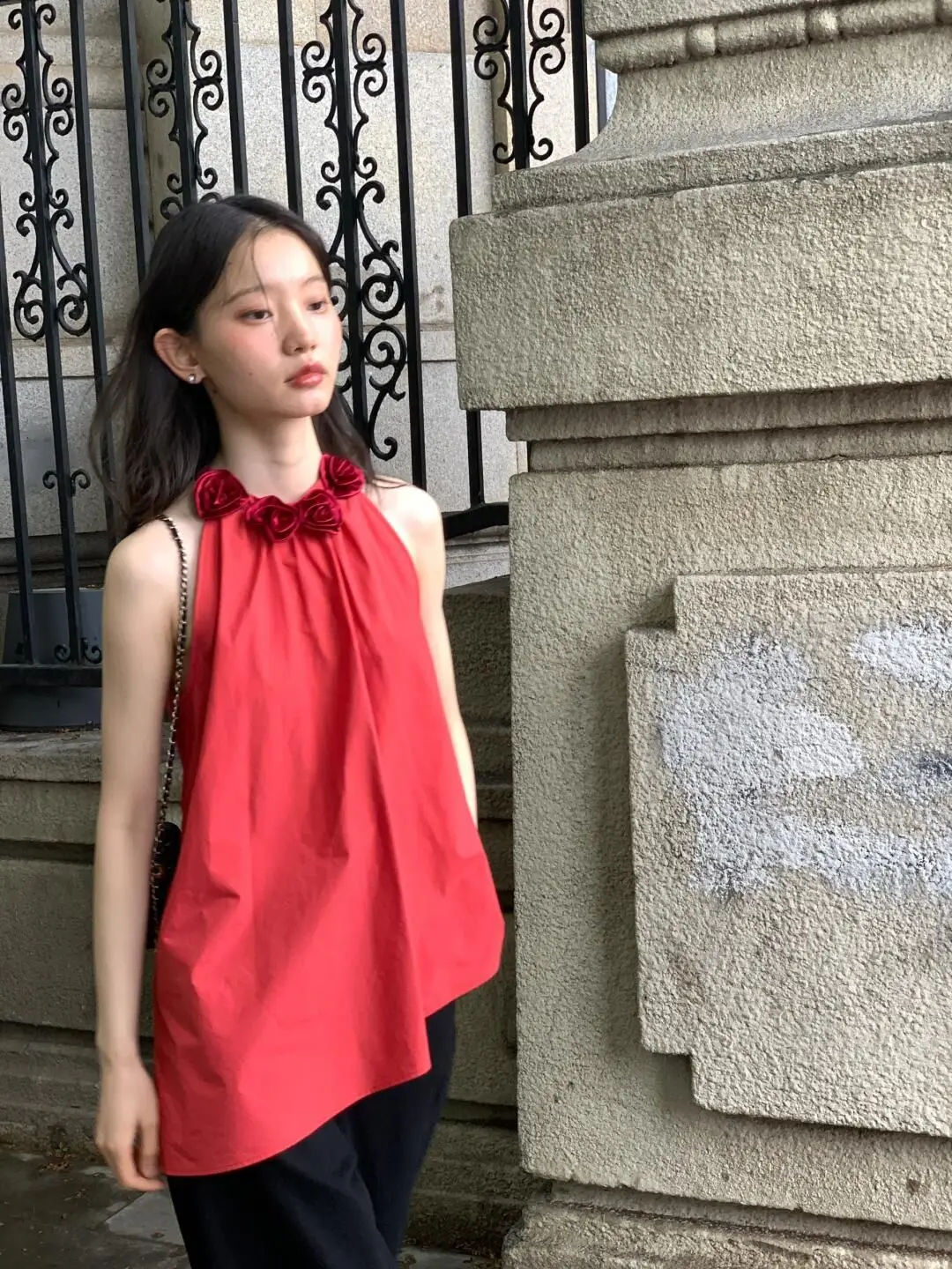 MQTIME  -  Three-dimensional Flower Decoration Halter Tank korean clothing e-girl fairycore 2000s grunge aesthetic korean loose vest summer