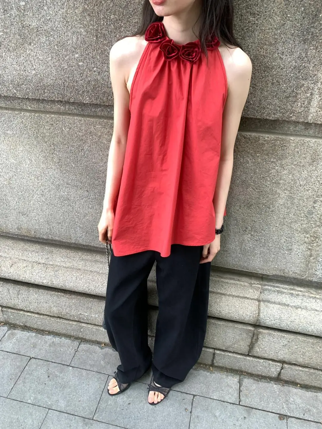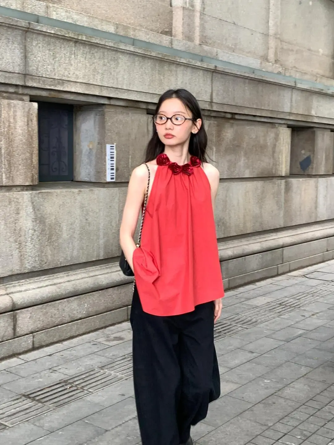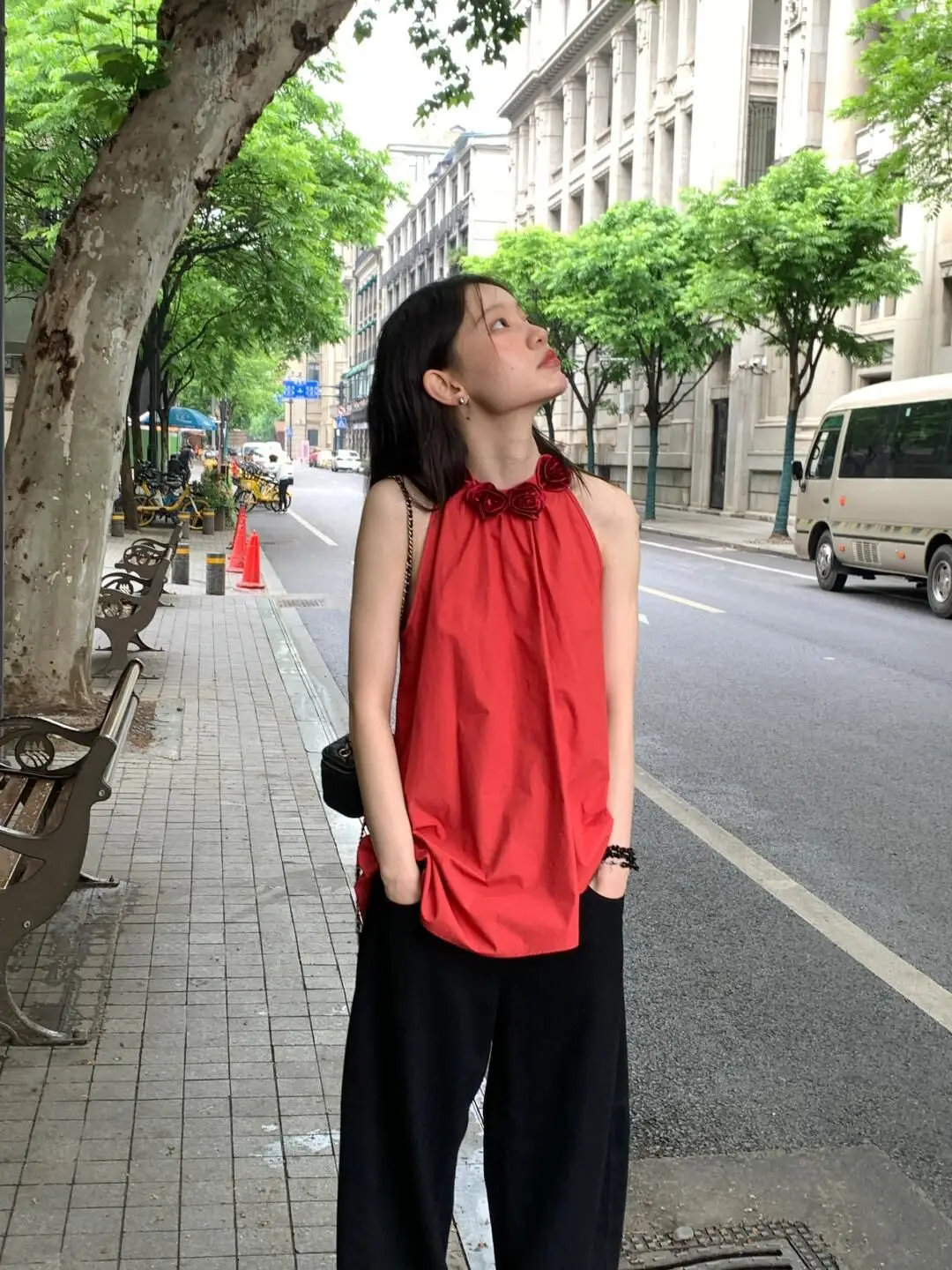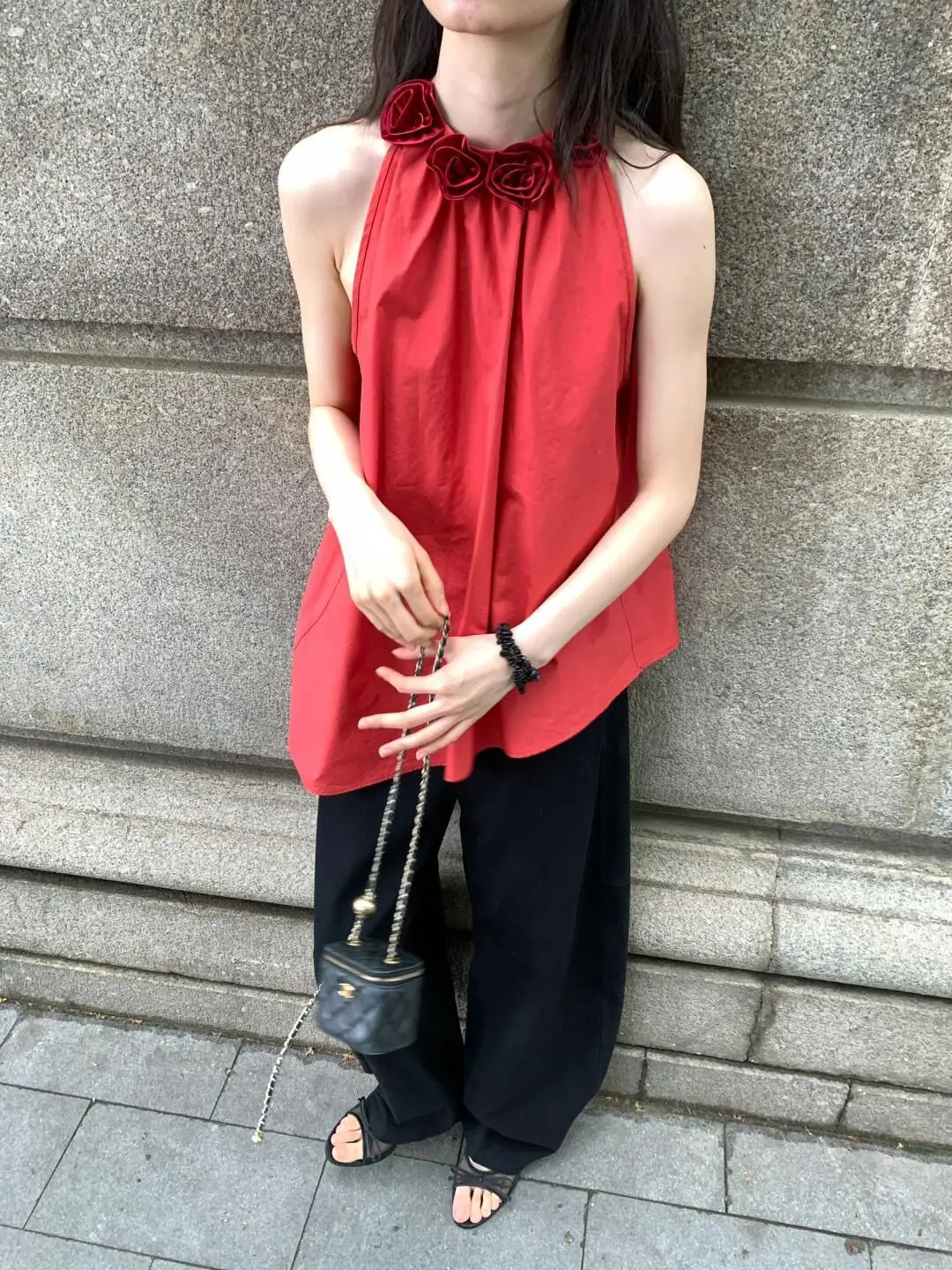 MQTIME  -  Three-dimensional Flower Decoration Halter Tank korean clothing e-girl fairycore 2000s grunge aesthetic korean loose vest summer