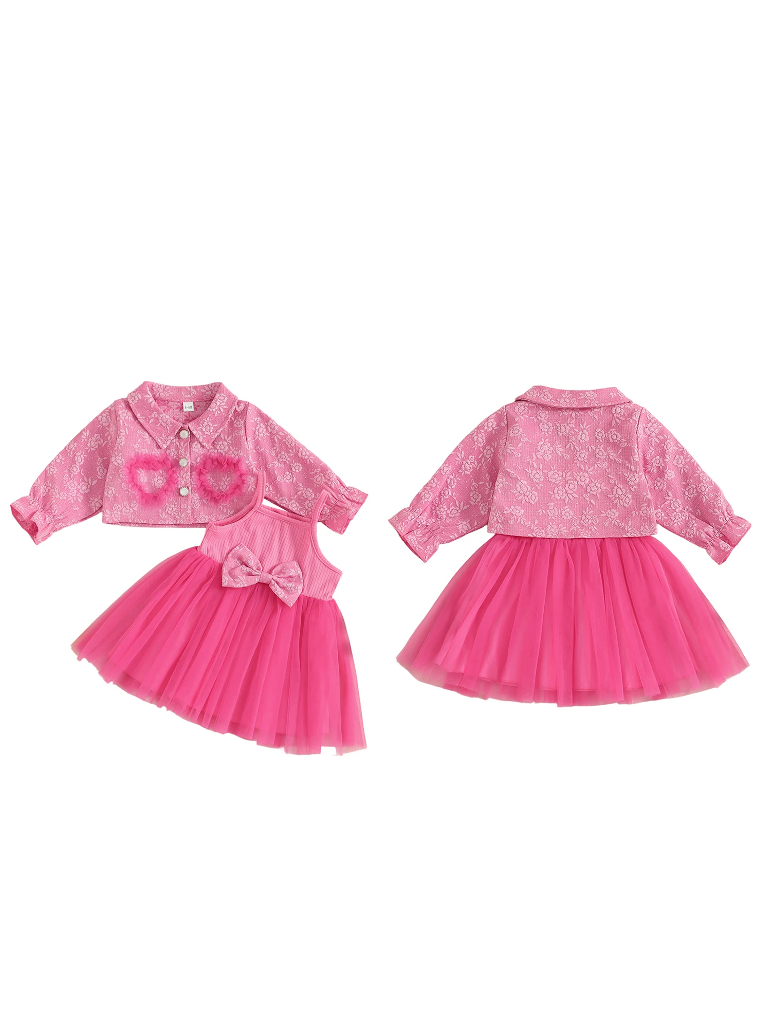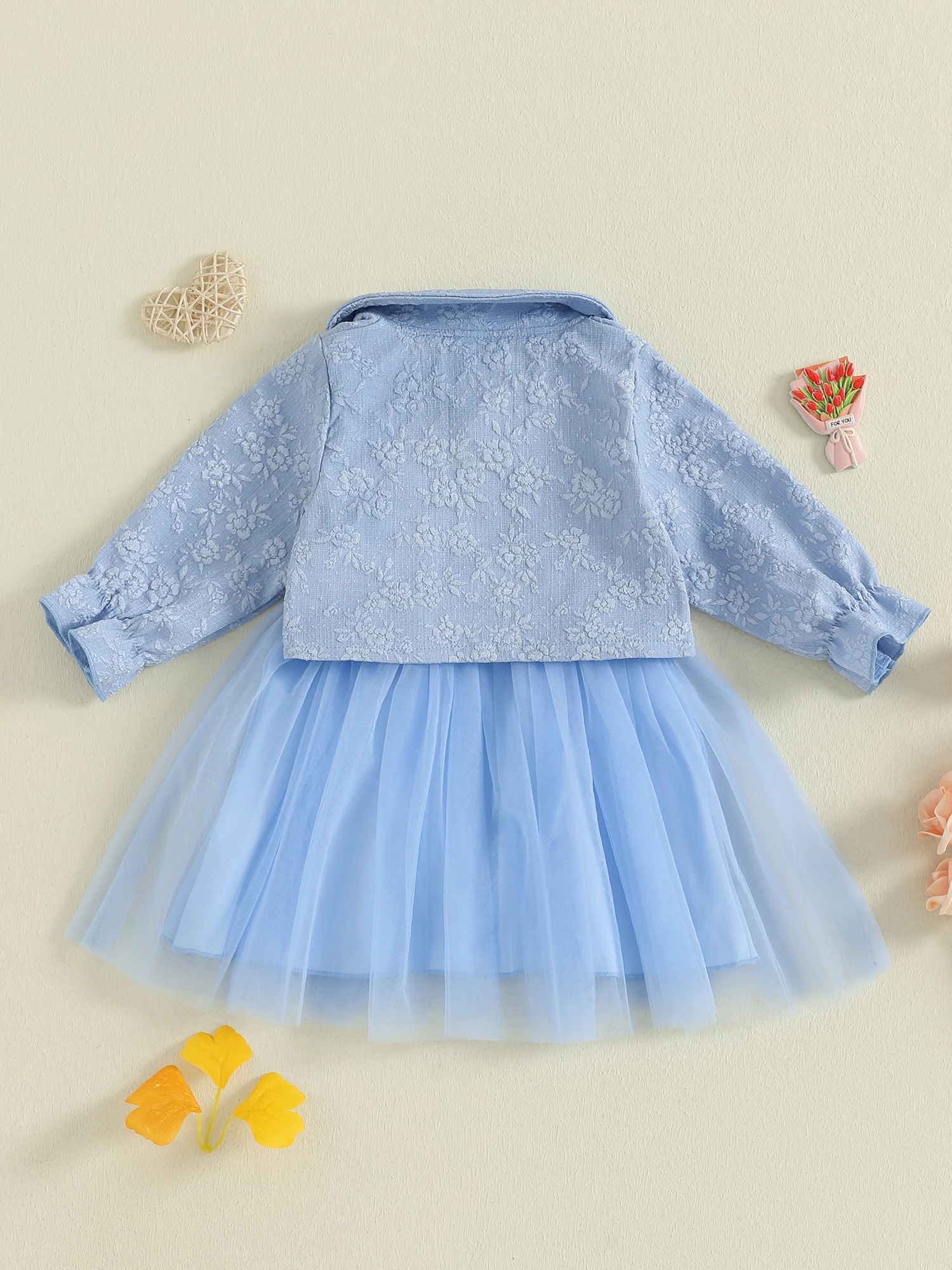 MQTIME - Toddler Girl Autumn Ensemble Quilted Long Sleeve Jacket paired with Tulle Patchwork Cami Dress for a Stylish Look