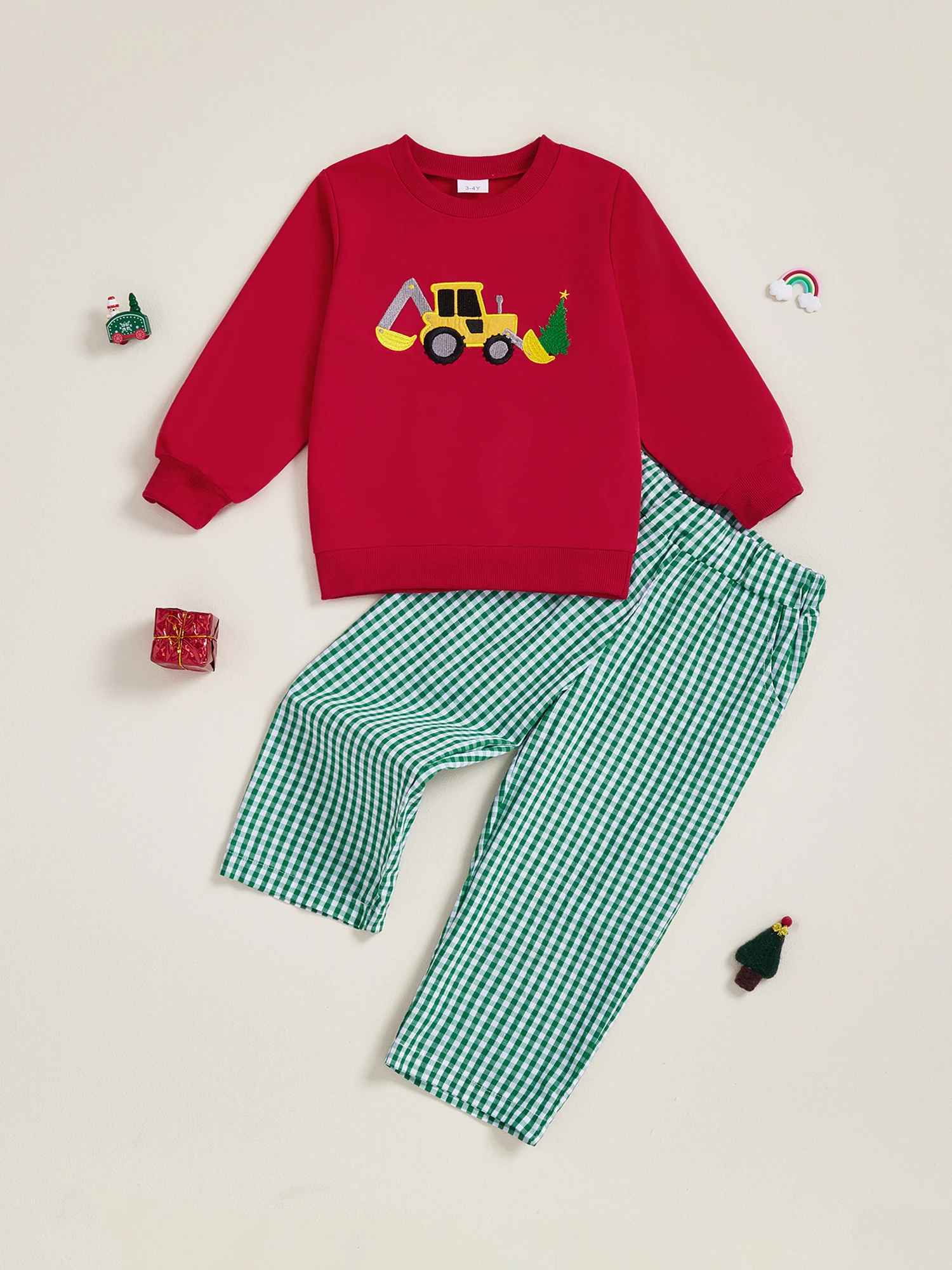 Pattern: Excavator Tree Embroidery and Plaid Print