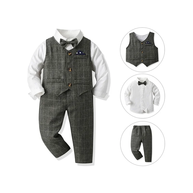MQTIME - Toddler Kids Boys Gentleman Clothing Sets Children Boy Long Sleeve Bowtie White Shirts Tops+Vest+Pants Outfits Suits
