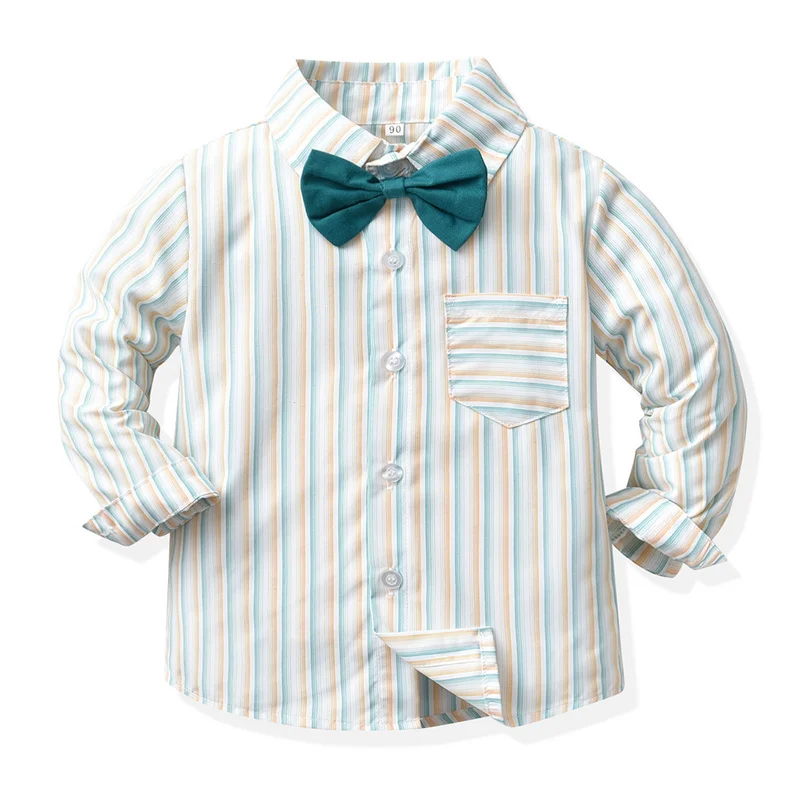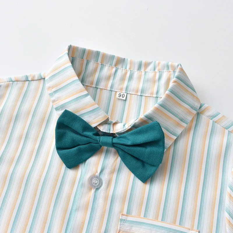 MQTIME - Toddler Kids Boys Gentleman Clothing Sets Long Sleeve Bowtie Striped Shirt+Suspenders Pants Little Boy 2PCS Outfits