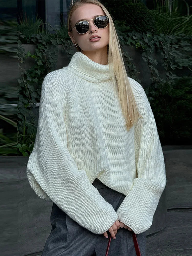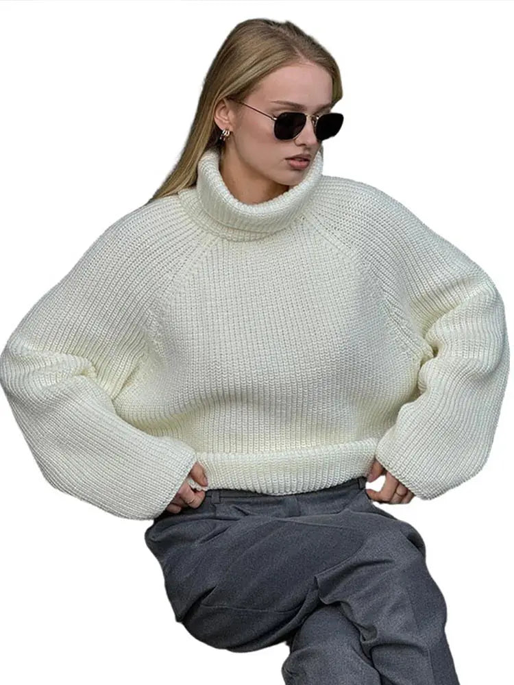 MQTIME  -  Turn-down Collar Back Split Sweater Women Elegant Full Sleeve Knitted Loose Fit Top Lady early autumn Chic Casual knit top
