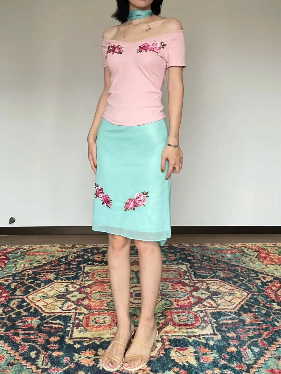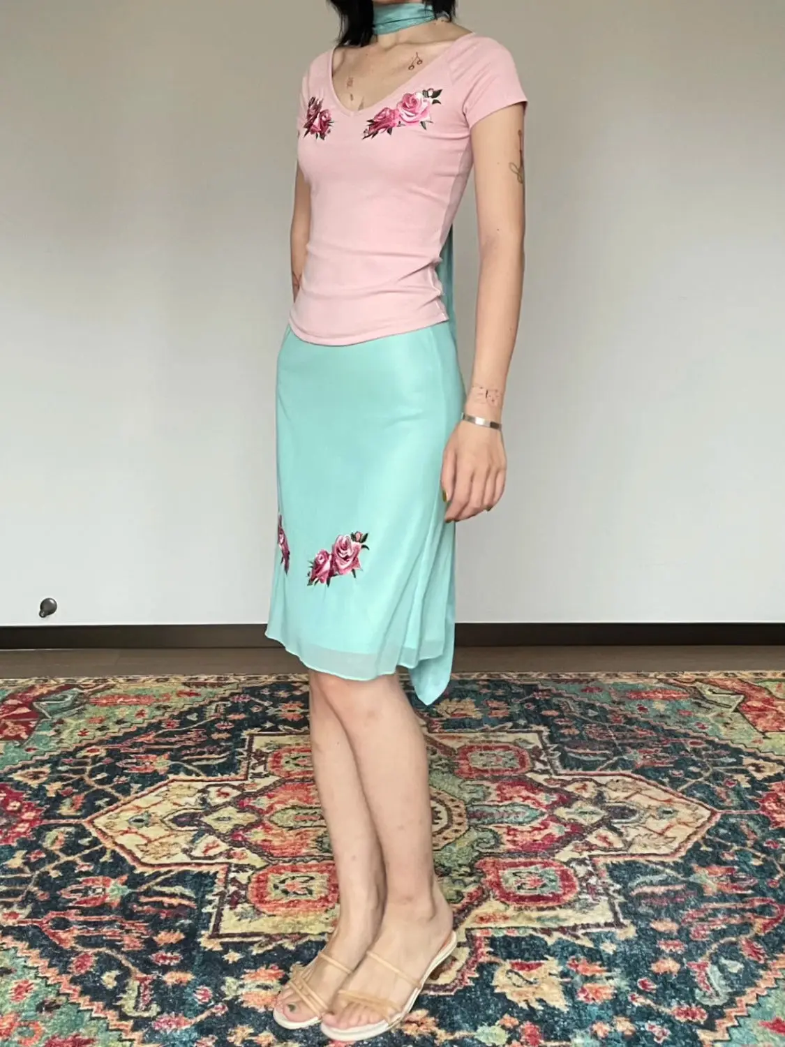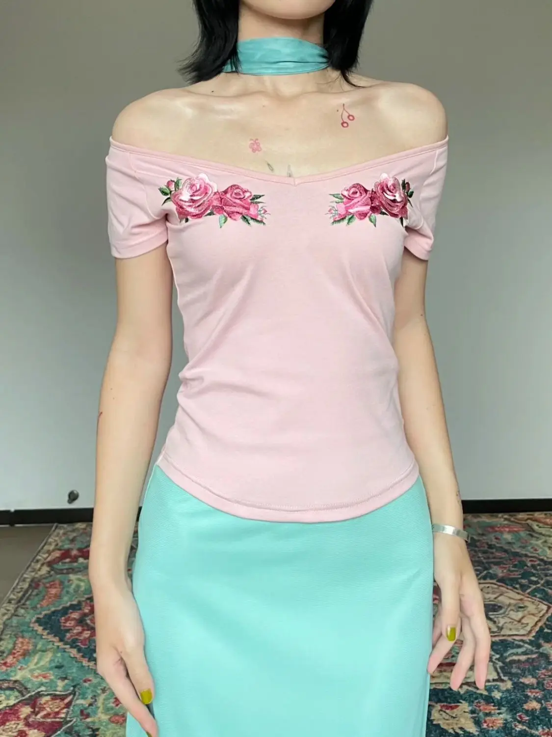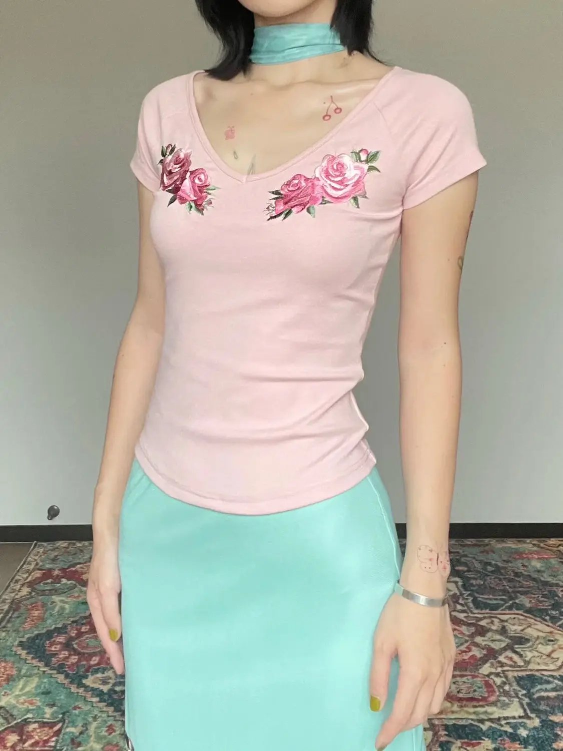 MQTIME - Two Piece Set,women suit crop top and skirt suits,flower print v-neck t-shirt fairycore 00s aesthetic skirts set y2k cute tshirt