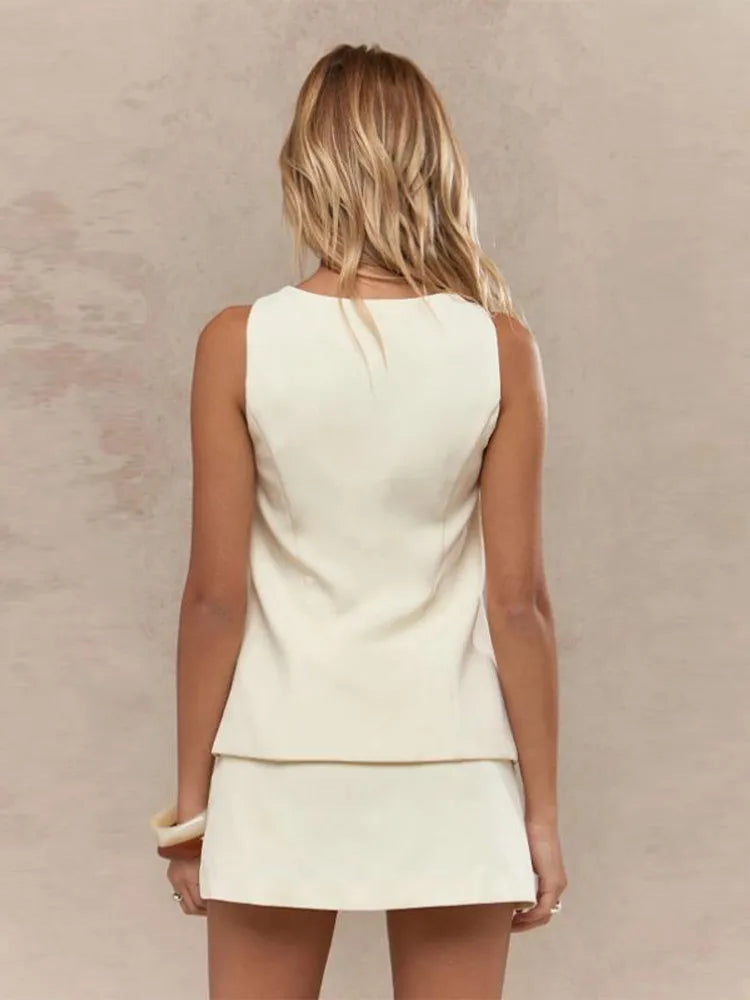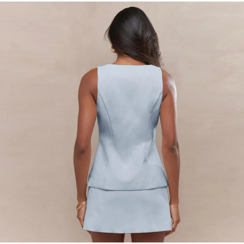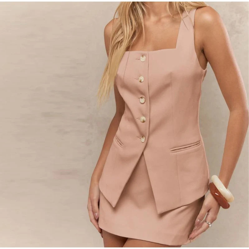 MQTIME - Urban Vest Mini Skirt Set Women Fashion Single-breasted Tank Slim Hip Package Mini Skirts 2025 New Summer Lady Suit Summer