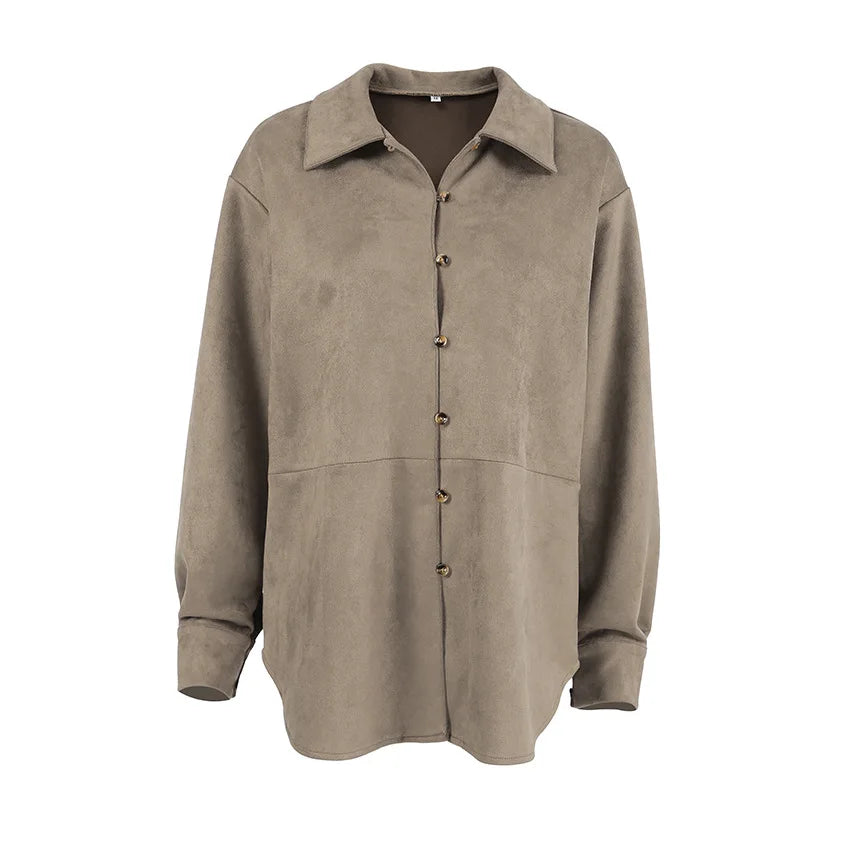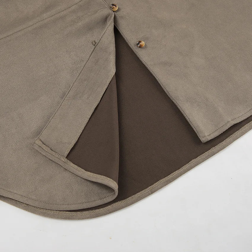 MQTIME - Vintage Brown Suede Shirt Fall-winter Small Loose Midi Cardigan Top Women