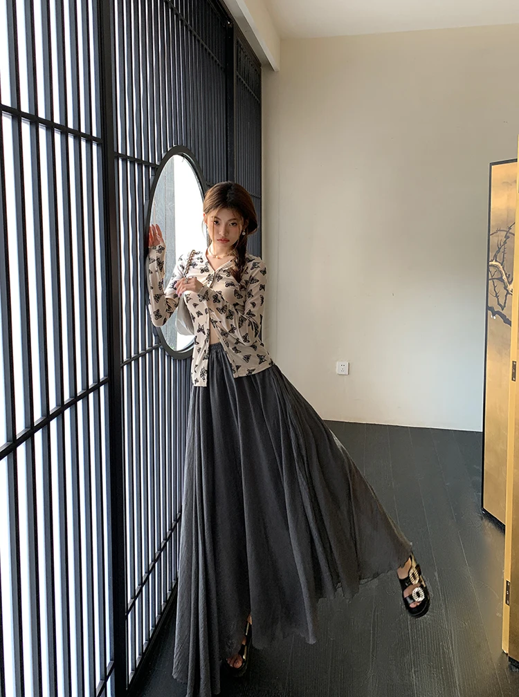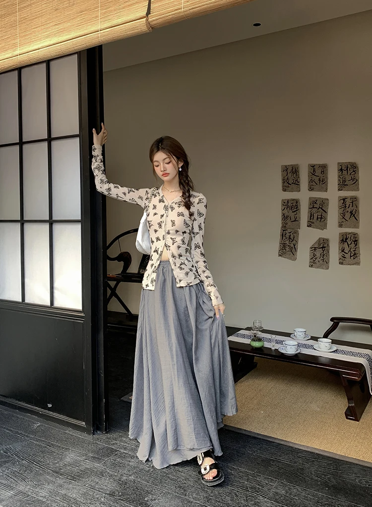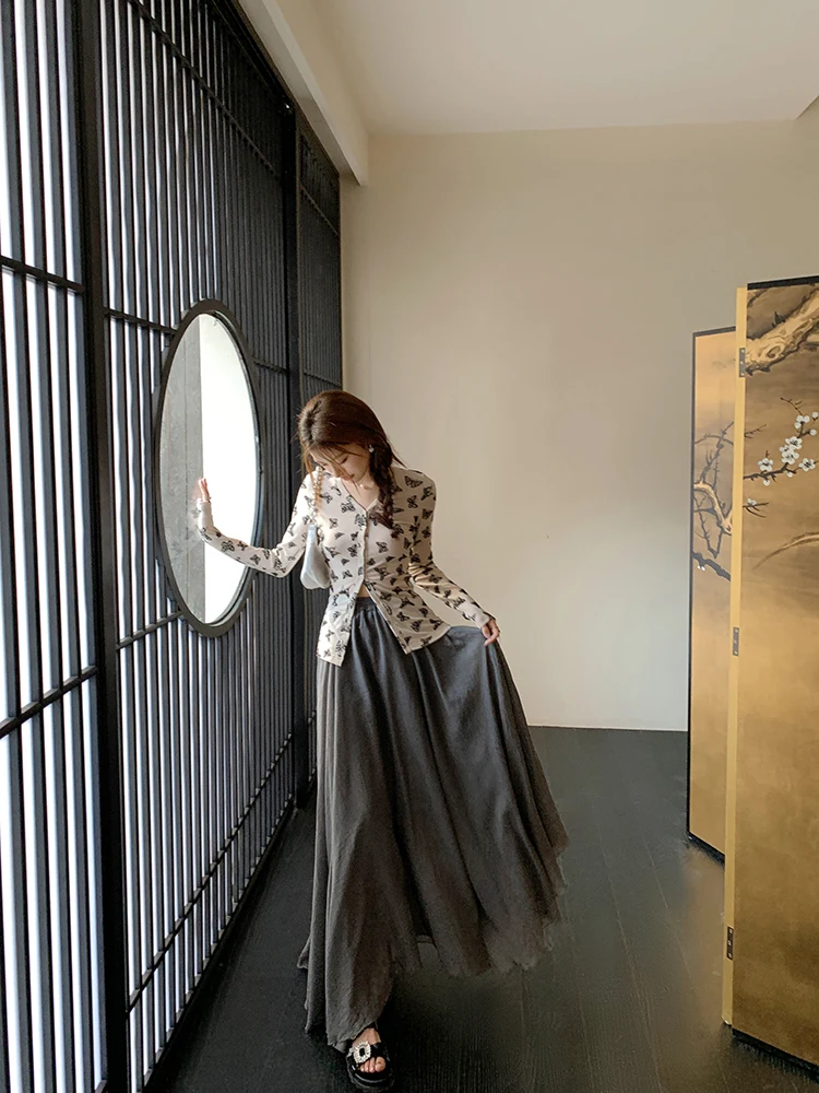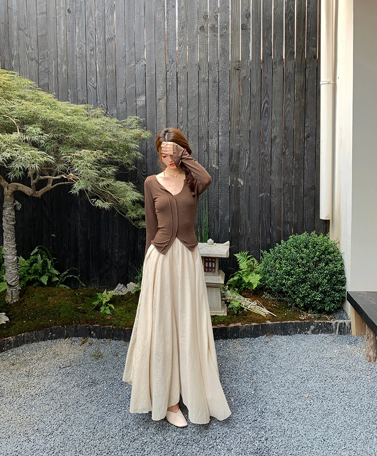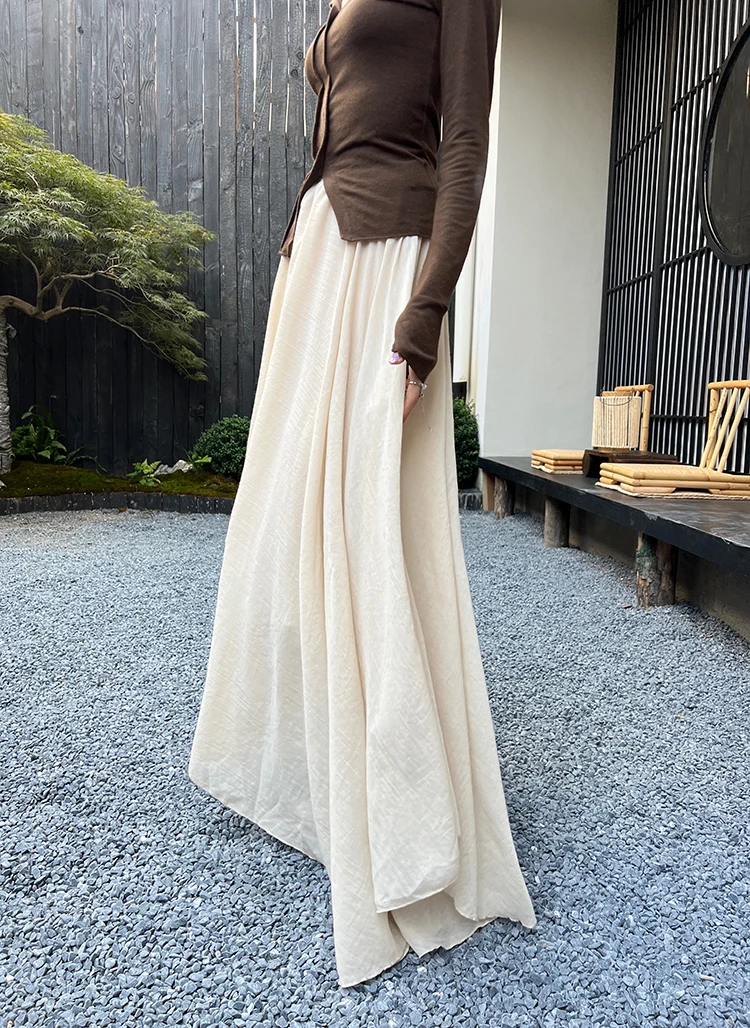 MQTIME - Vintage Cotton Linen Skirt Women Irregular High Waisted Maxi Skirts Elegant Ladies Casual Loose Summer A-line Long Skirt