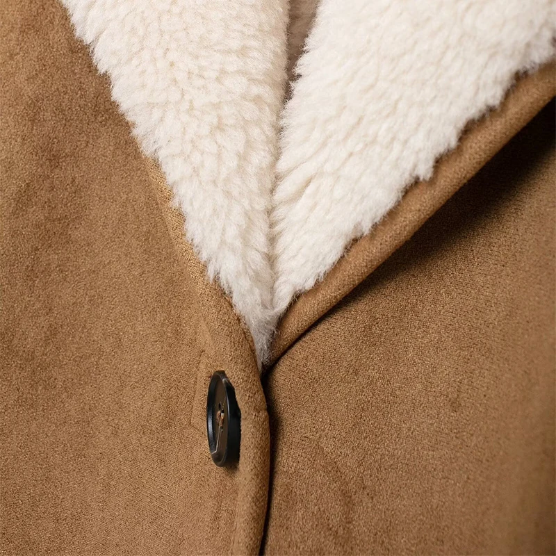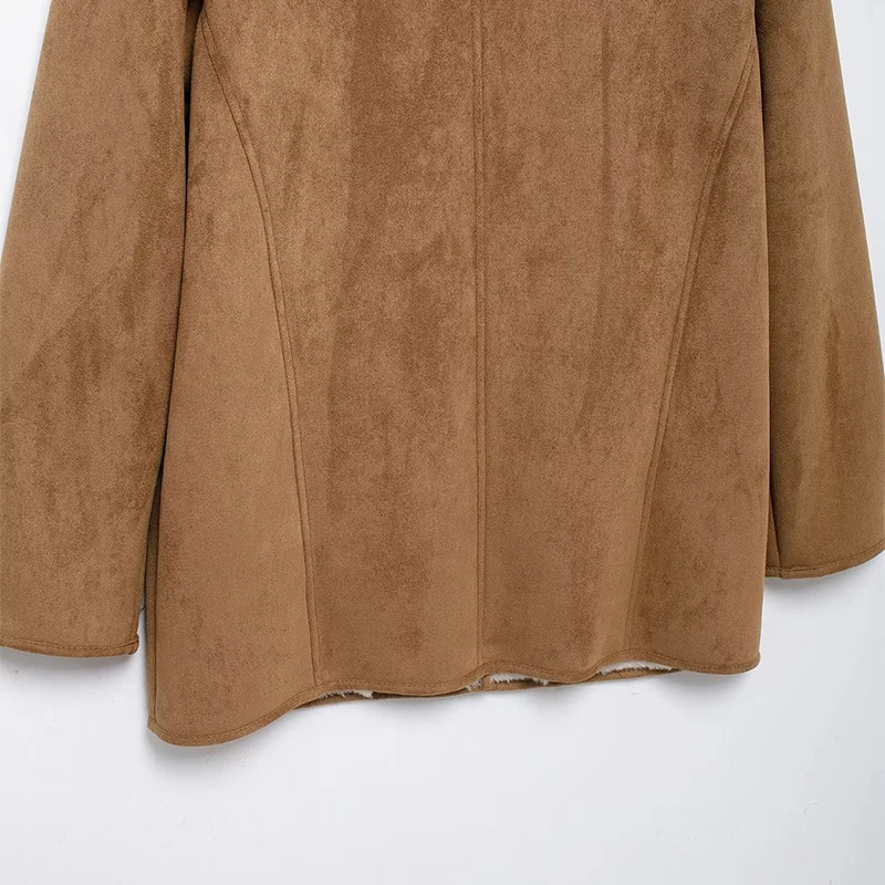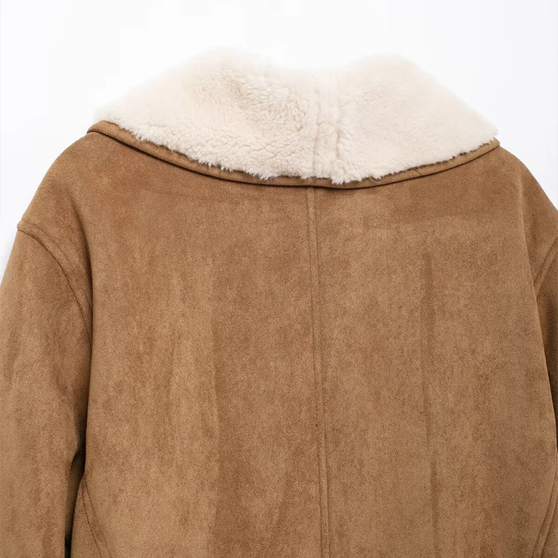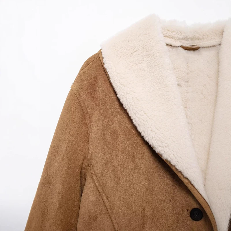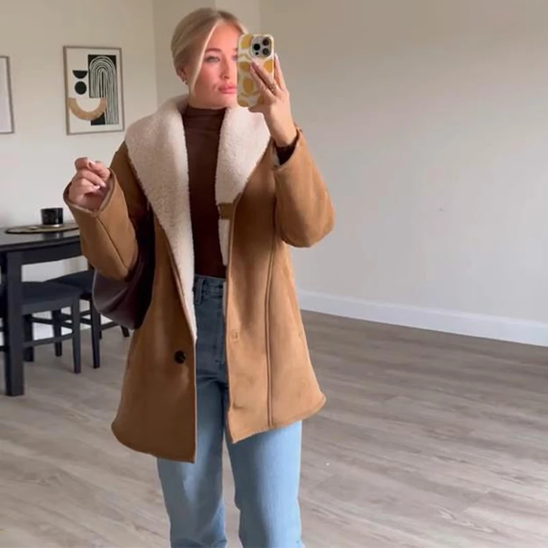 MQTIME - Vintage Lamb Wool Solid Women Outwear Lapel Full Sleeve Loose Female Jacket 2024 Casual Autumn Warm Single Breasted Lady Coat