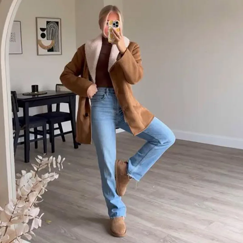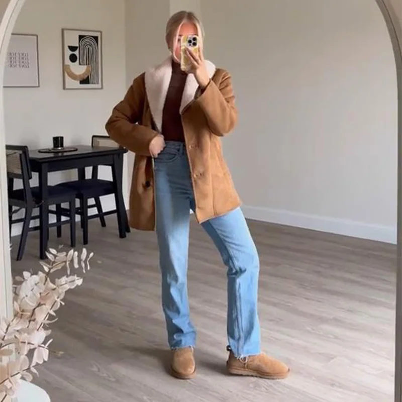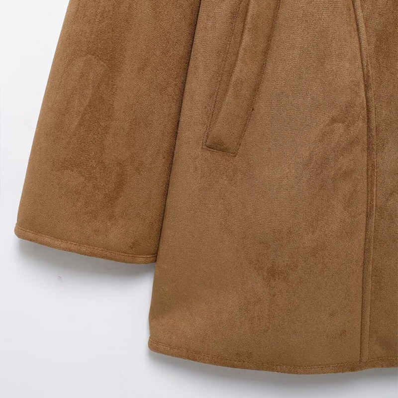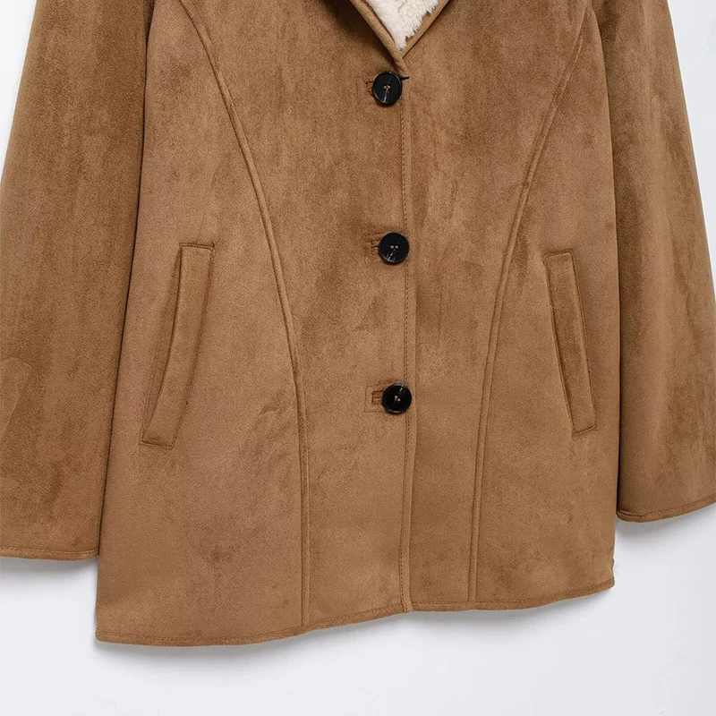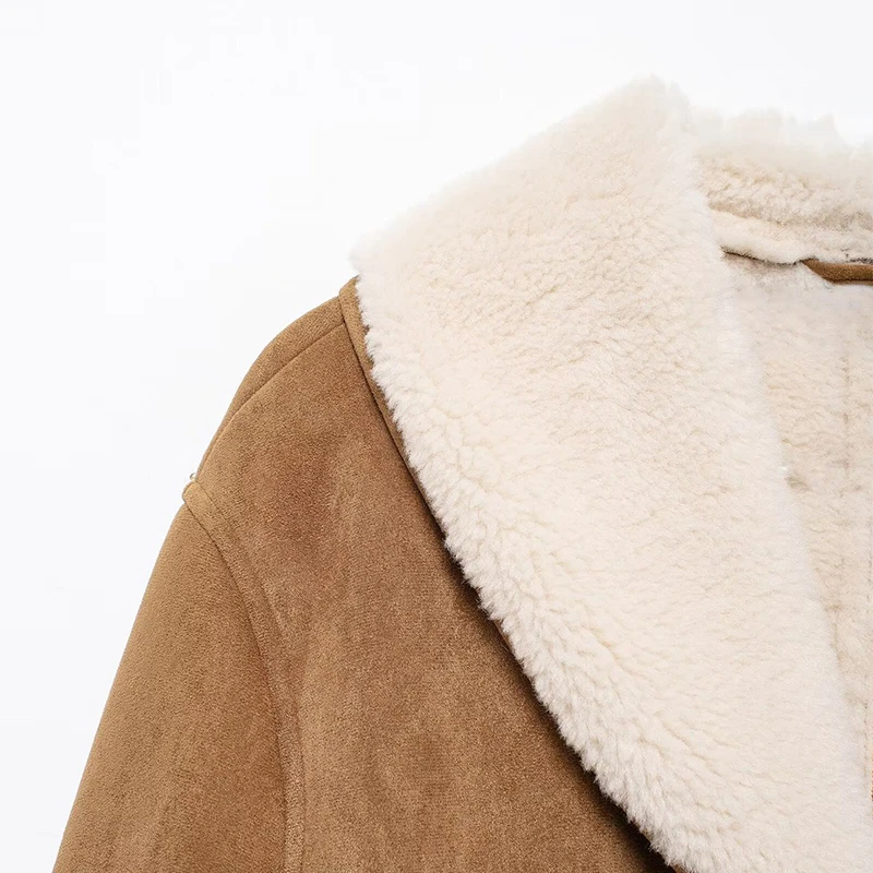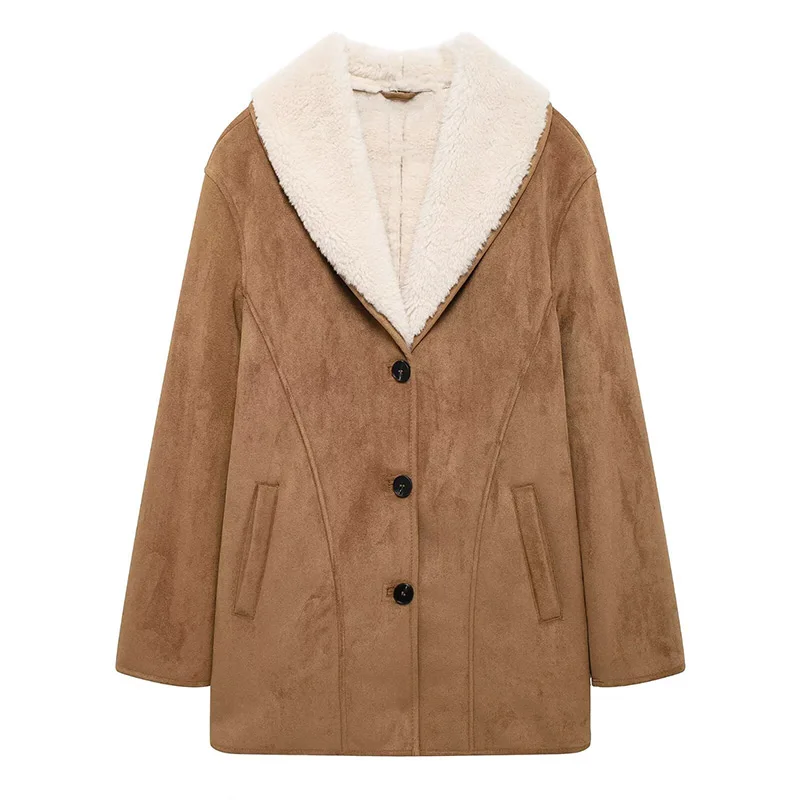 MQTIME - Vintage Lamb Wool Solid Women Outwear Lapel Full Sleeve Loose Female Jacket 2024 Casual Autumn Warm Single Breasted Lady Coat