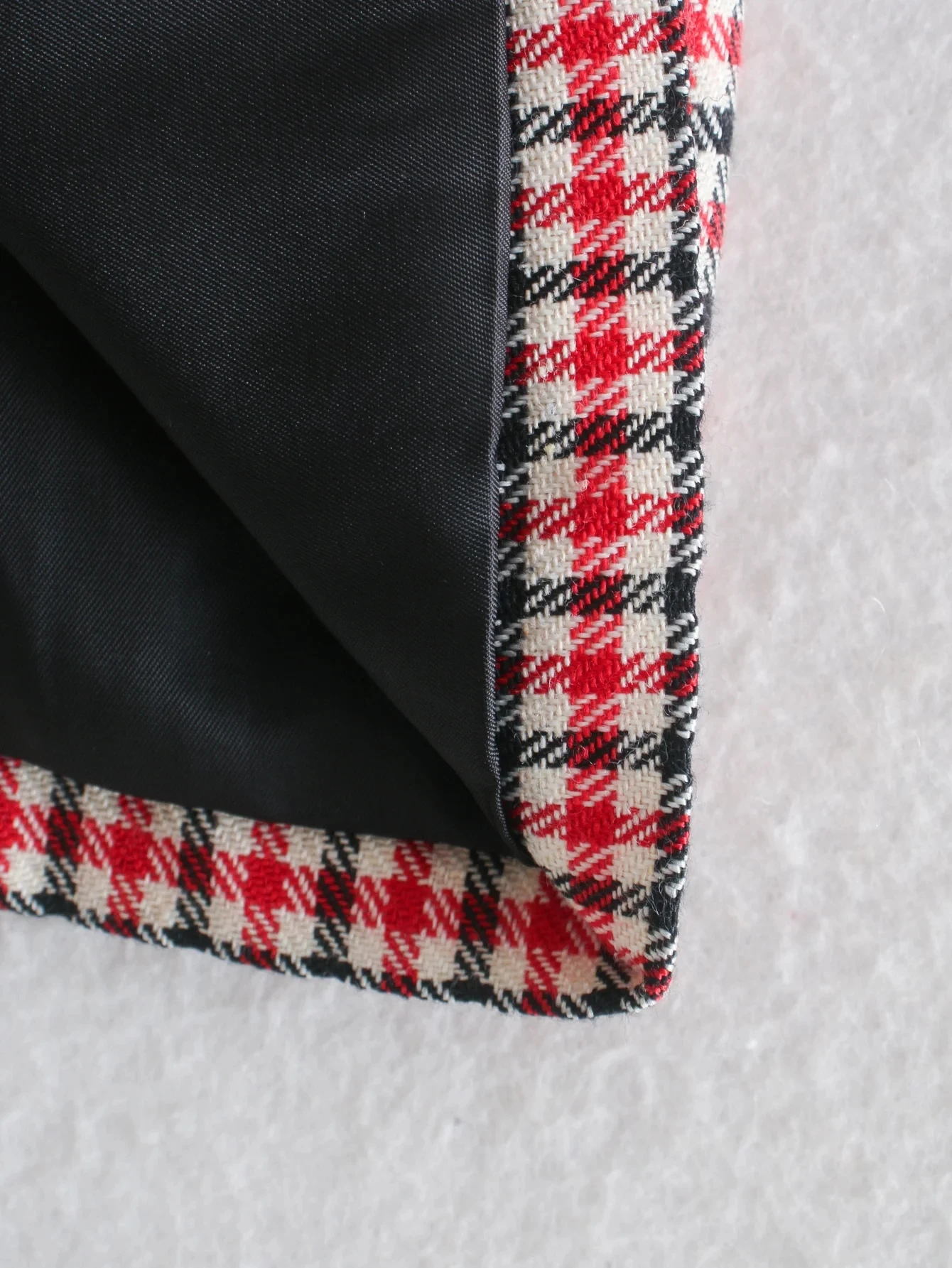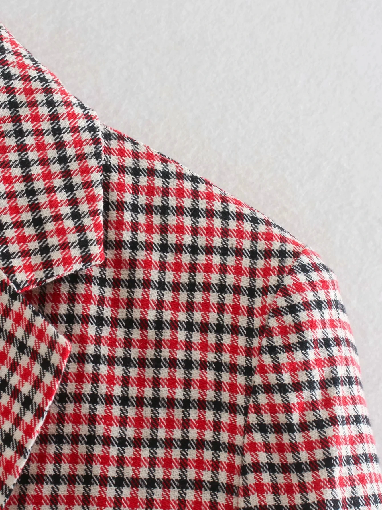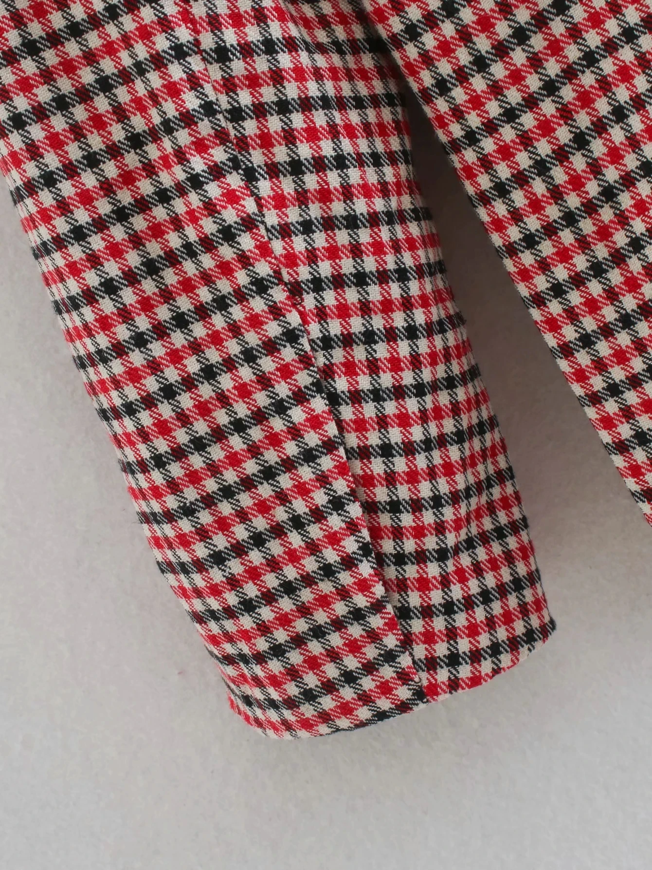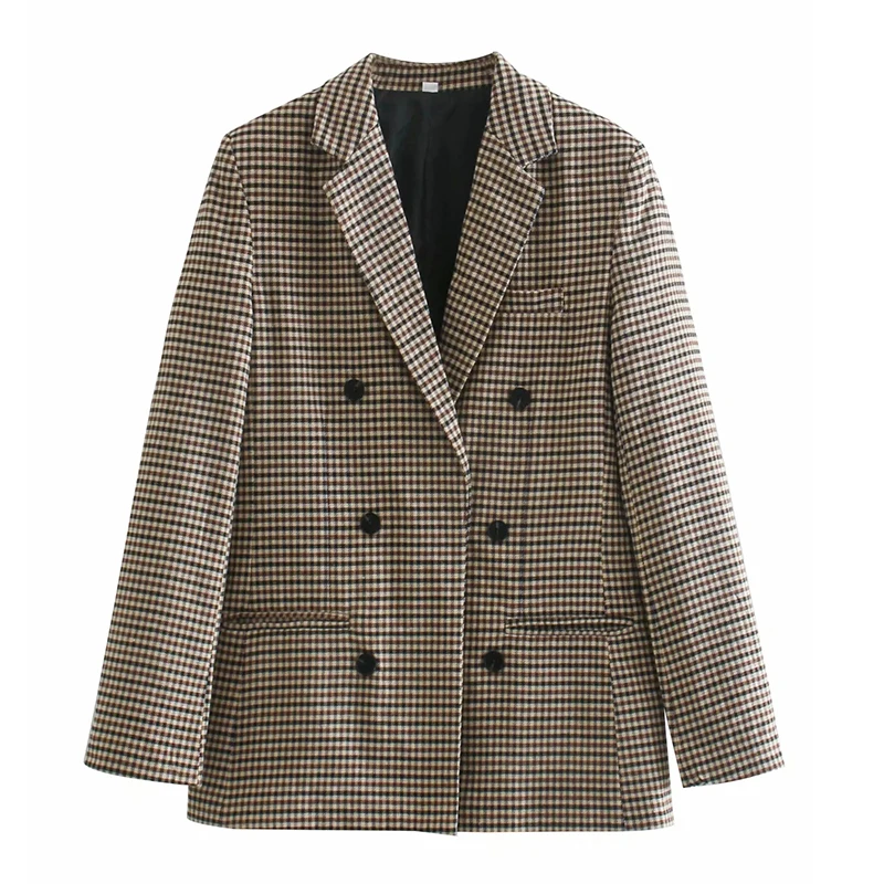 Mqtime vintage plaid double breasted blazer jacket women khaki ladies business elegant blazer coat women autumn winter jacket