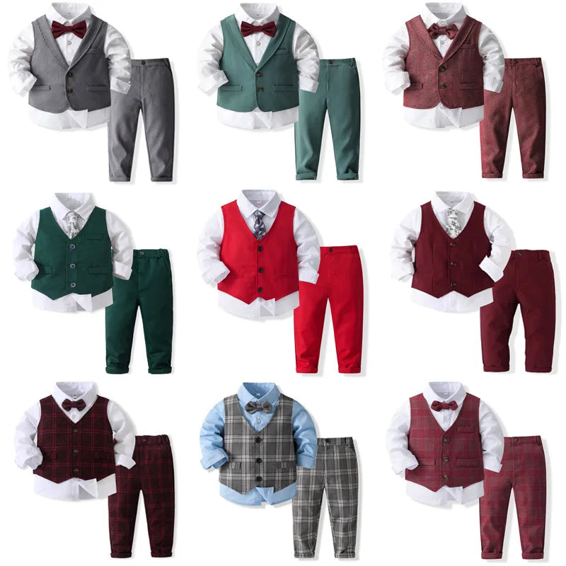 MQTIME - Wedding Attire Outfit Clothes Suit for Boy Ring Bearer Boy Outfits Boy's Gentleman Tuxedo Vest Bowtie Shirt Pants Kid Costume